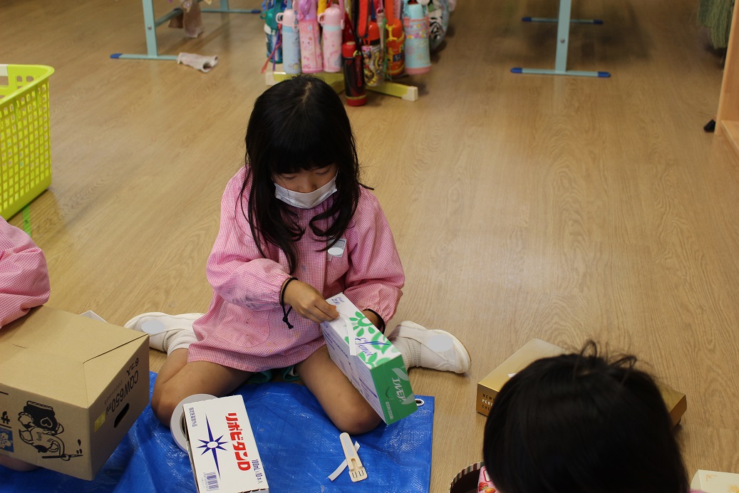 最後はみんなで遊びの続きでお片付け。