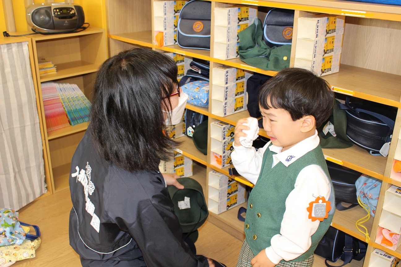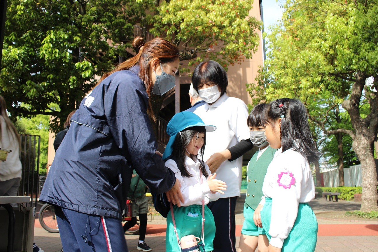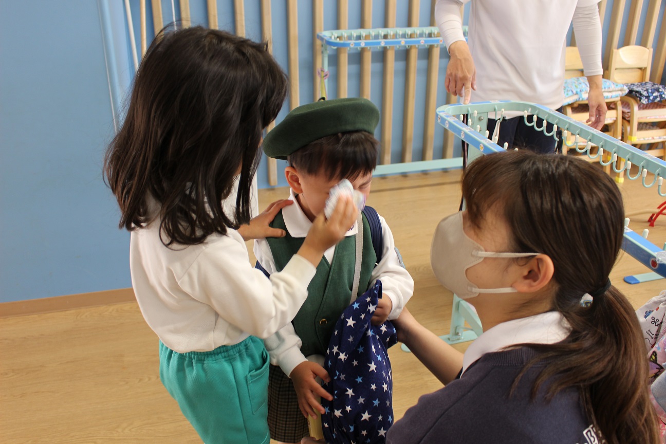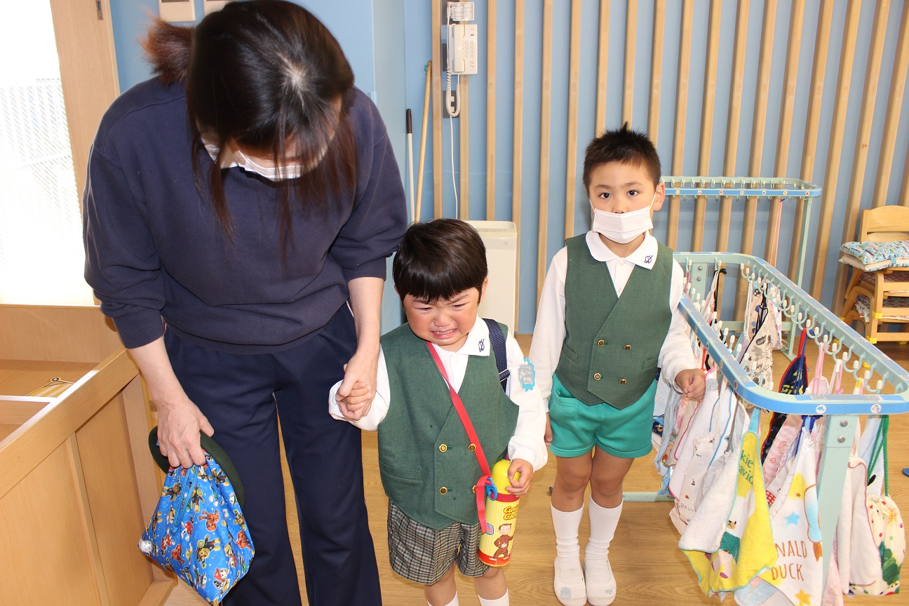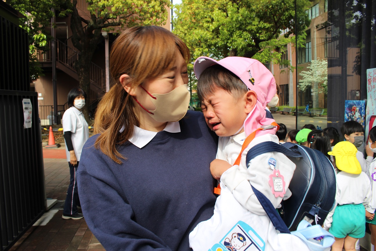 泣いてしまう子どももいますが、幼稚園の先生たちはいつも笑顔で子どもたちを迎えます!