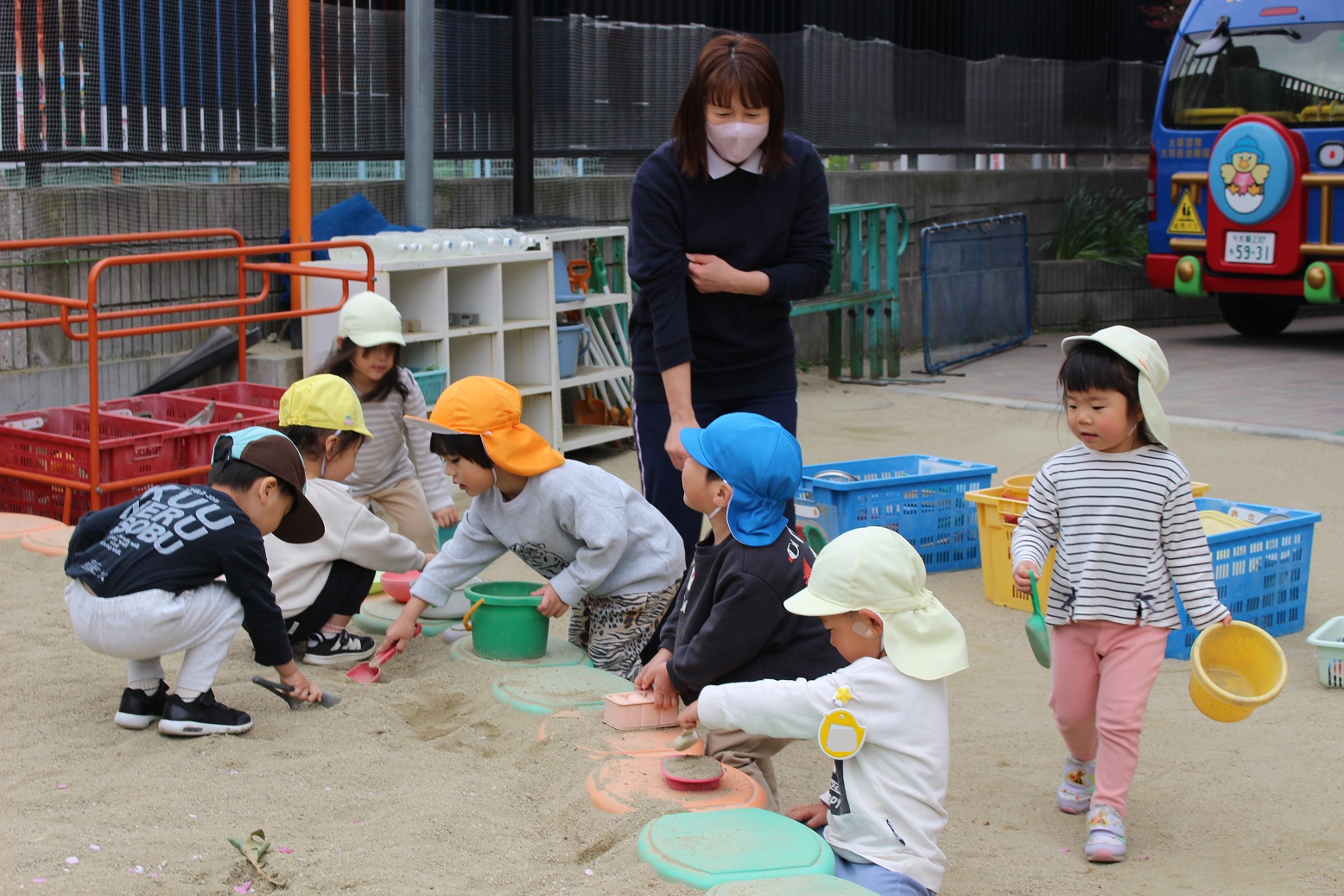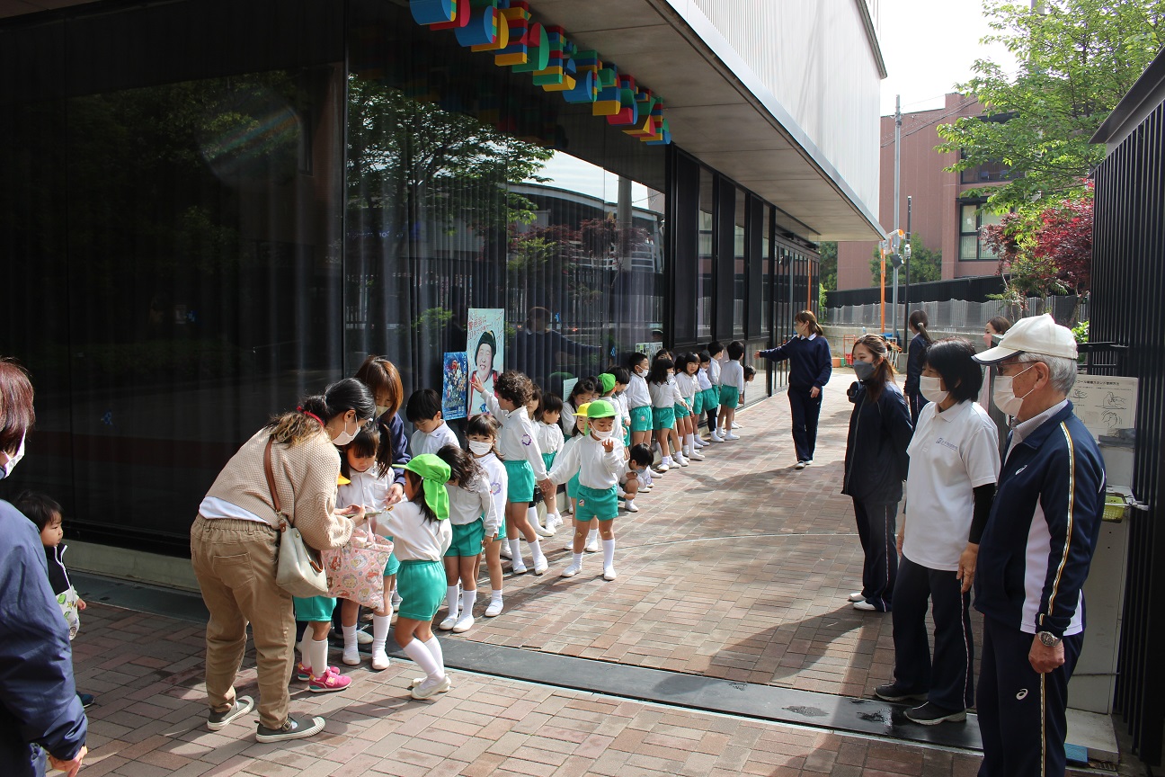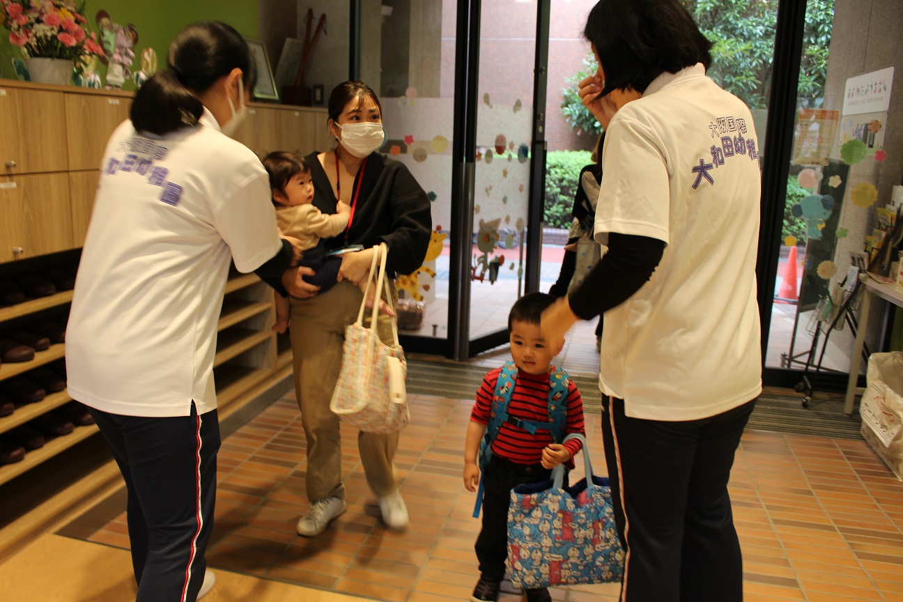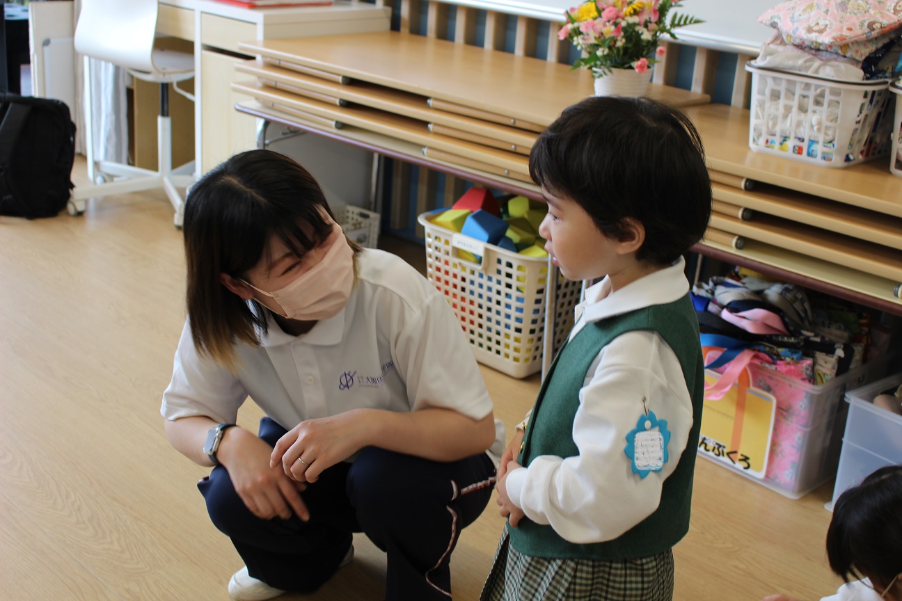 泣いてしまう子どももいますが、幼稚園の先生たちはいつも笑顔で子どもたちを迎えます!