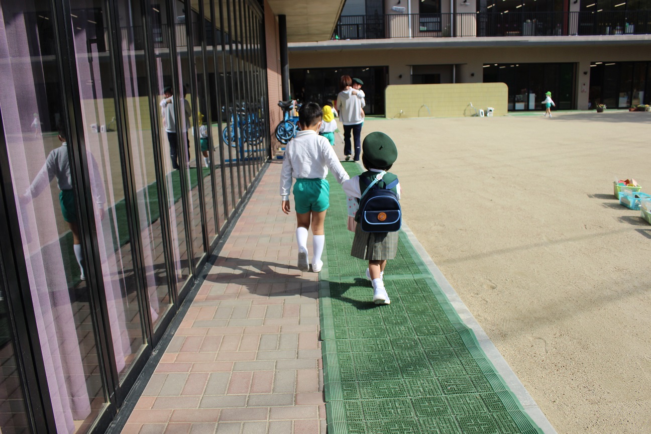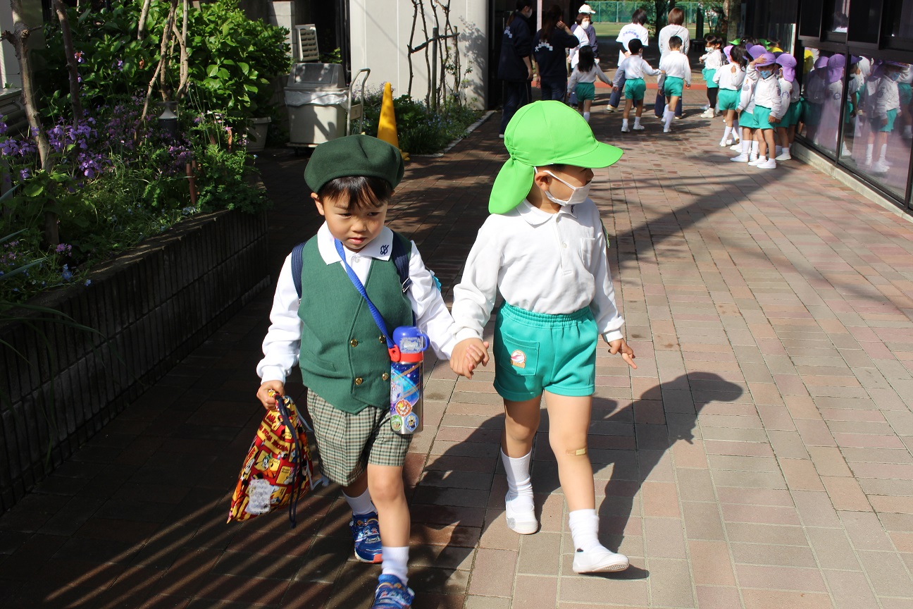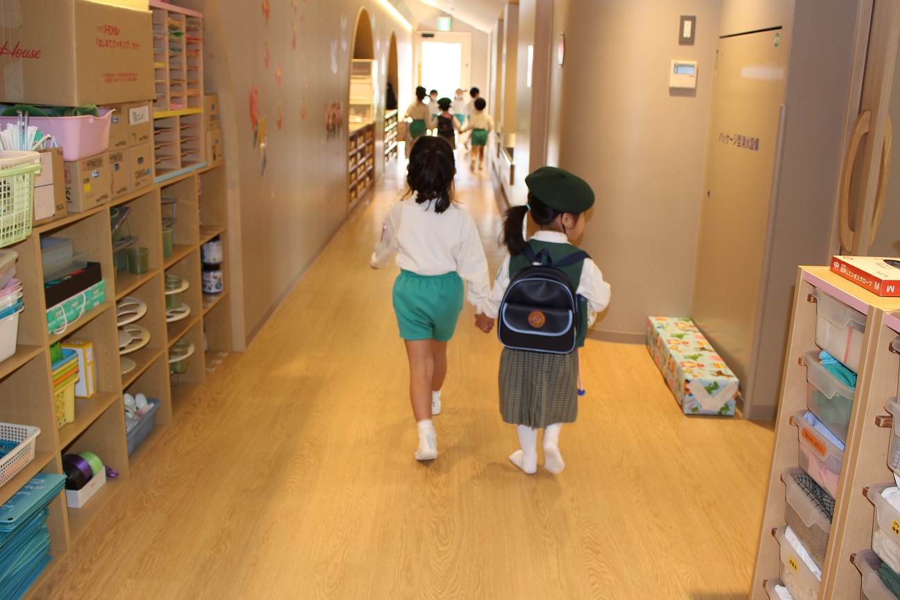 「もうすぐ年少組さんが来ます。年中・年長組さんよろしくね!」と、放送すると・・・