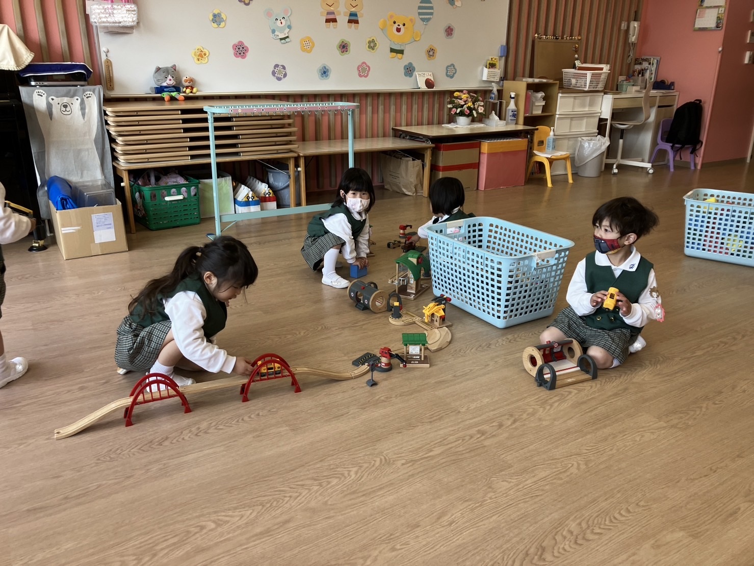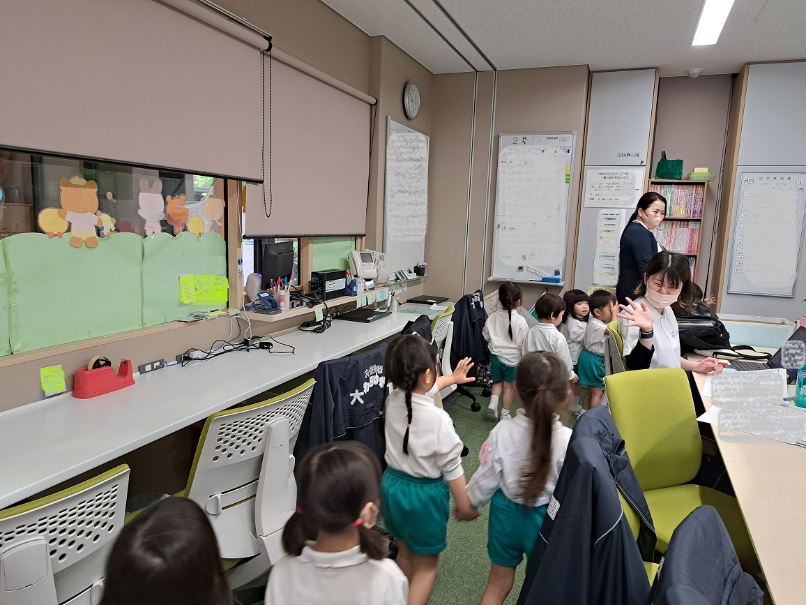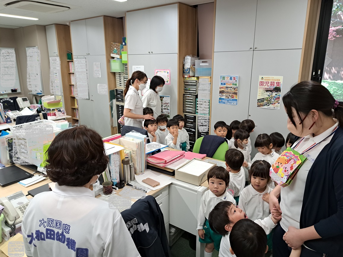 職員室にはいると、預かり保育の先生や、副園長先生・園長先生もいたので、