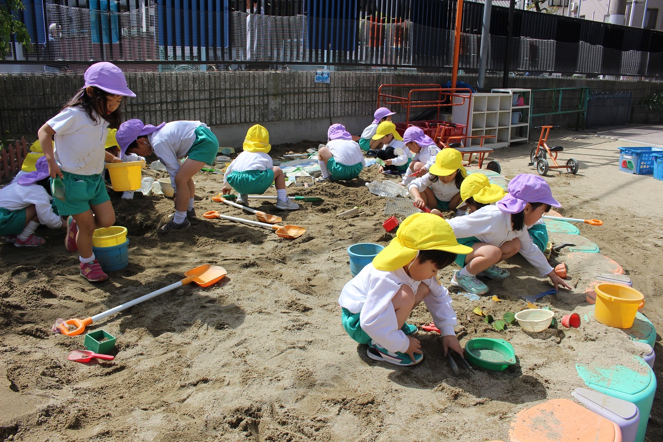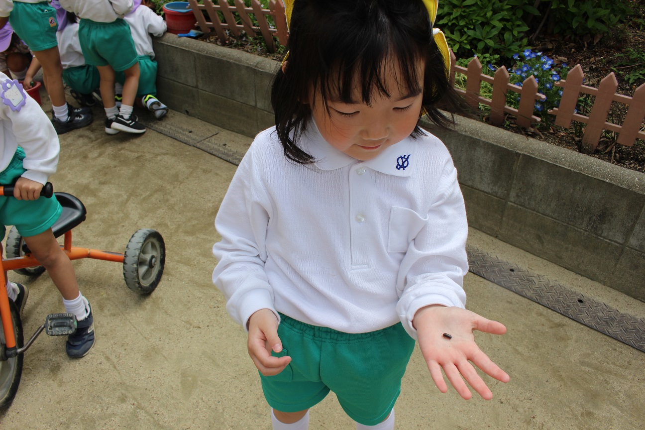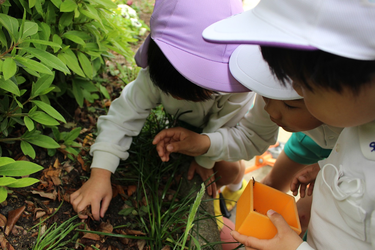 子どもたちは一生懸命ダンゴムシやミミズを探しています。