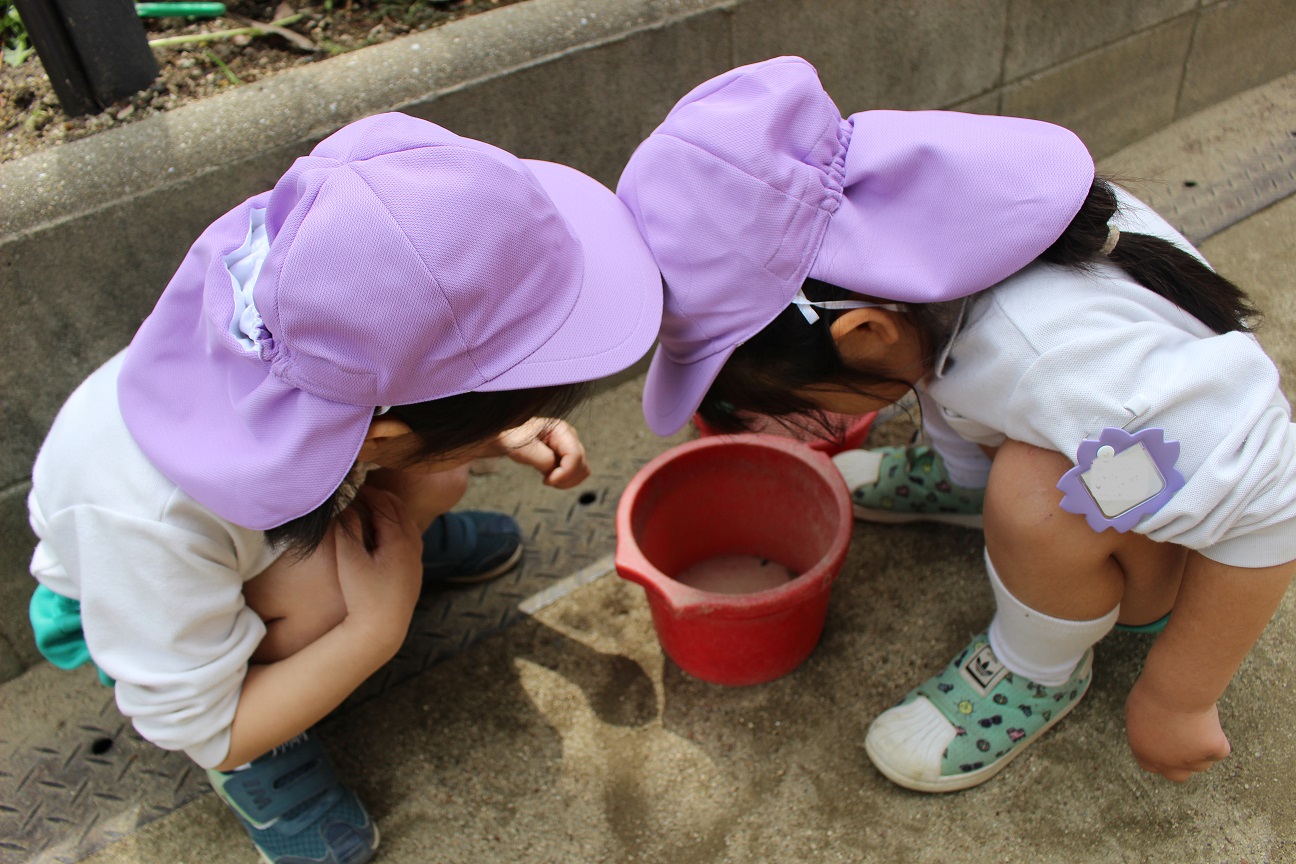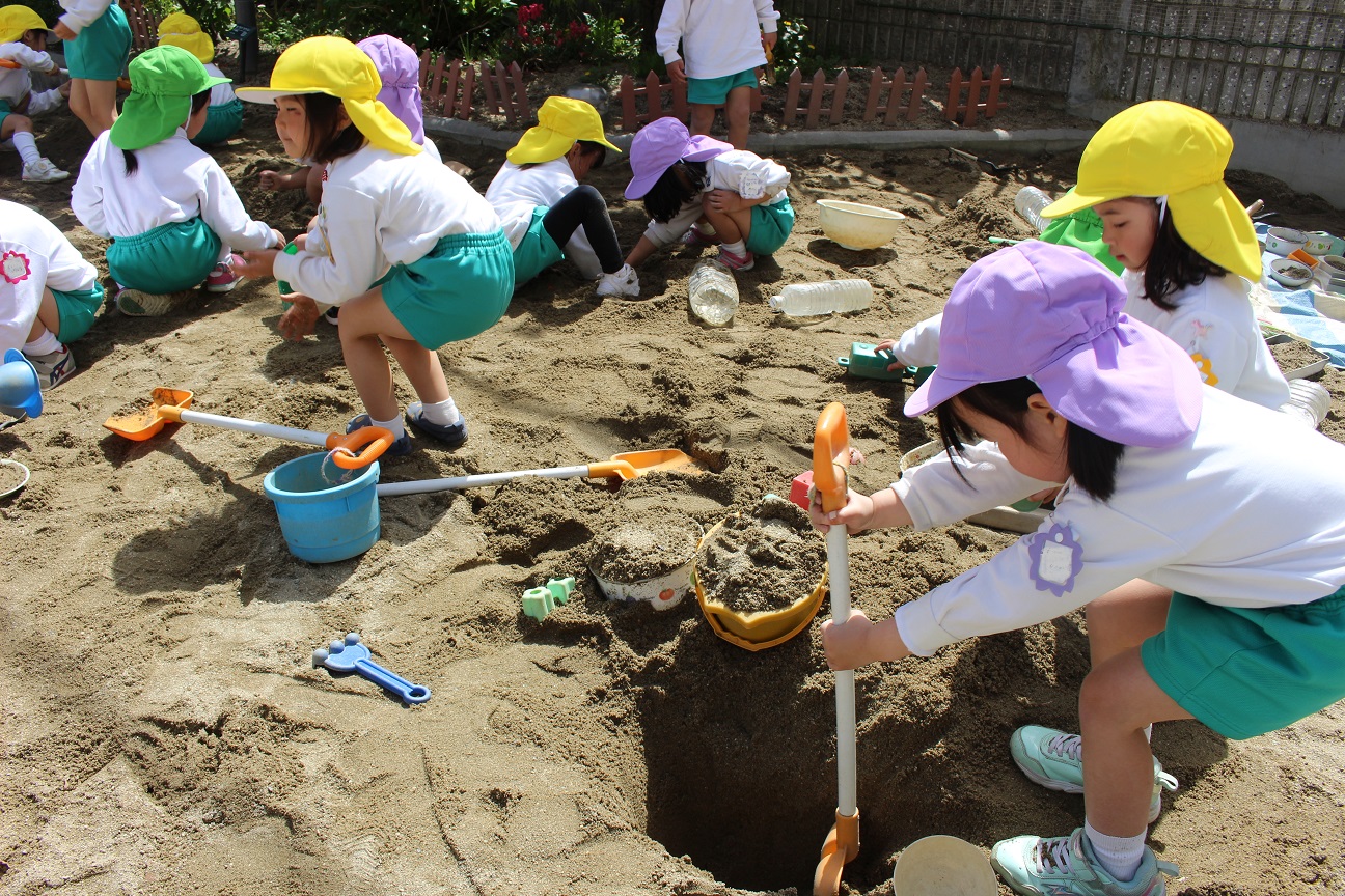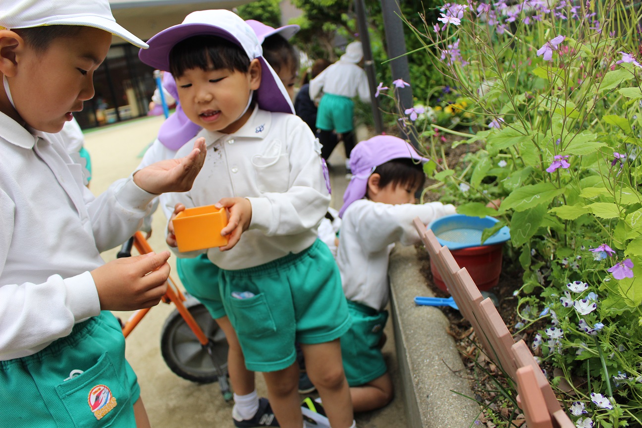 子どもたちは一生懸命ダンゴムシやミミズを探しています。