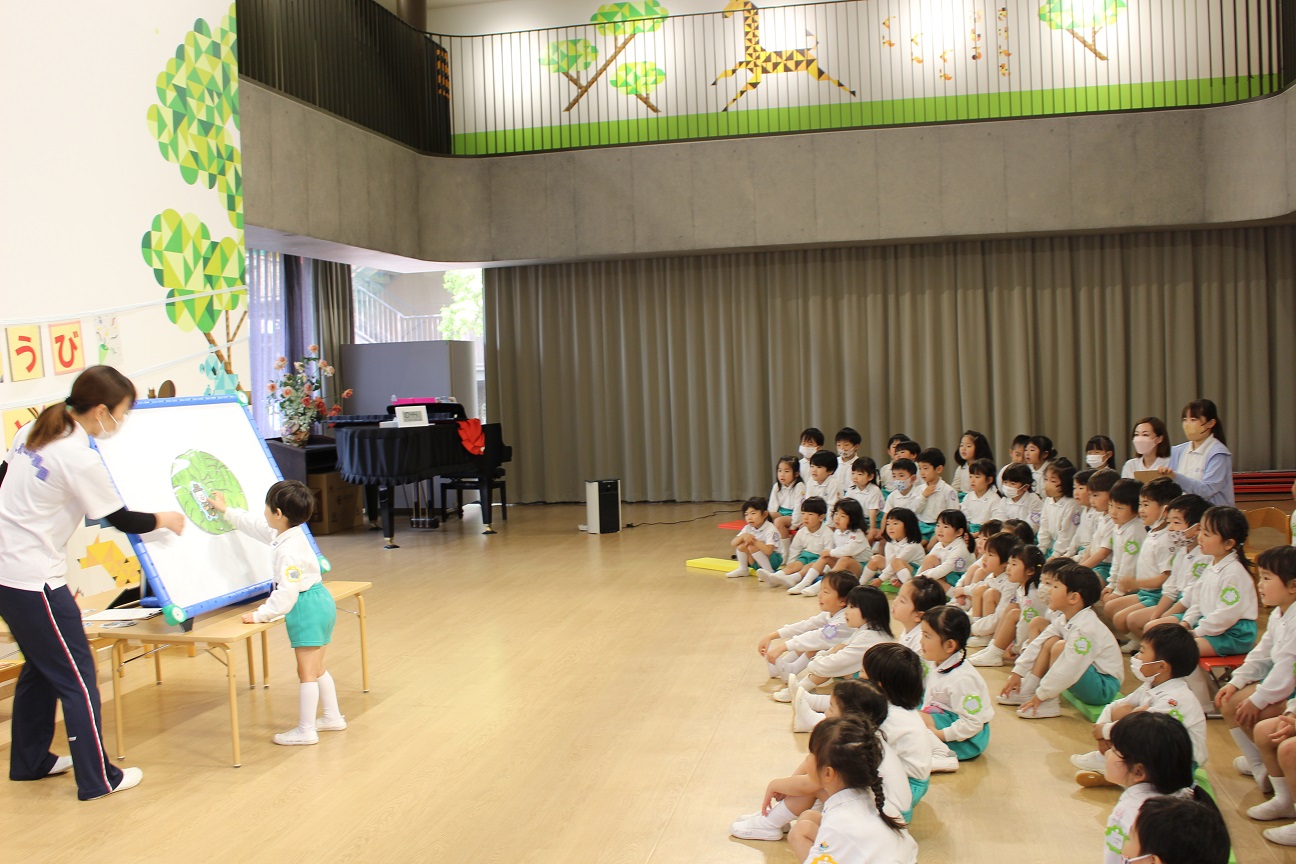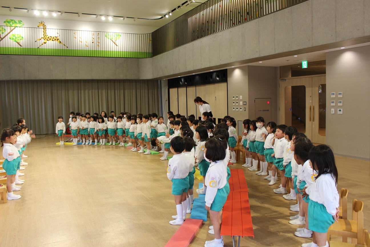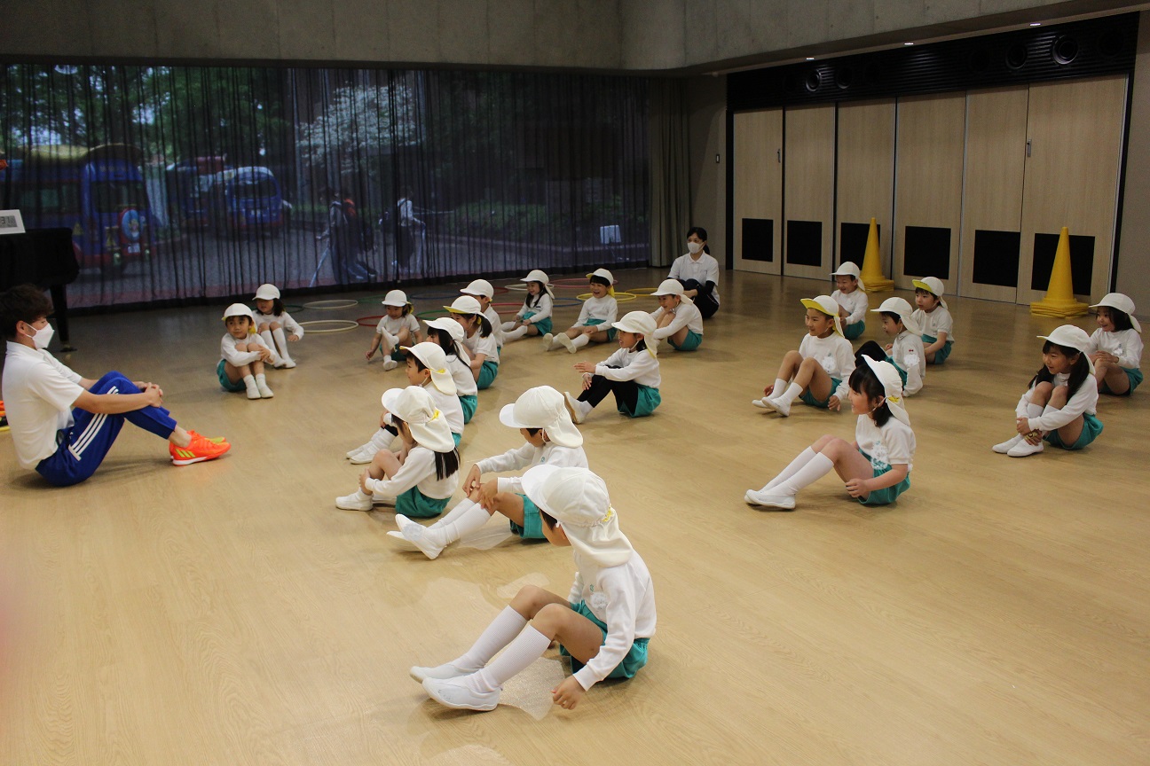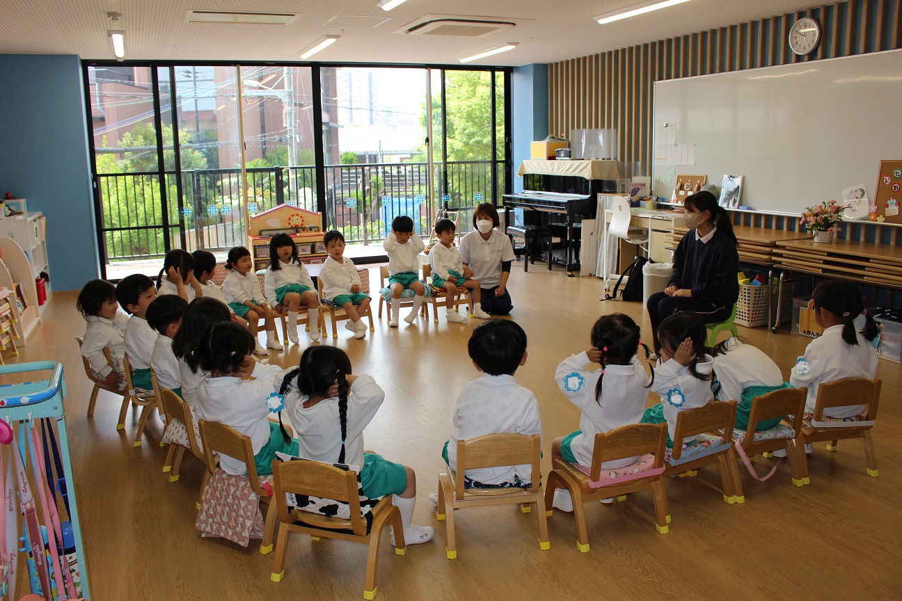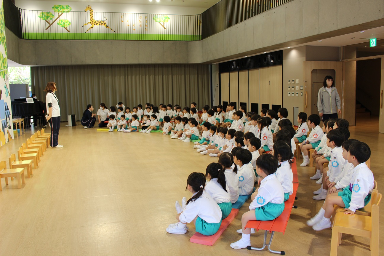 今日は年長組です!昨年度と同じ横山先生と網野先生なので、子どもたちから親しみのある先生です!