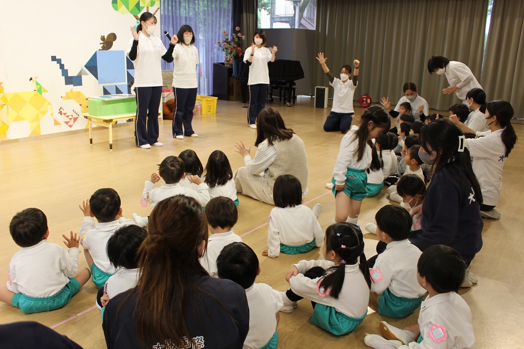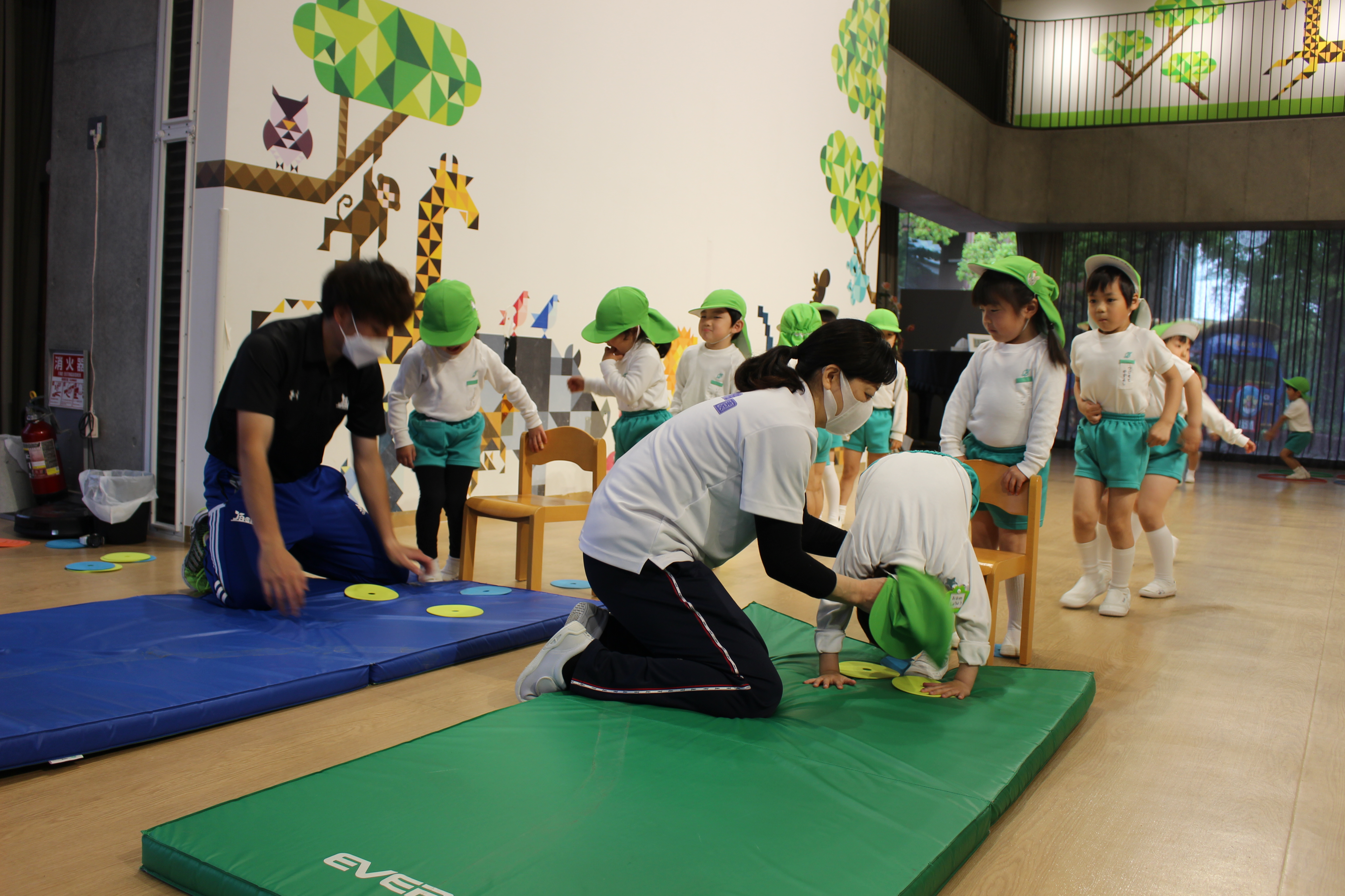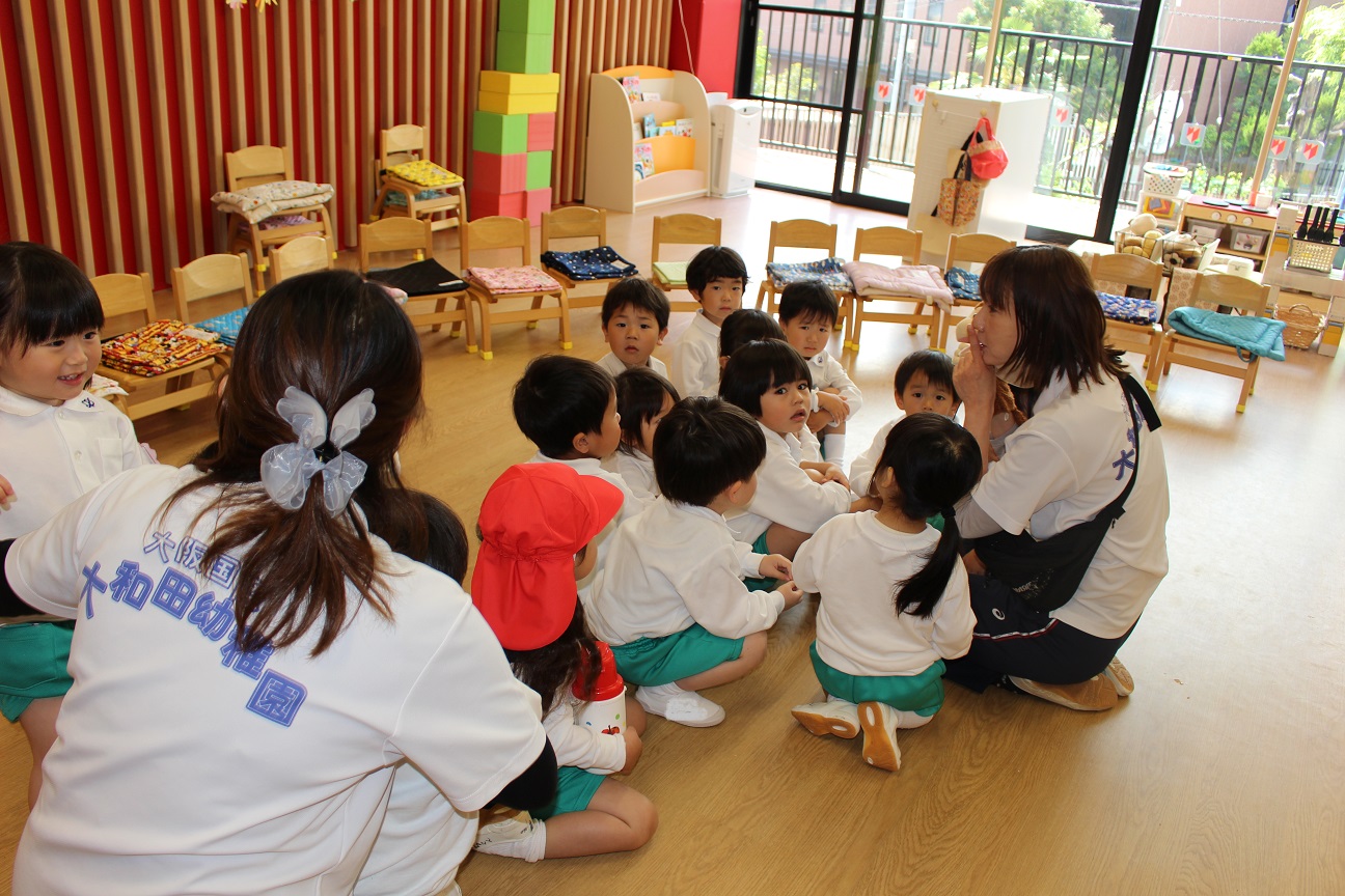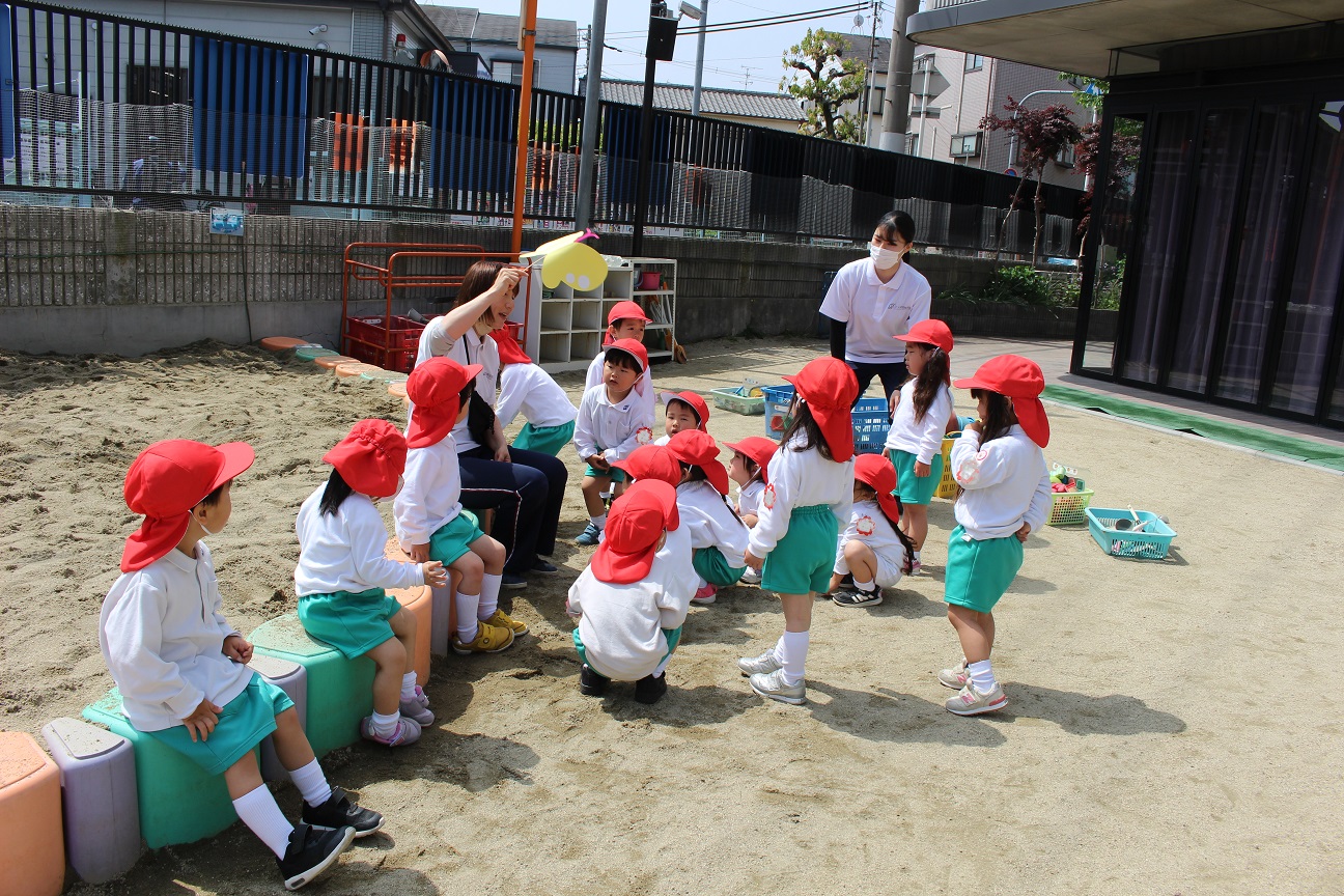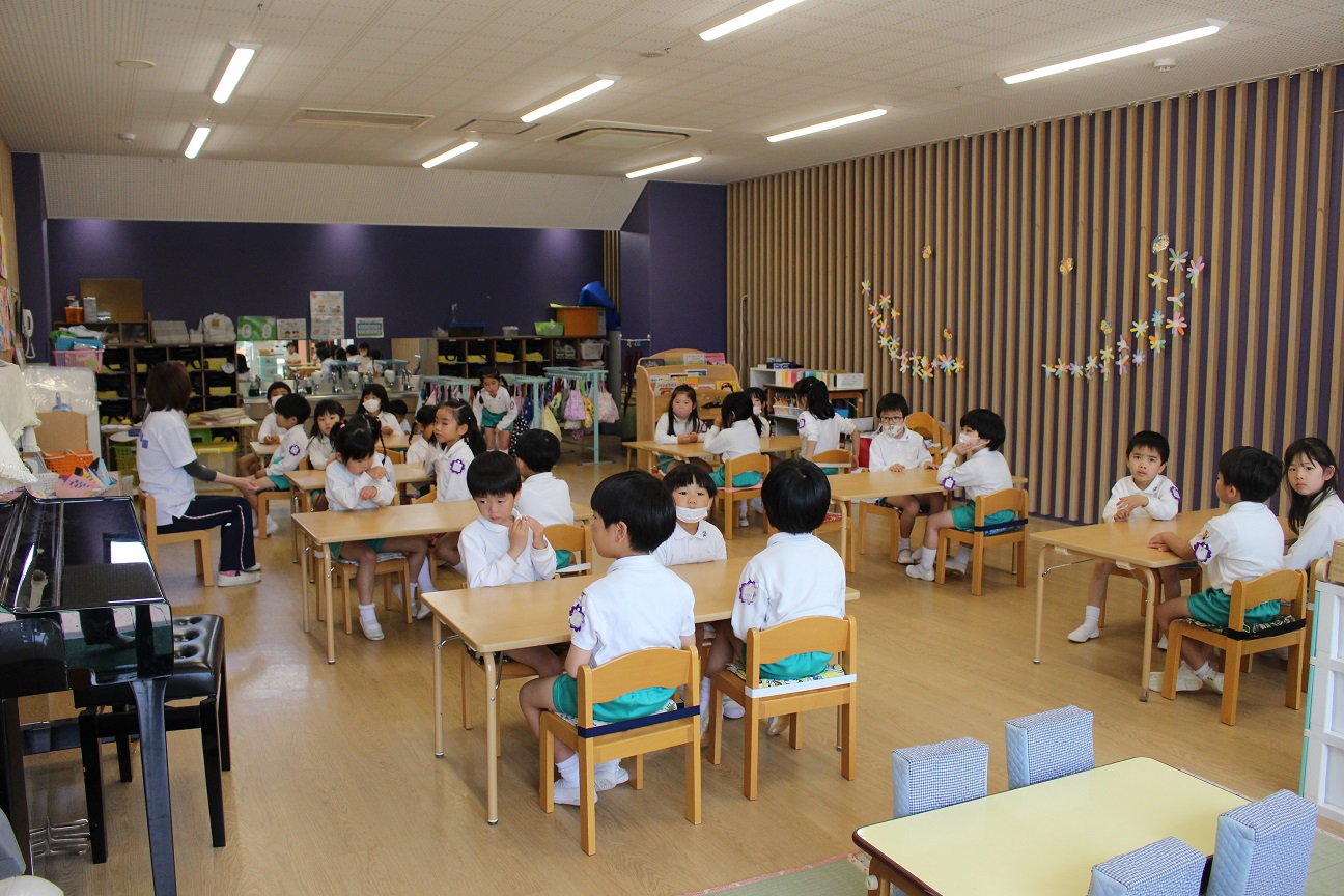 今日は年長組です!昨年度と同じ横山先生と網野先生なので、子どもたちから親しみのある先生です!
