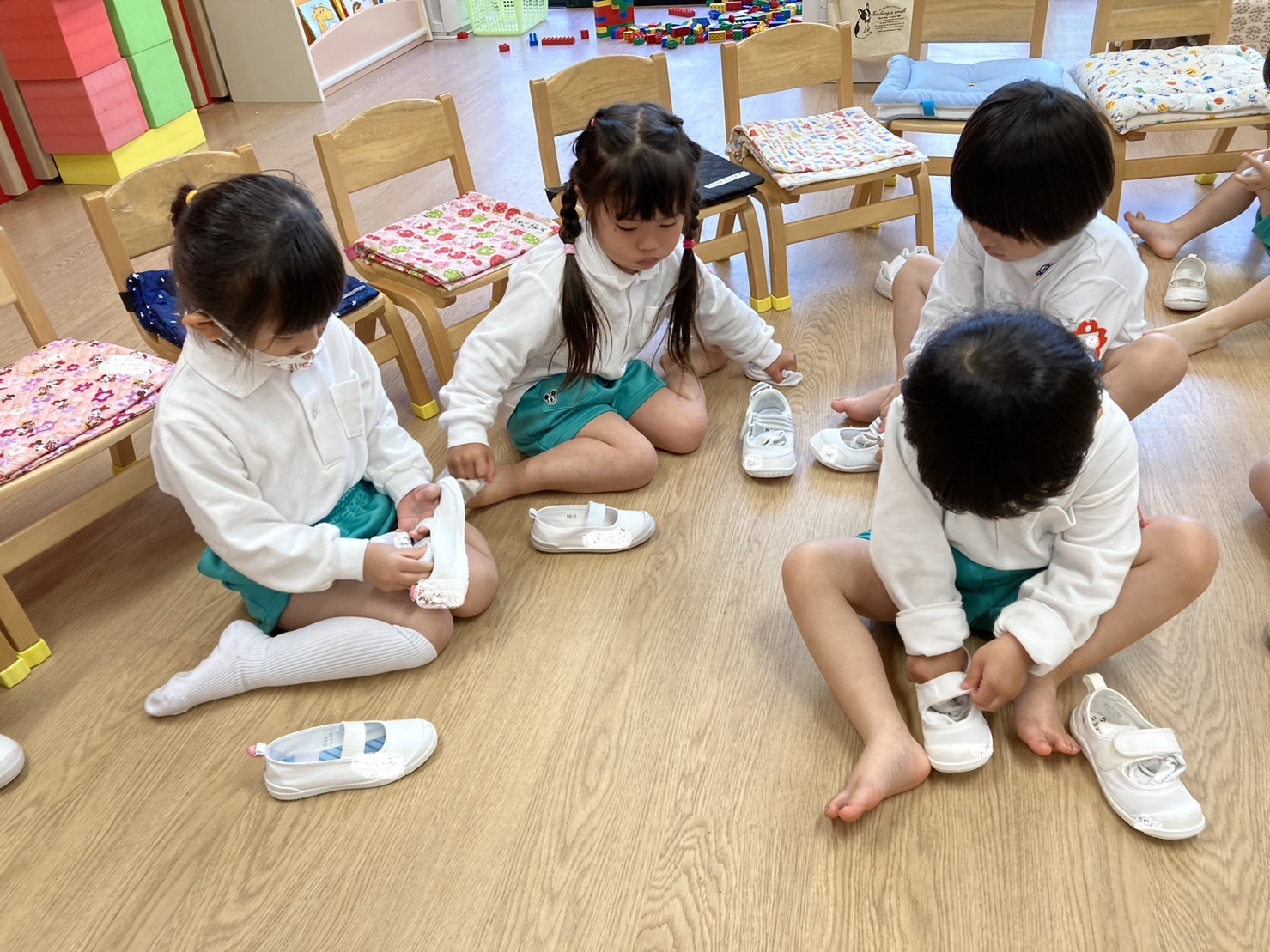 靴下がなくならないように、脱いだあとは上靴の中に入れておきます!