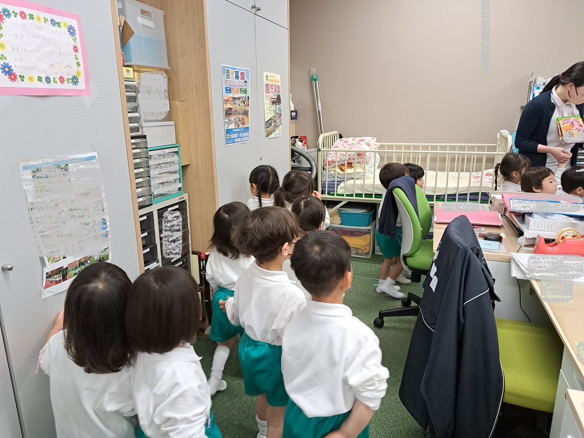 今日はたんぽぽ組の子どもたちが、幼稚園探検をしていました。