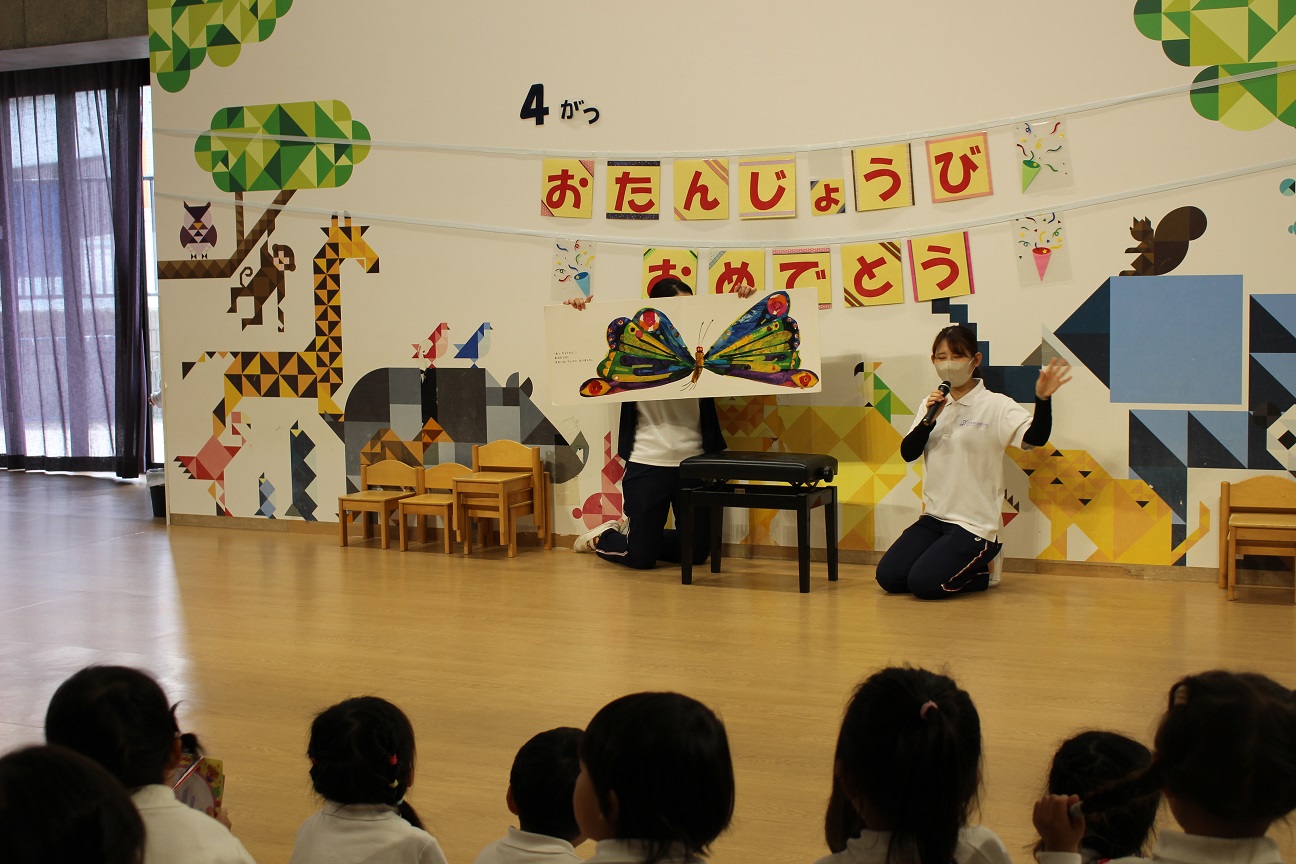 "はらぺこあおむし"の大型絵本を見たりして楽しみました!!