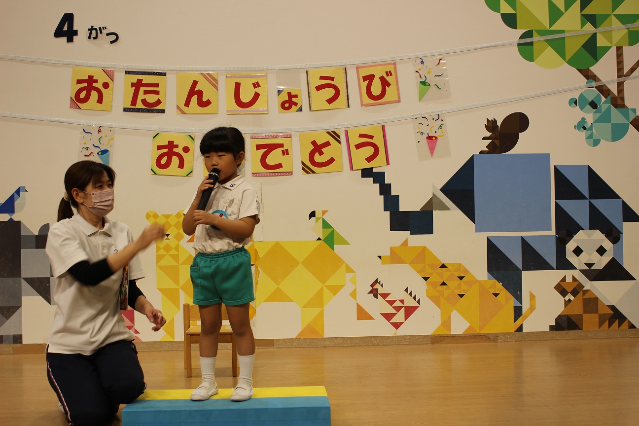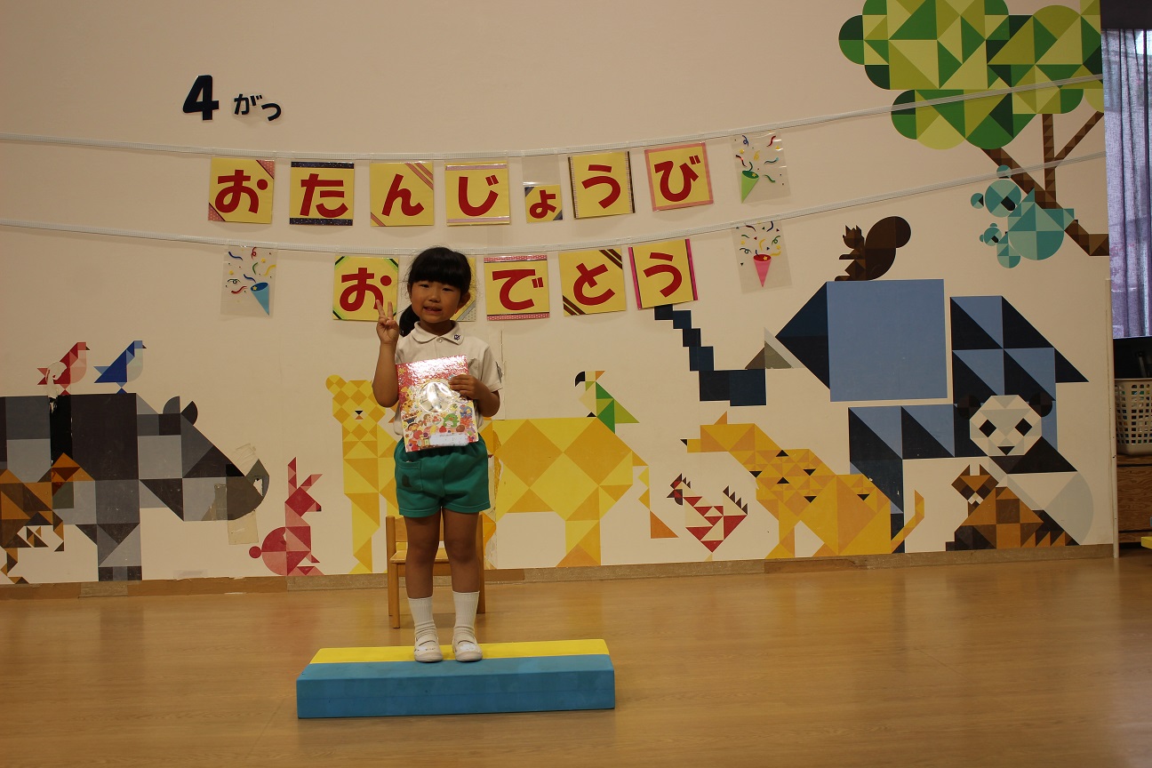 年長組の誕生児は4人いますが、今日3人お休みでしたので、1人のお誕生会です!
