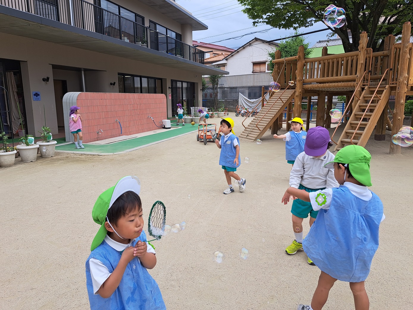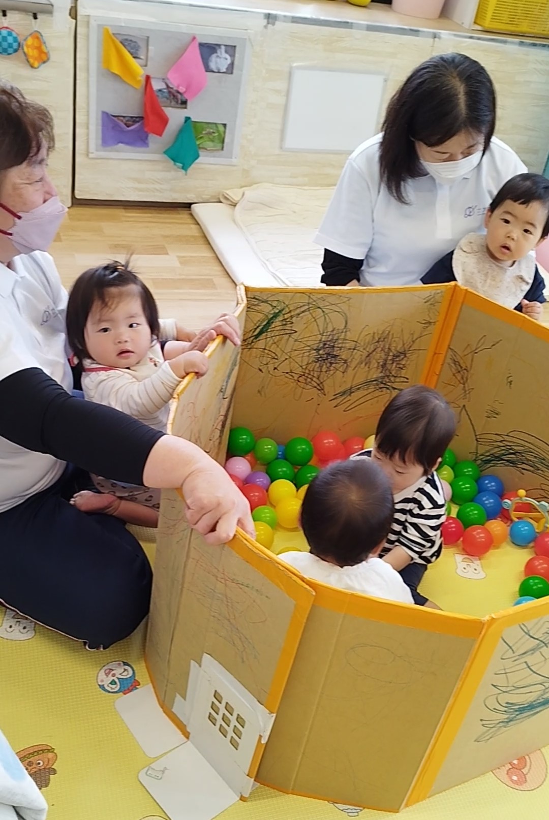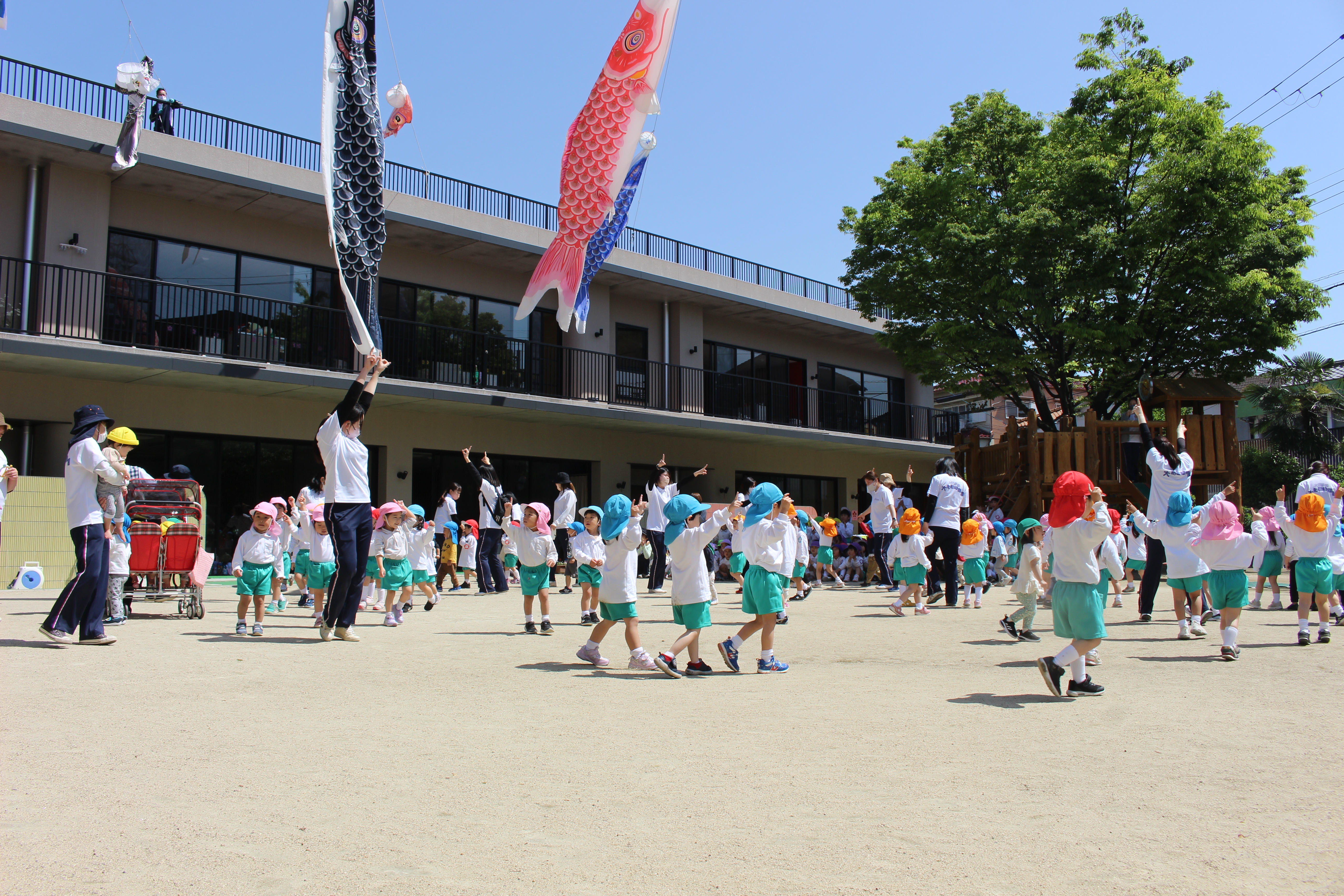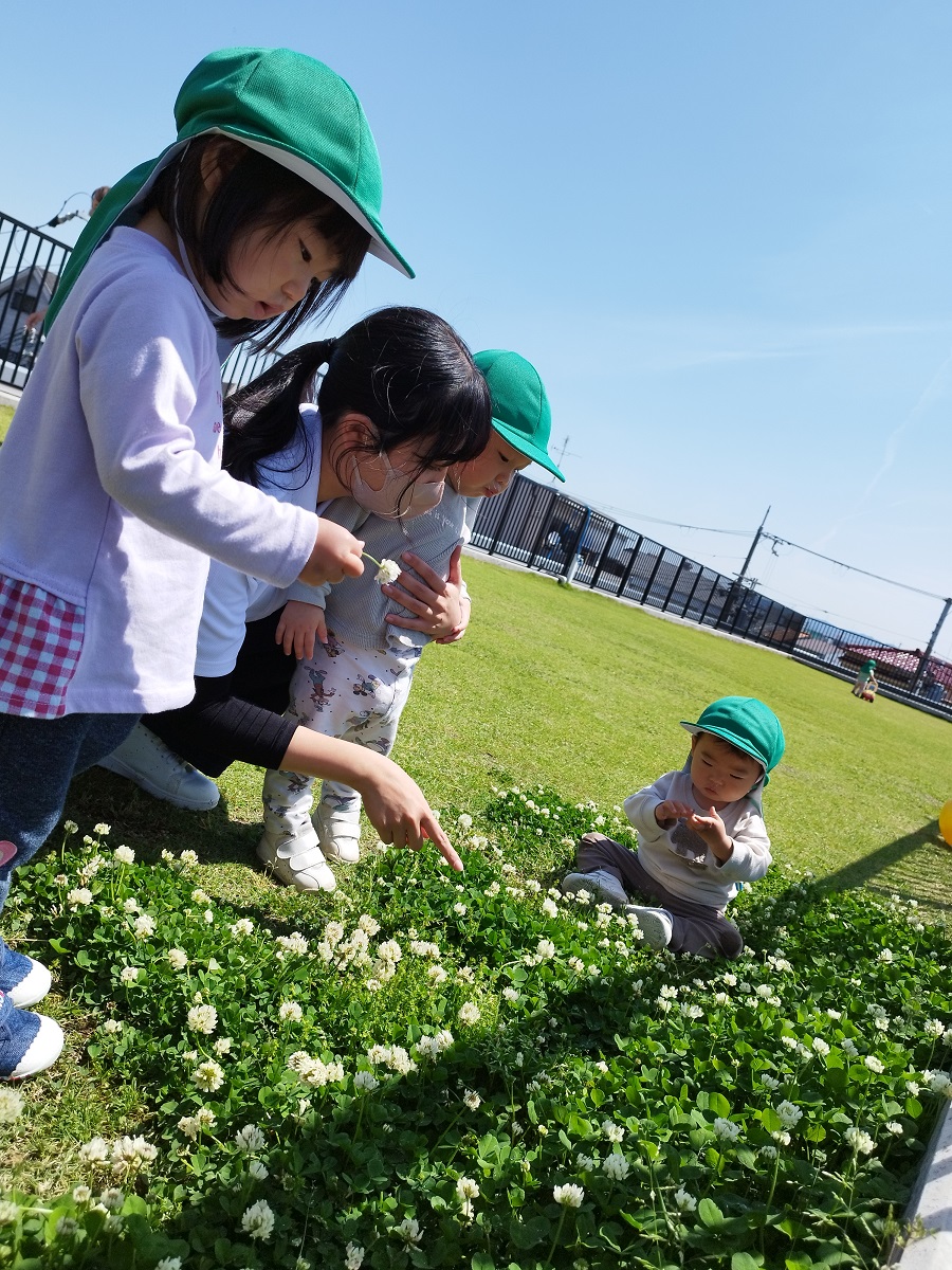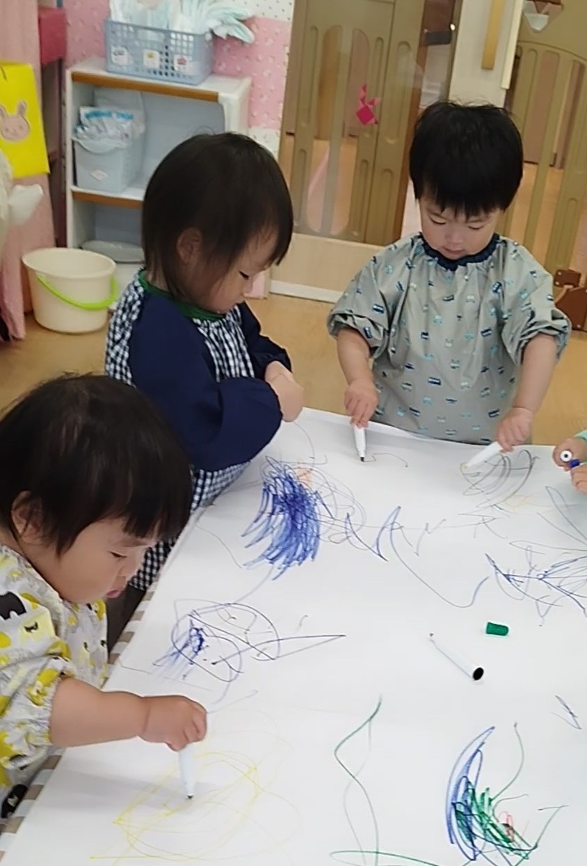 うさぎ組さんは散歩車に乗ったりお友だちと手を繋いだり、ぱんだ組さんは全員手を繋いで