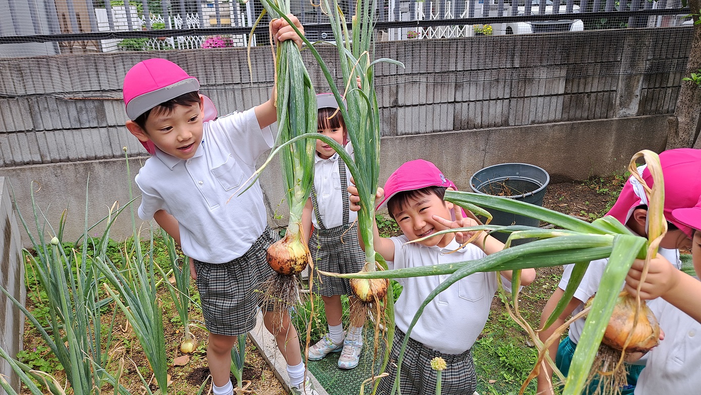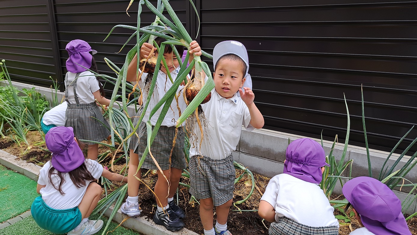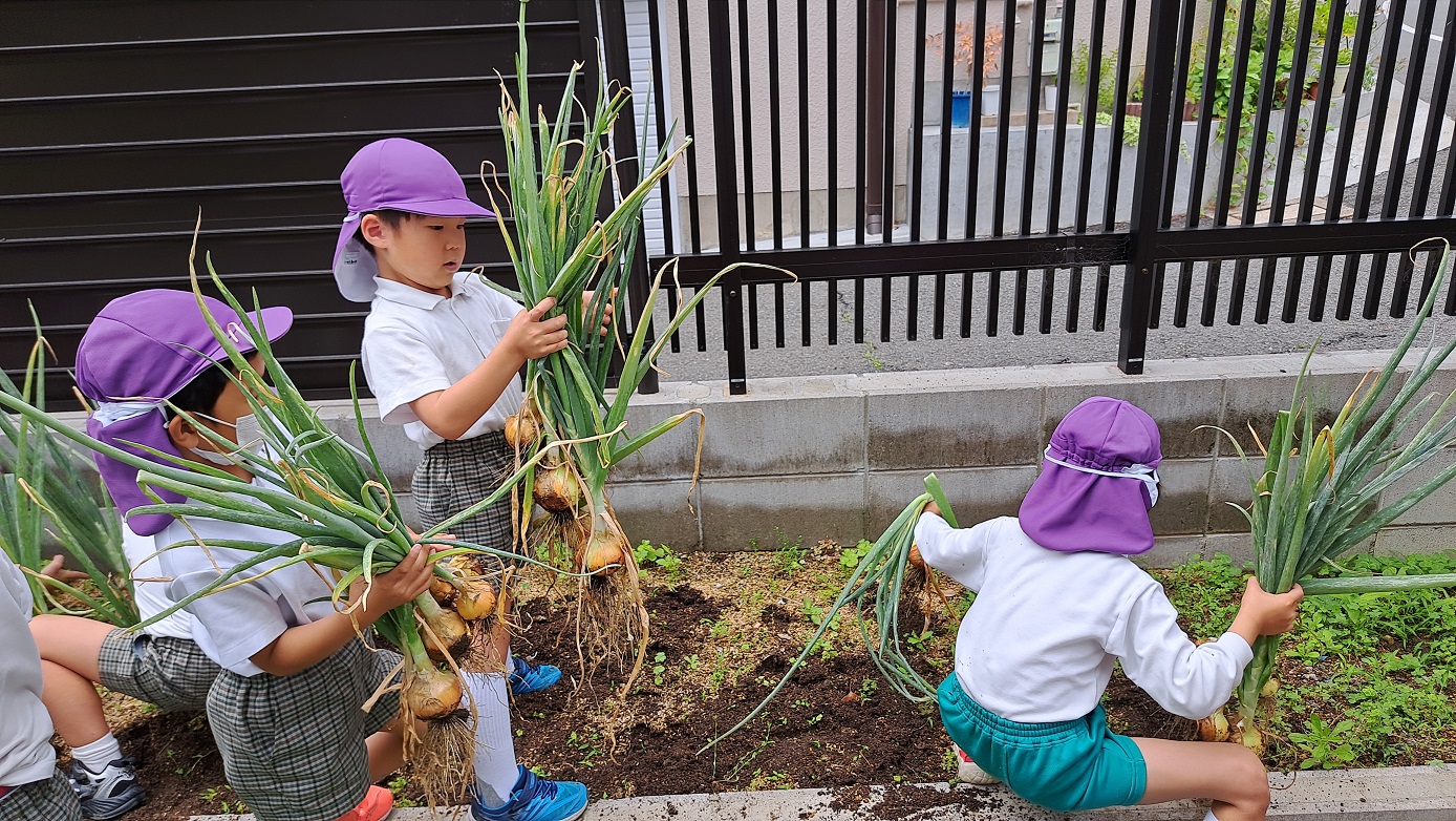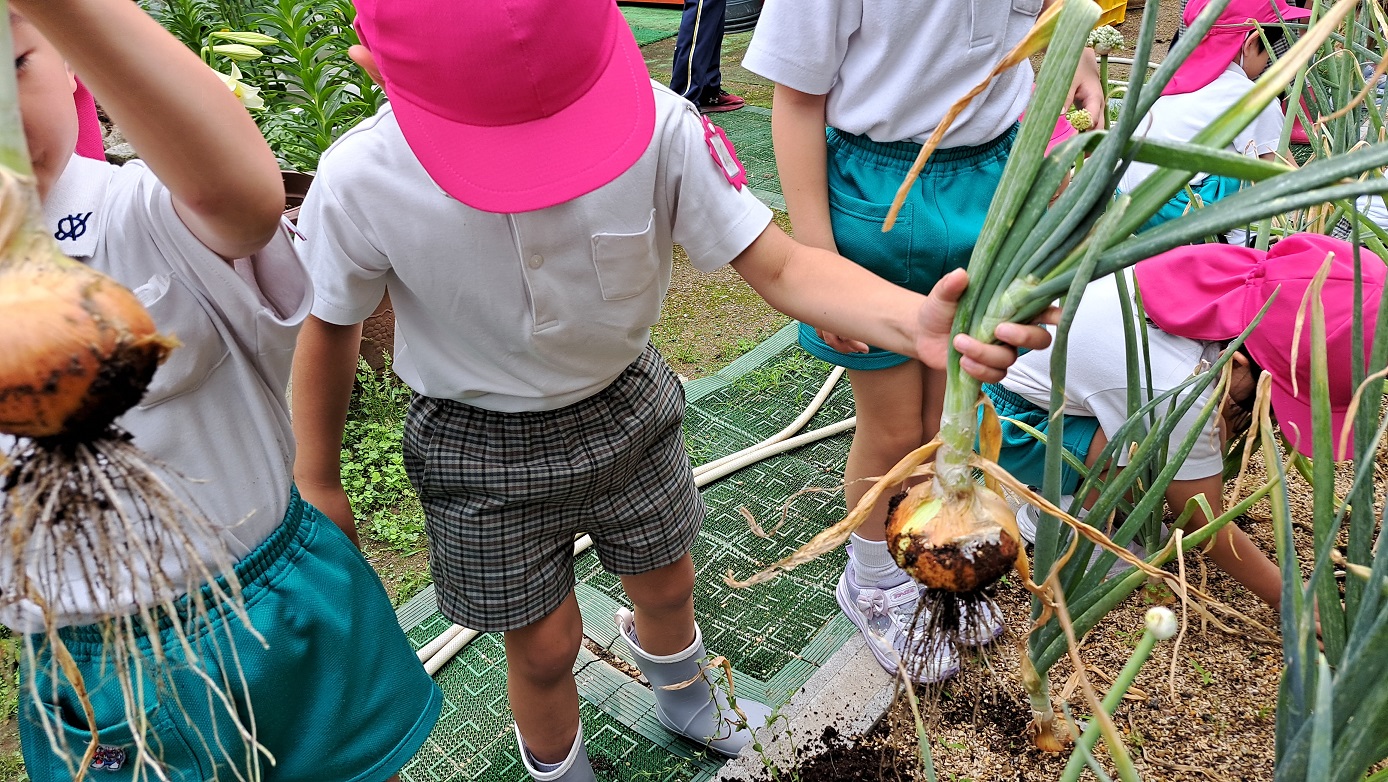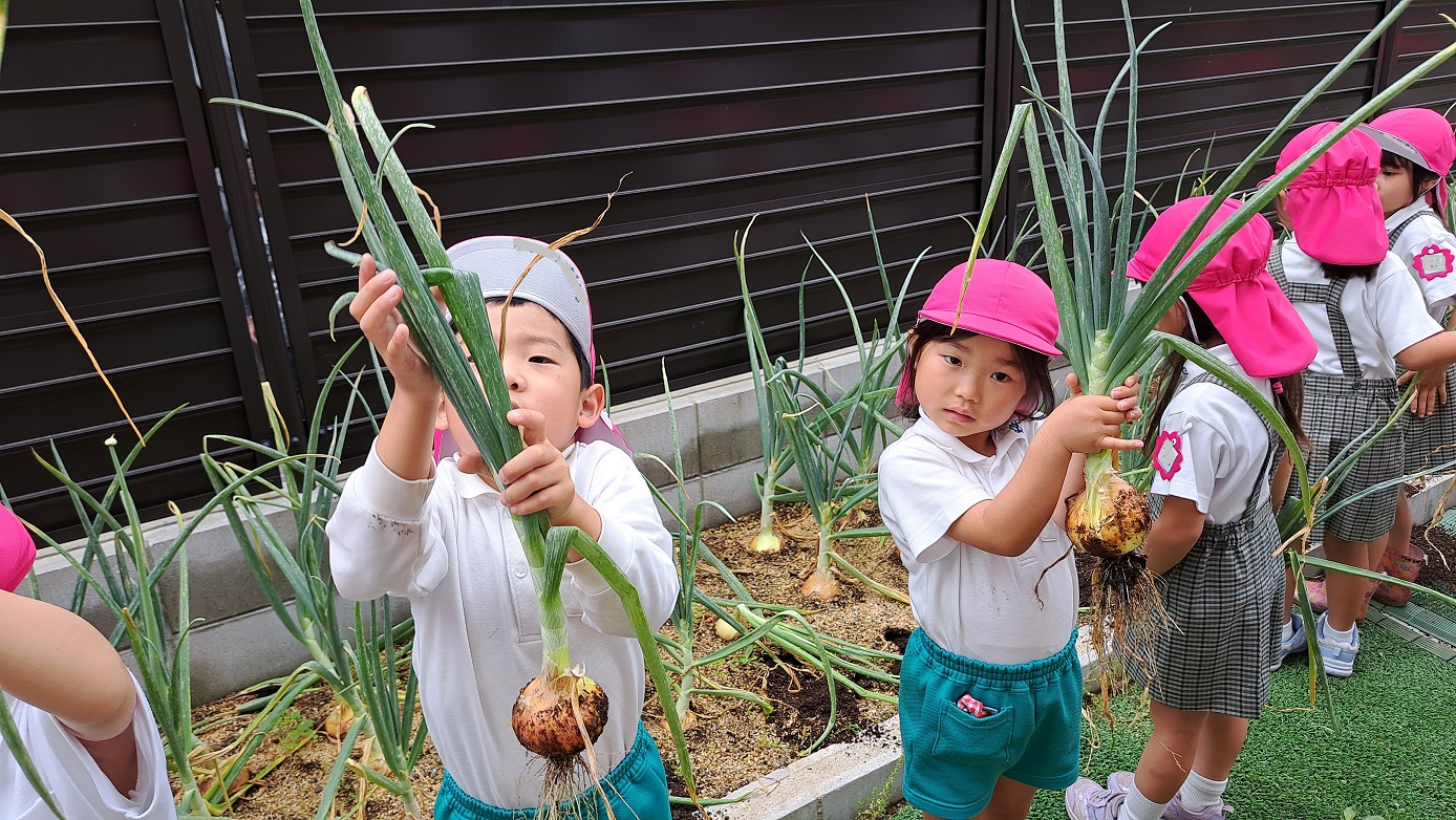 年長組のこどもたちが年中組のときに植えた"たまねぎ"。