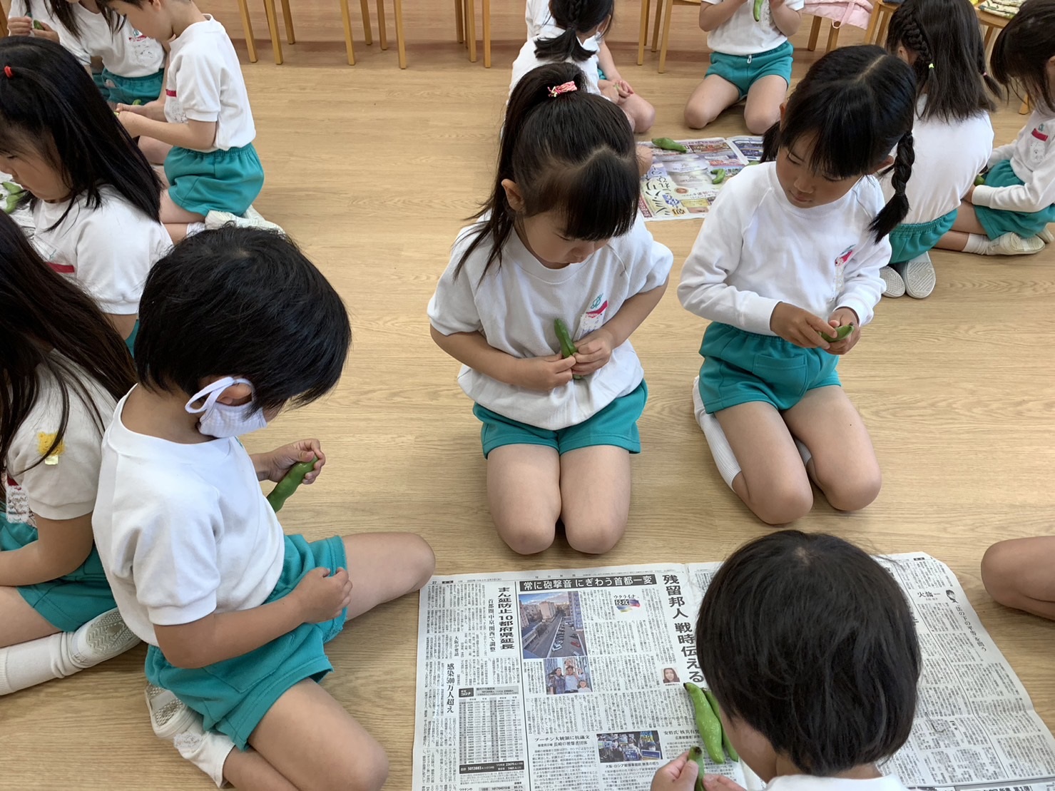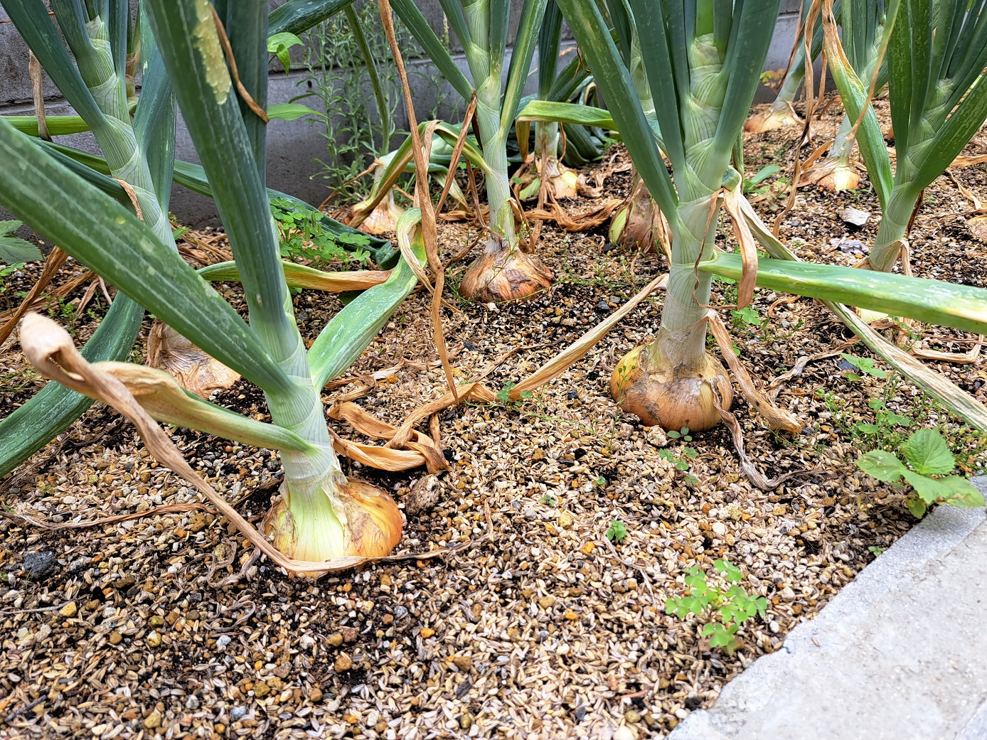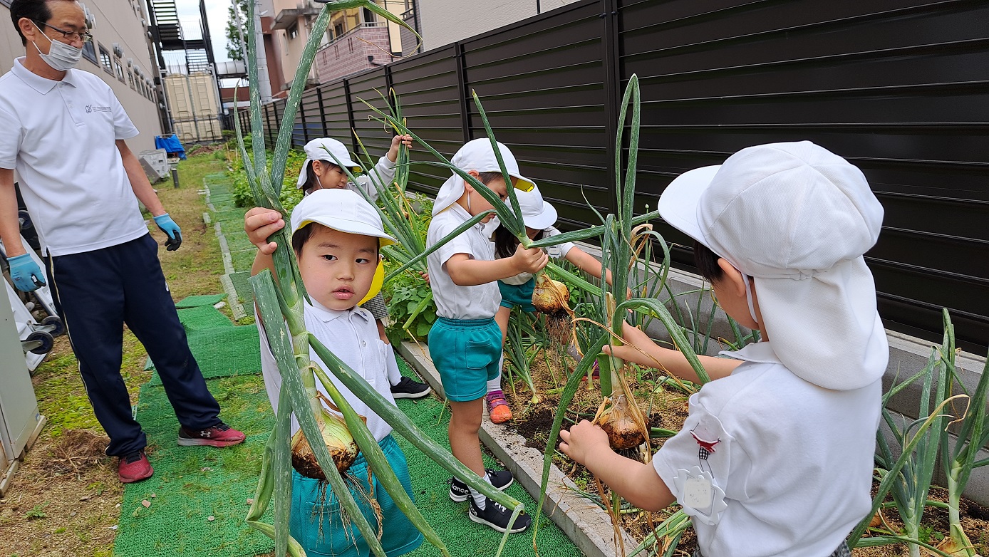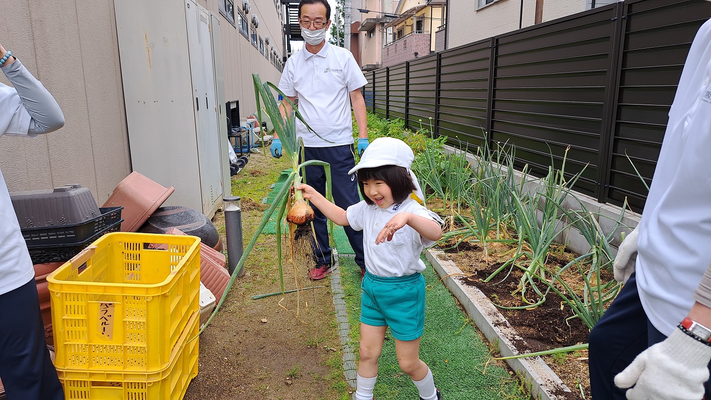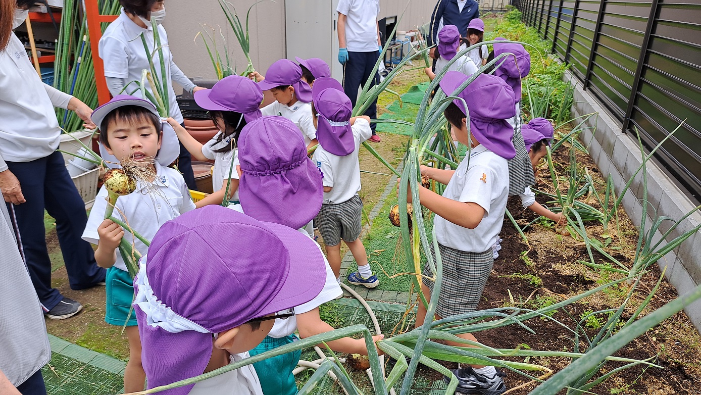 年長組のこどもたちが年中組のときに植えた"たまねぎ"。