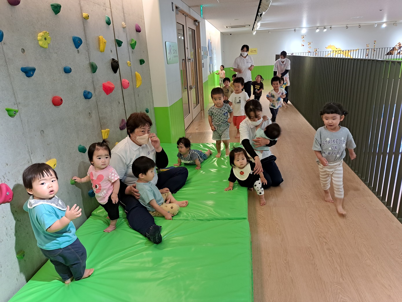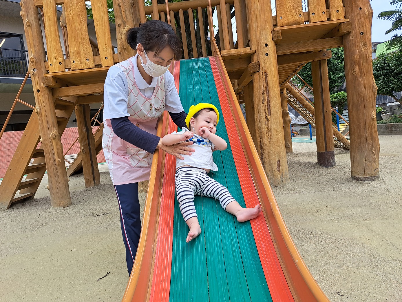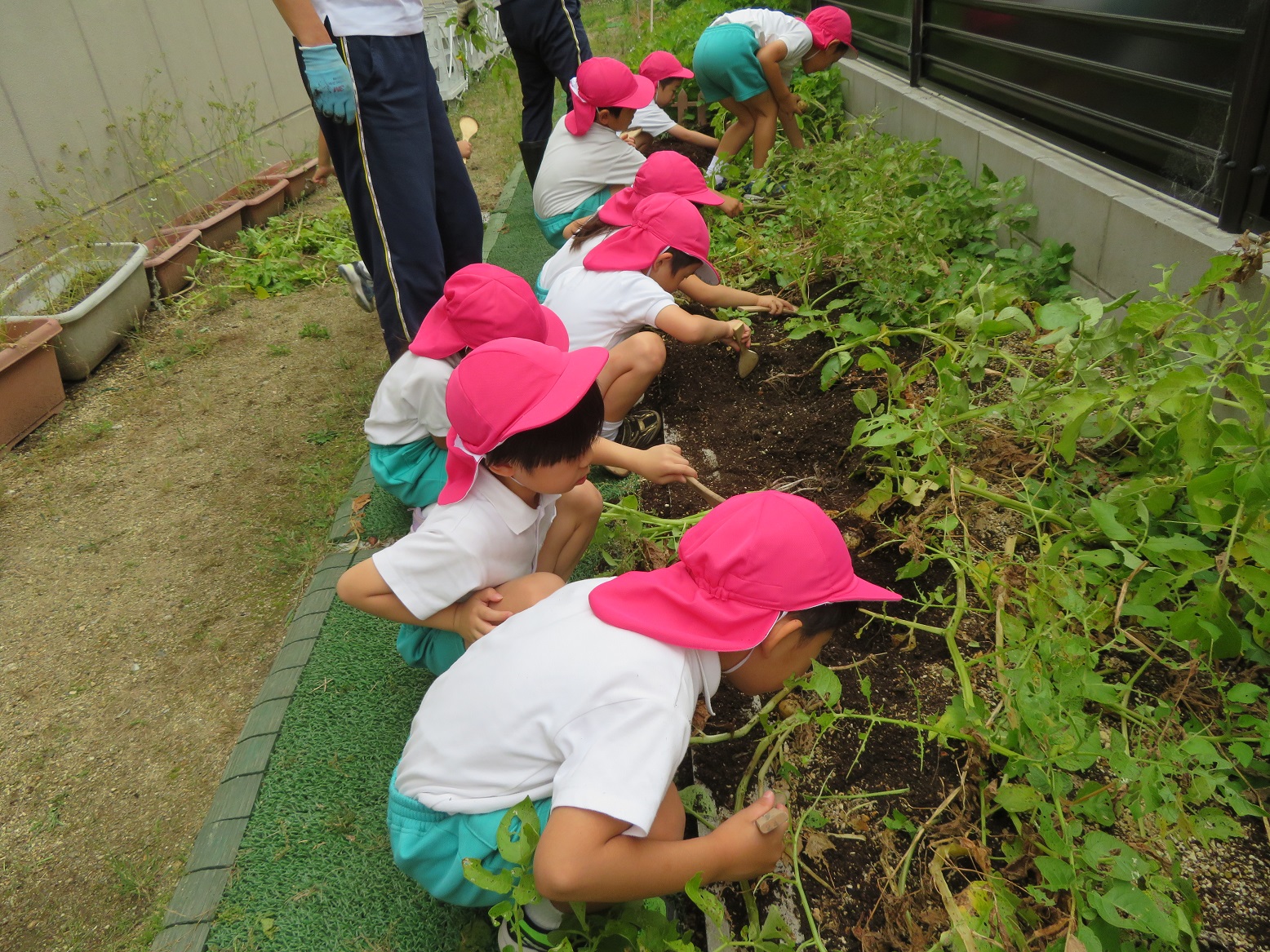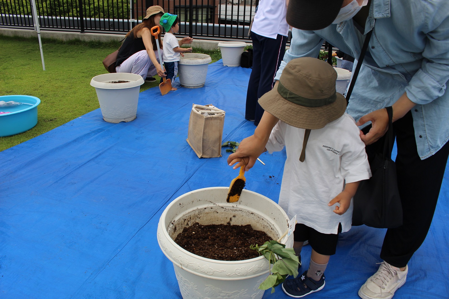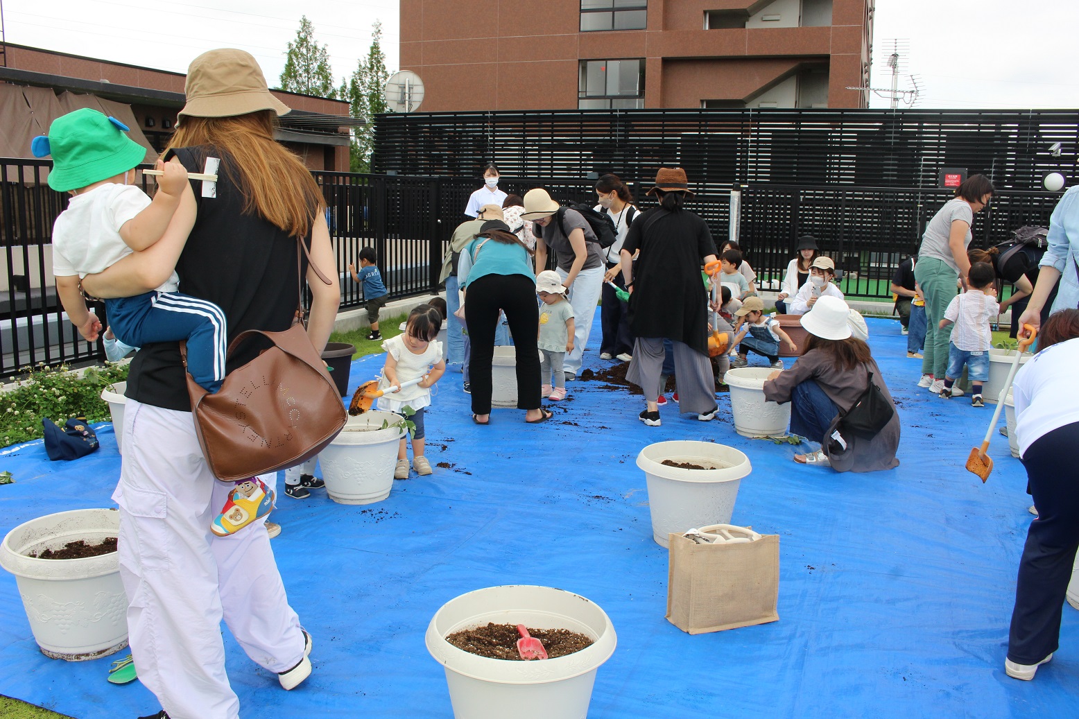 今日のうさぎ組さんは園内散歩♪フォレストホールではあやめ組さんが音楽発表会の練習中!素敵な合奏を聞かせてくれ、自然と体が音楽に合わせて動いていました!ひよこ組さんがテラスで色水遊びをしていたので一緒に参加させてもらいました♪カップですくったり、別の色の所に混ぜたりと楽しんでいました。「そろそろおしまいにしましょう!」と声掛けすると「いやだ!!」と泣き出す子どももいました(笑)ひよこさん!また一緒に遊んでね♪