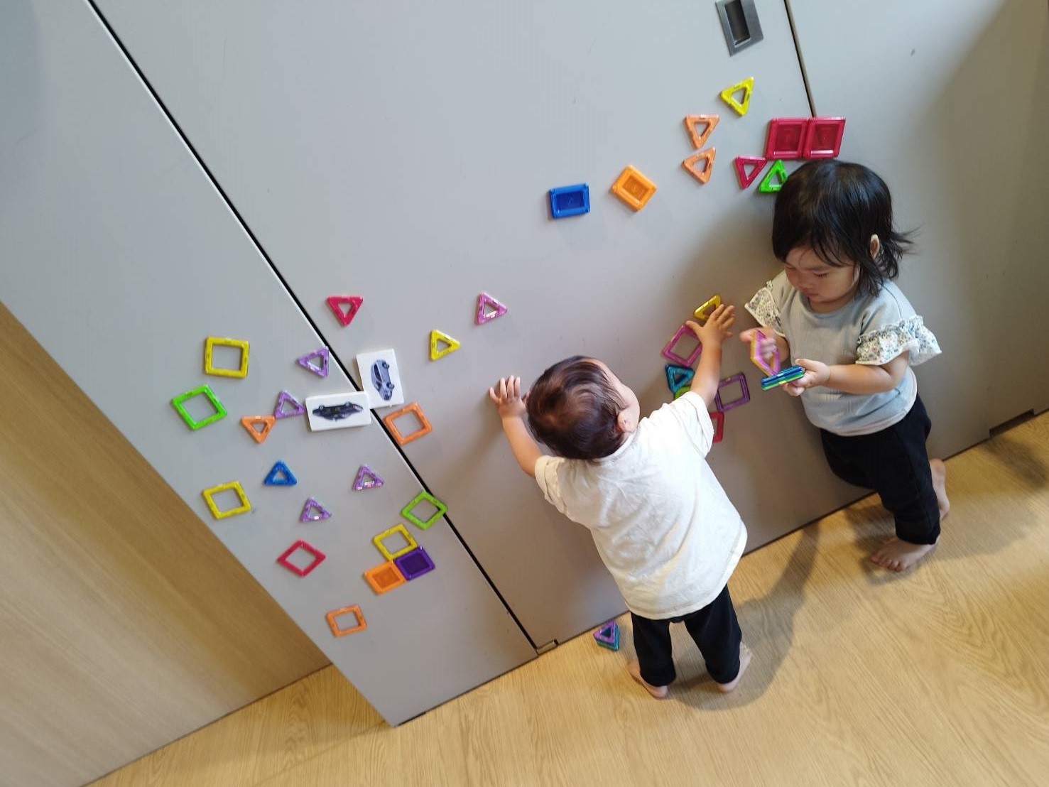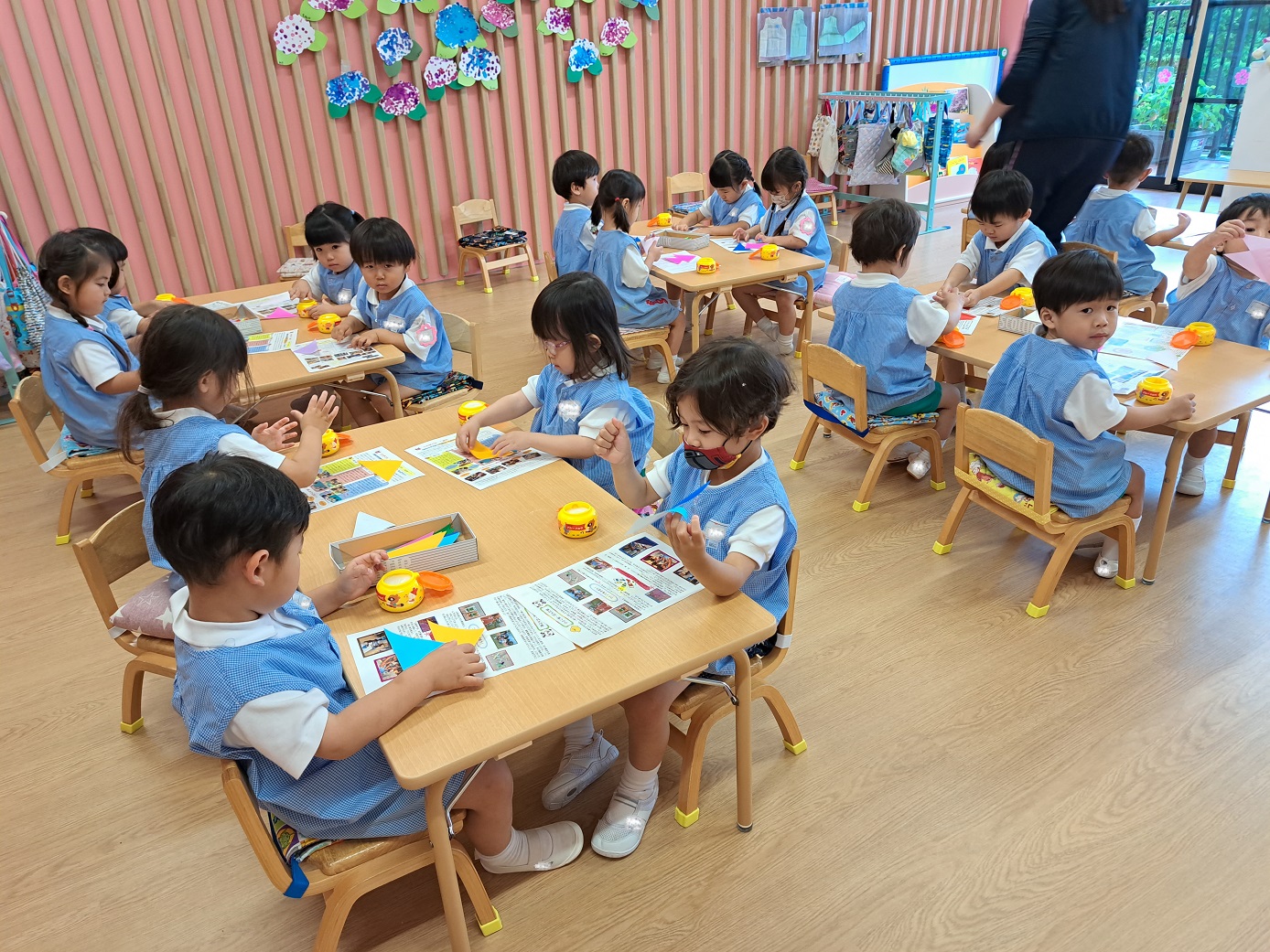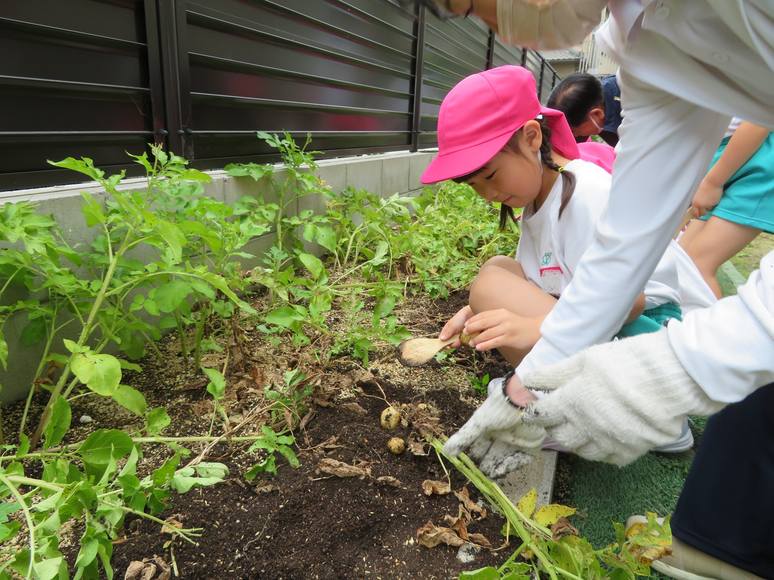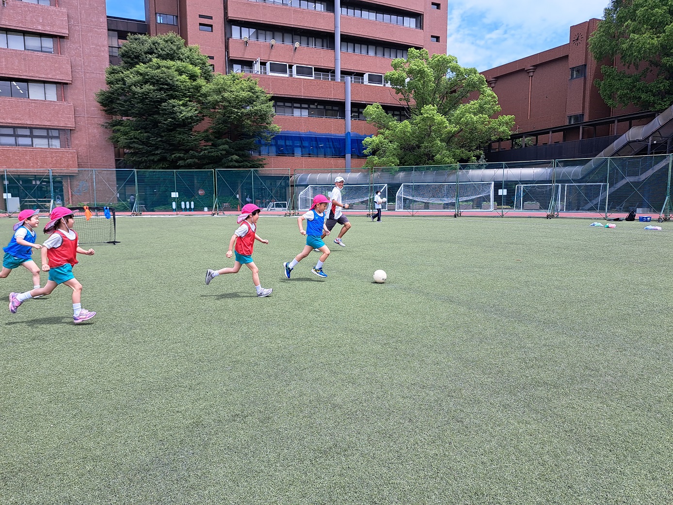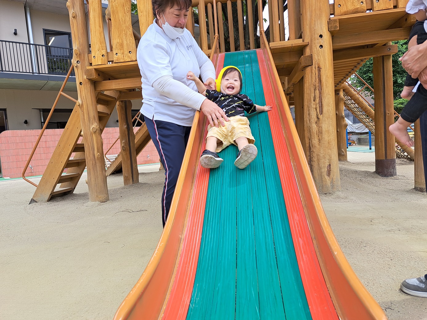 今日のうさぎ組さんは園内散歩♪フォレストホールではあやめ組さんが音楽発表会の練習中!素敵な合奏を聞かせてくれ、自然と体が音楽に合わせて動いていました!ひよこ組さんがテラスで色水遊びをしていたので一緒に参加させてもらいました♪カップですくったり、別の色の所に混ぜたりと楽しんでいました。「そろそろおしまいにしましょう!」と声掛けすると「いやだ!!」と泣き出す子どももいました(笑)ひよこさん!また一緒に遊んでね♪