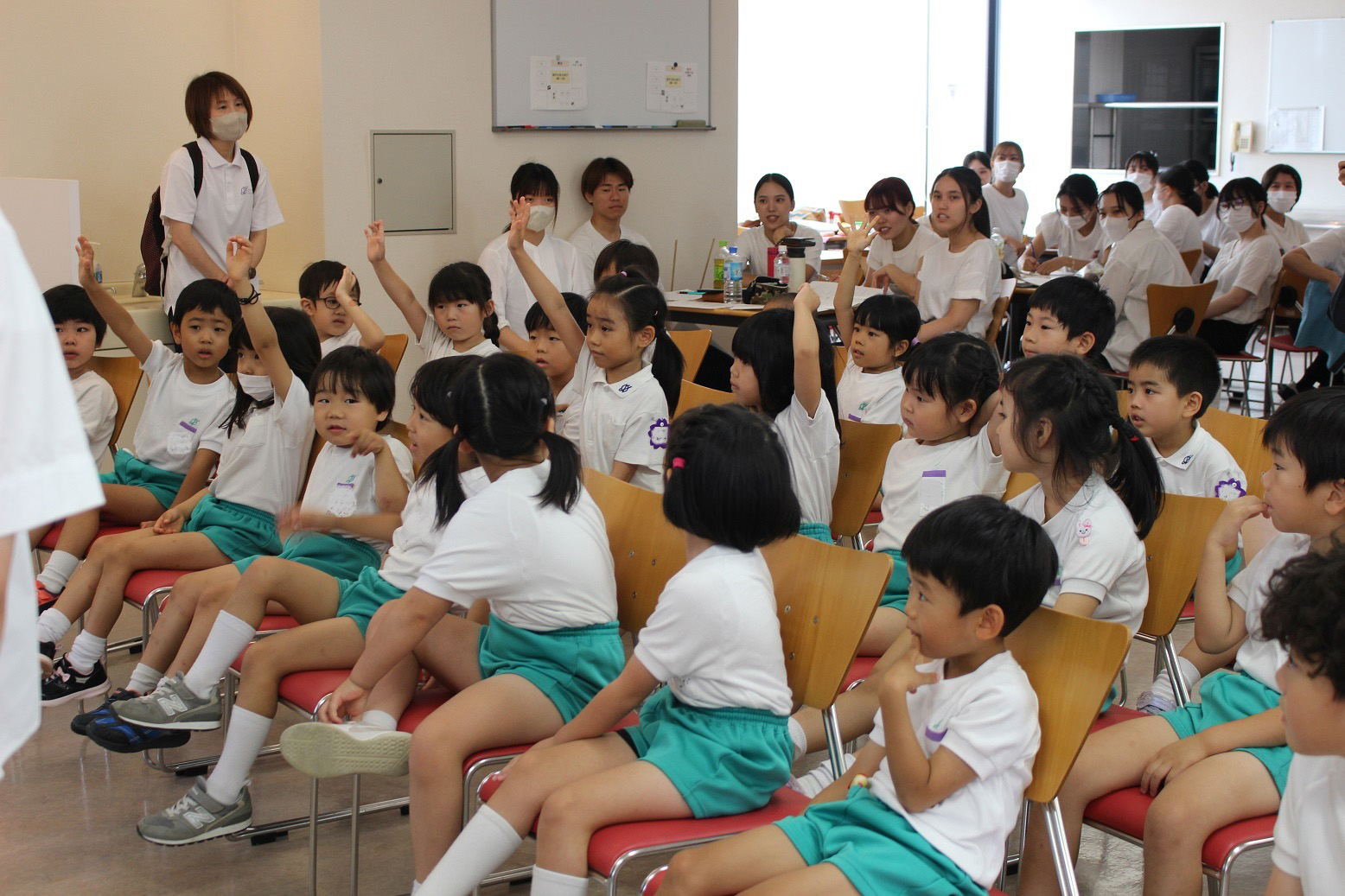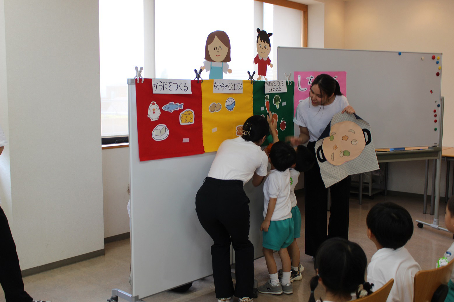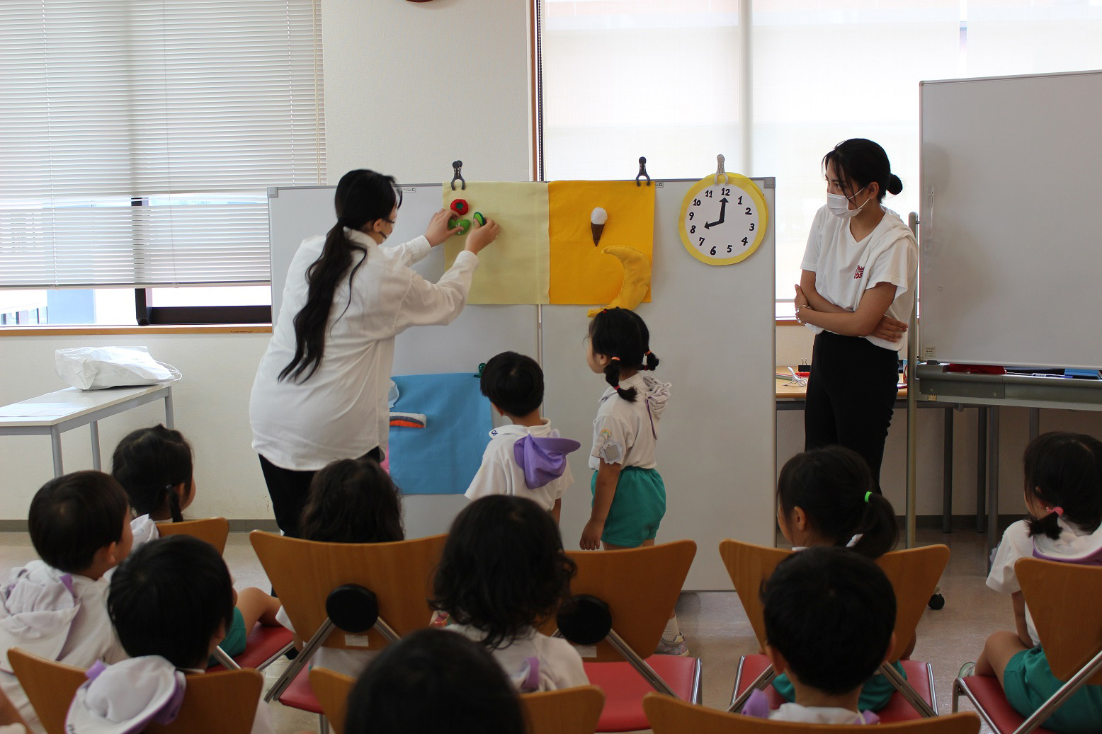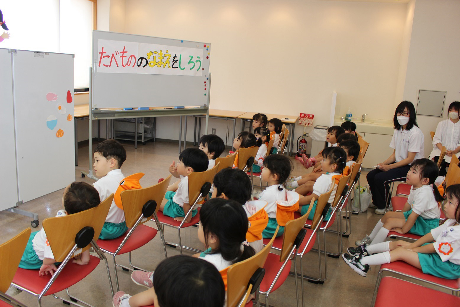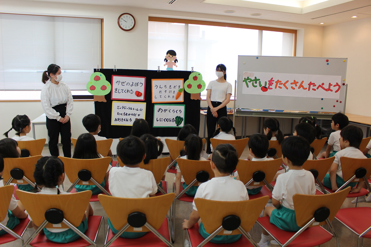 大阪国際大学短期大学部 栄養学科の学生さんたちが、子どもたちに「食育指導」をしてくださいました。