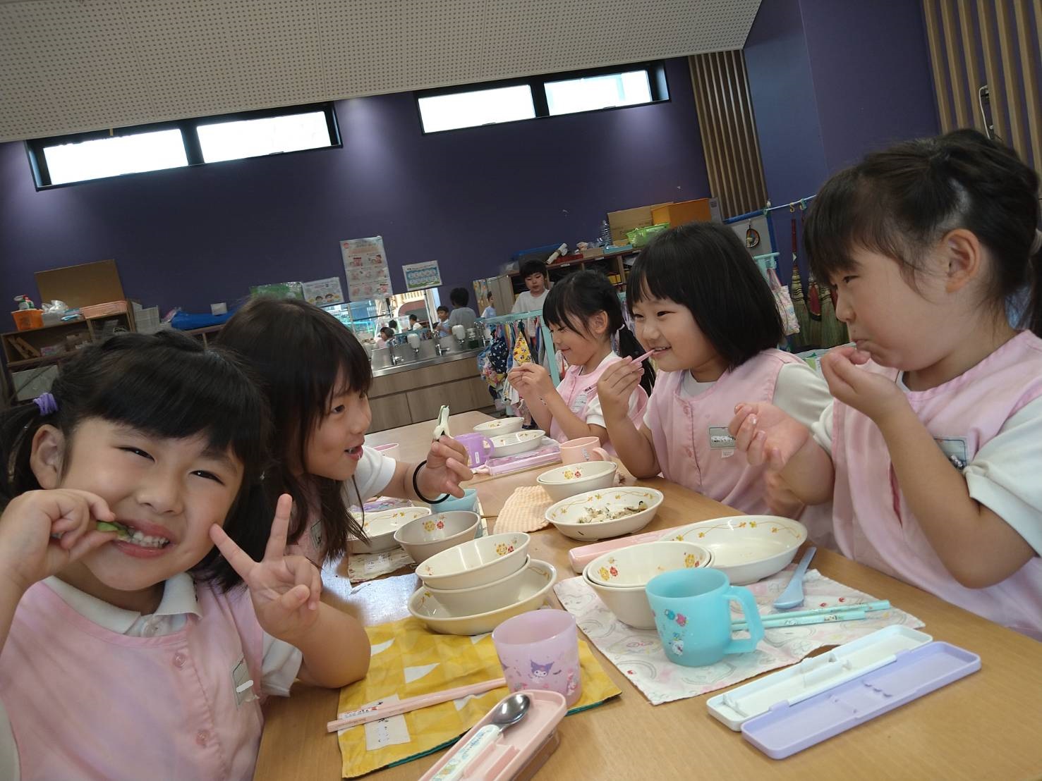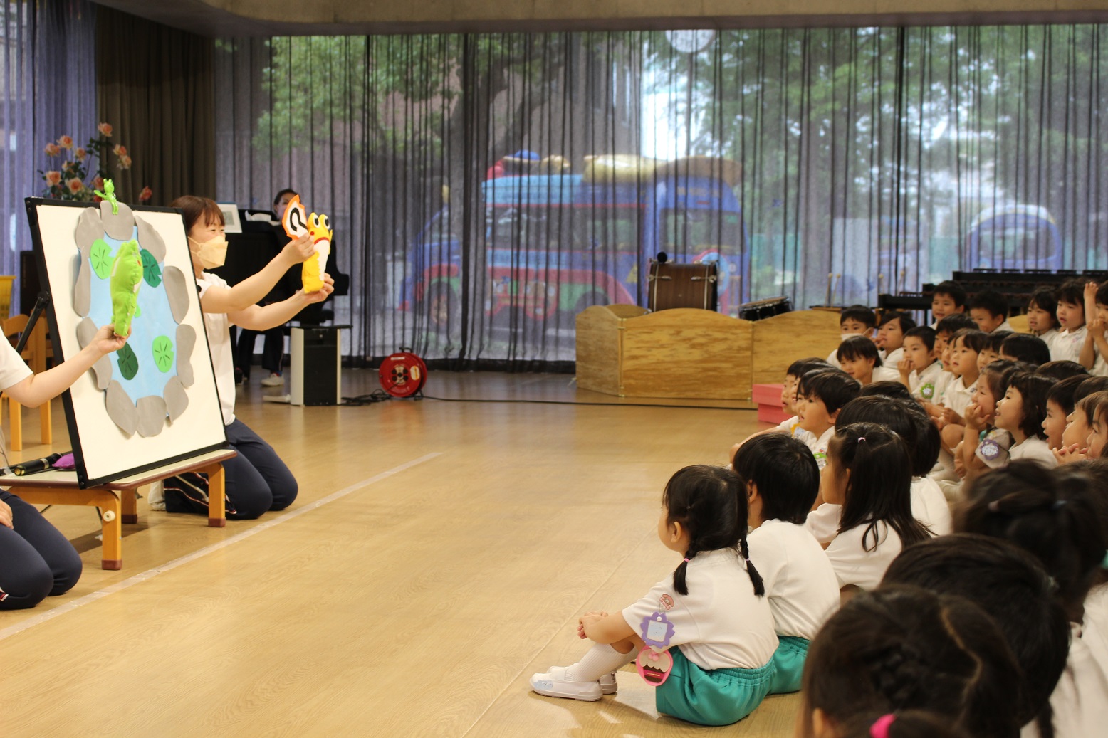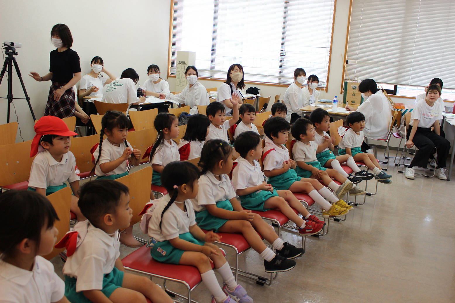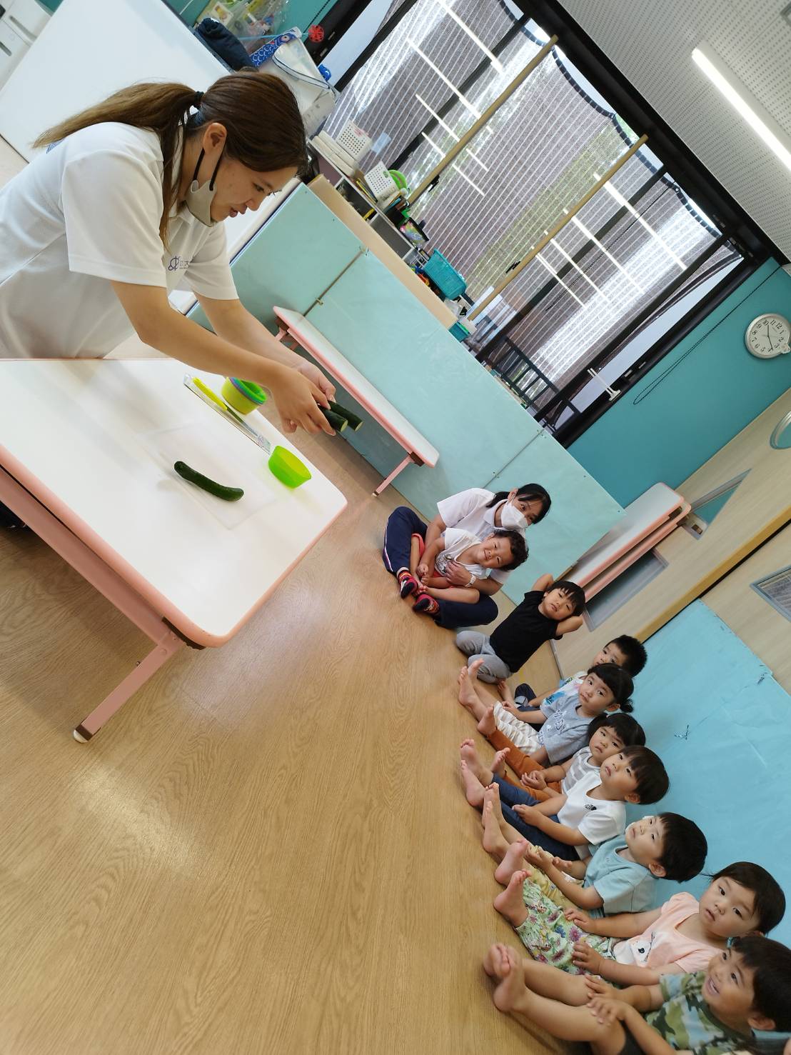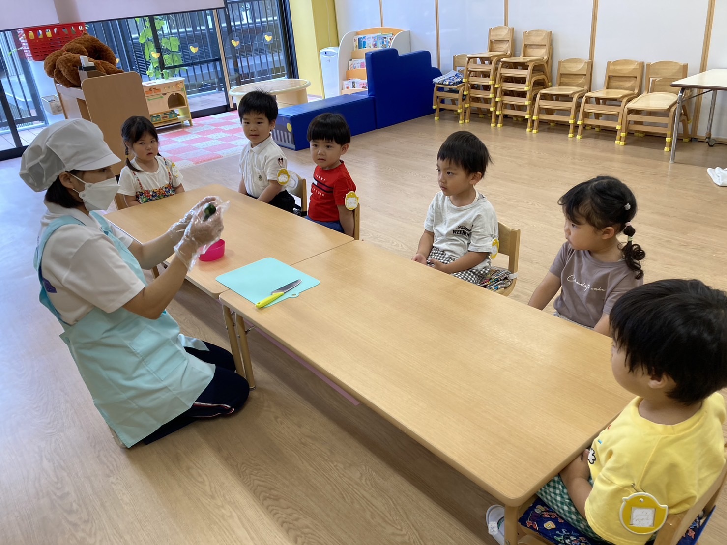 大阪国際大学短期大学部 栄養学科の学生さんたちが、子どもたちに「食育指導」をしてくださいました。