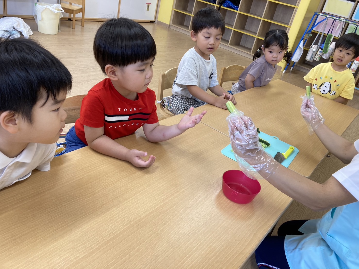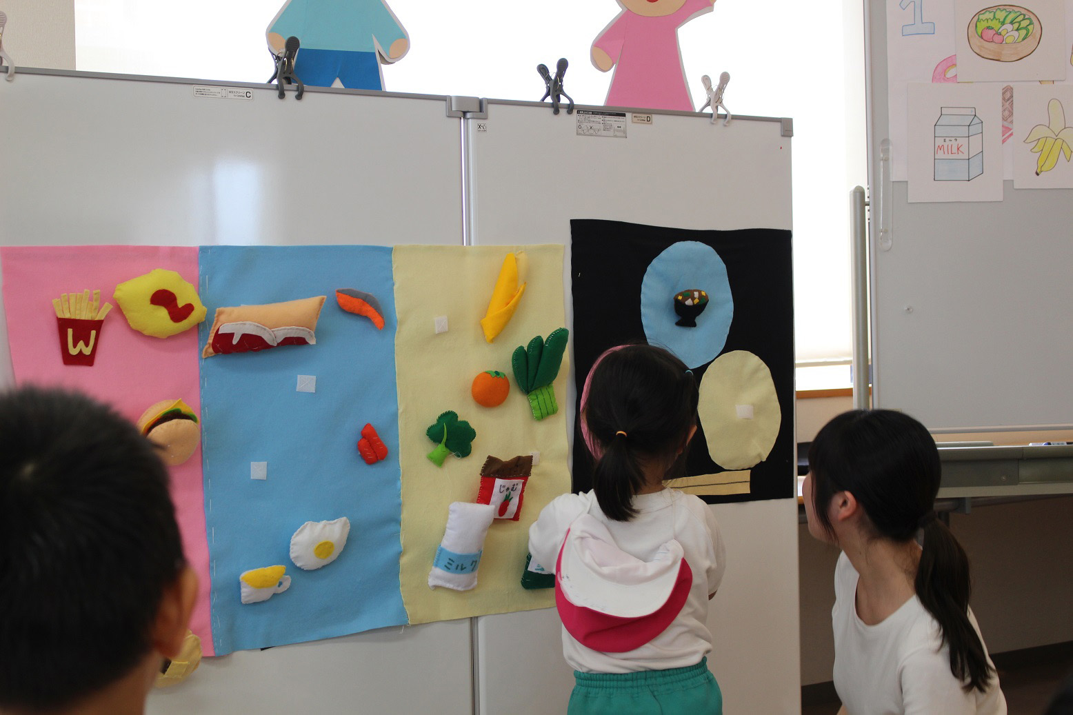 など、子どもたちが考えたり、さわったりして、食育について学びました。