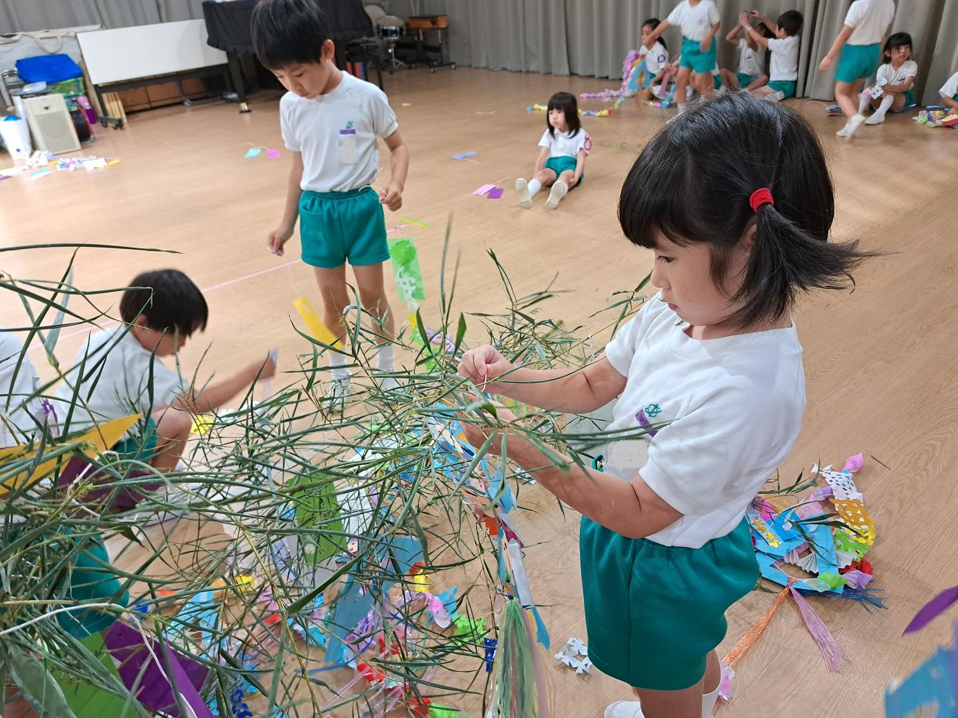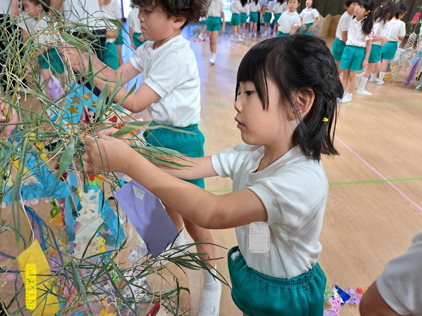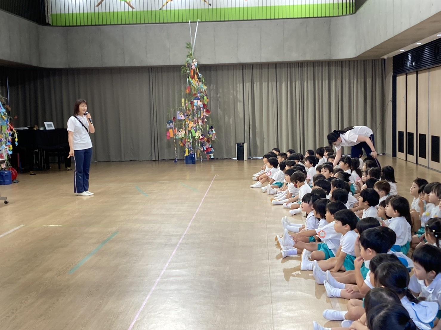 幼稚園の子どもたちはホールに集まって、"七夕の集い"を行いました。