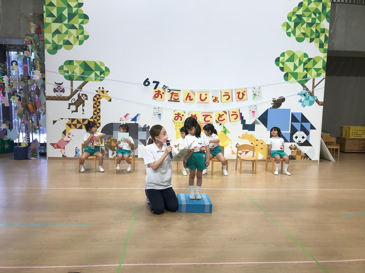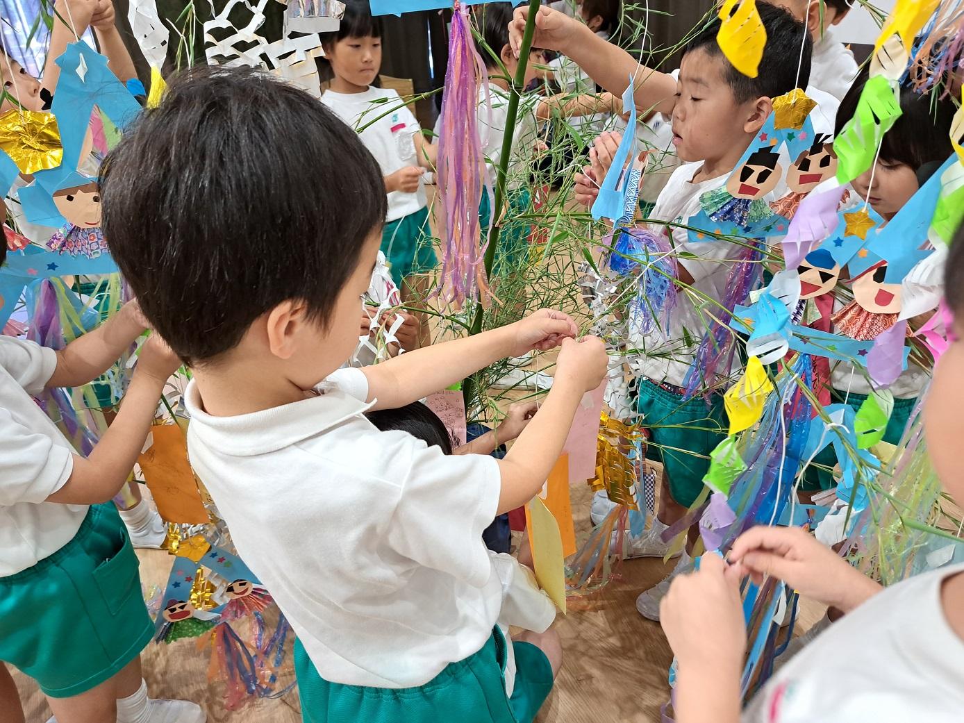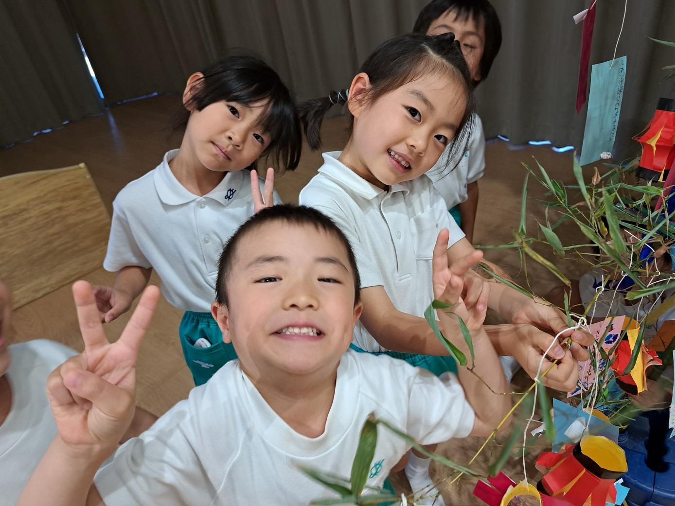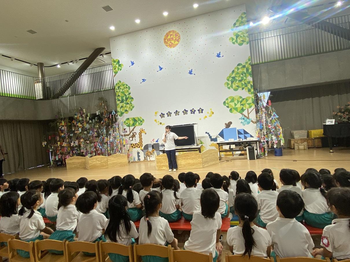 幼稚園の子どもたちはホールに集まって、"七夕の集い"を行いました。