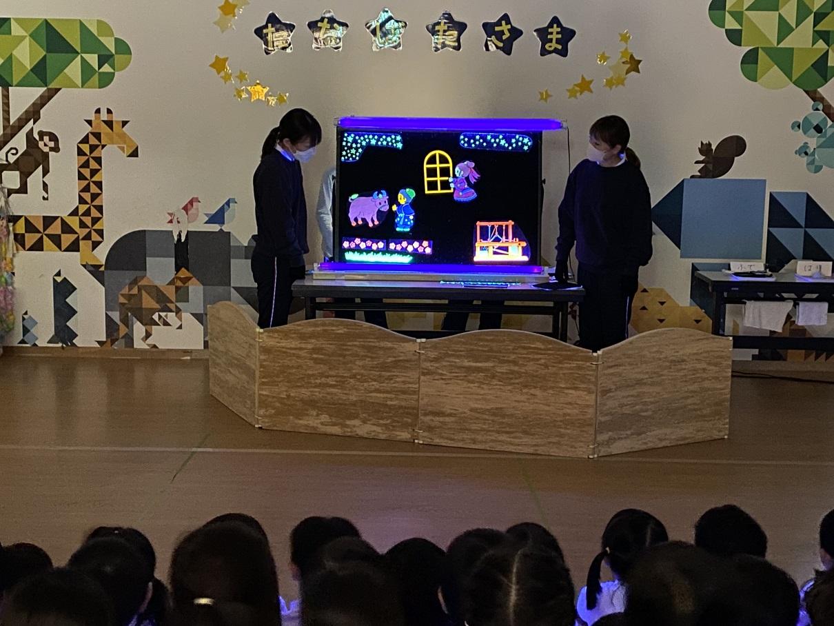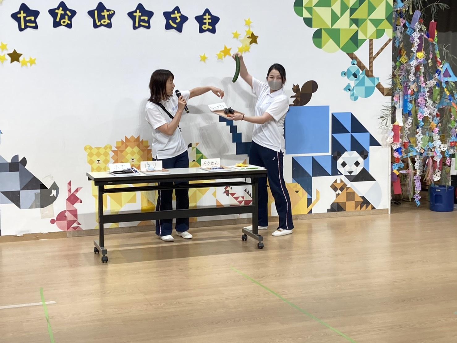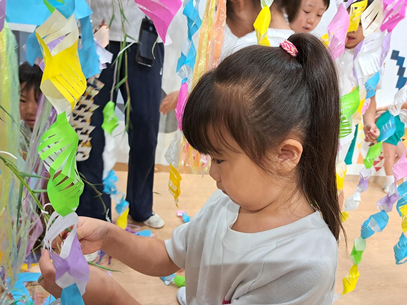 七夕のお話を聞いたり、ブラックライトシアターを見たりしました。