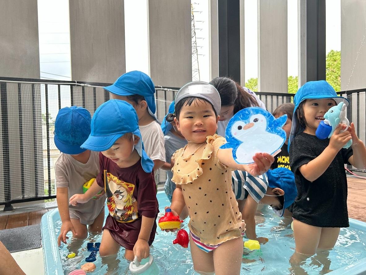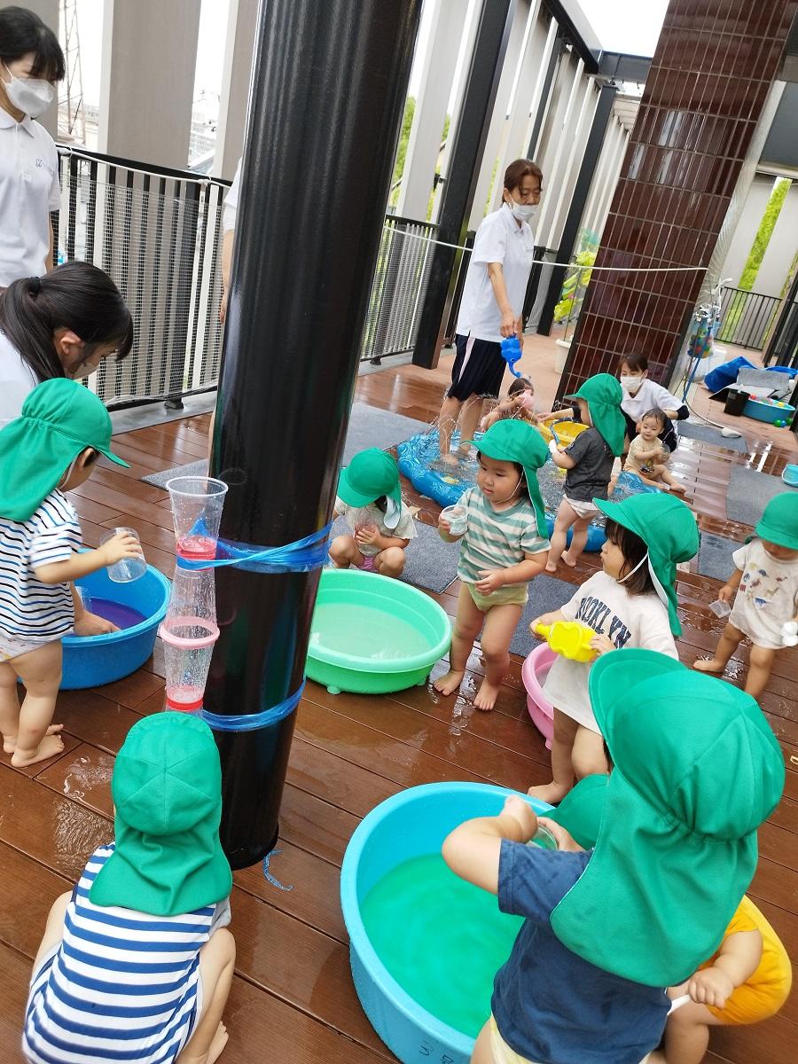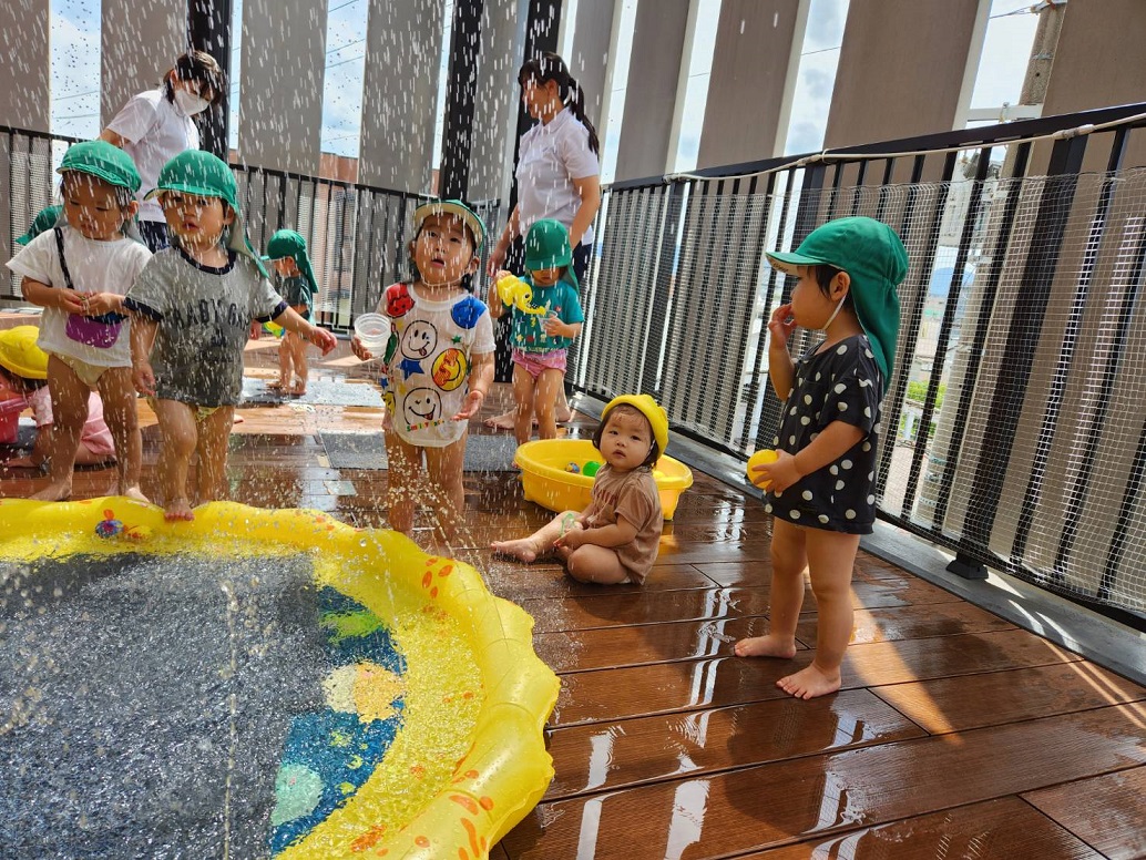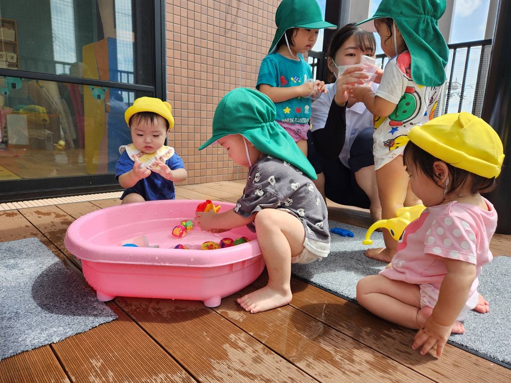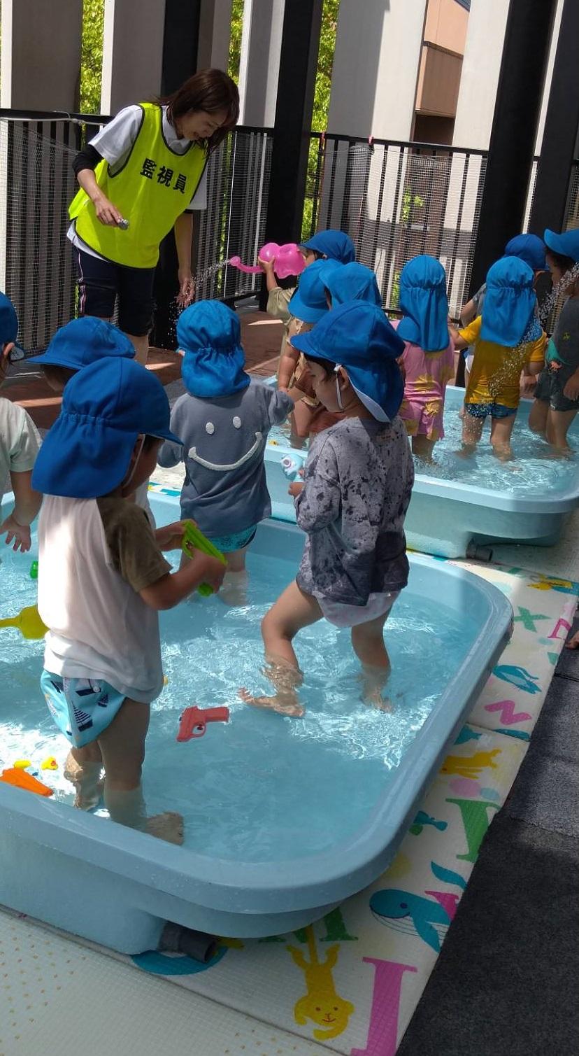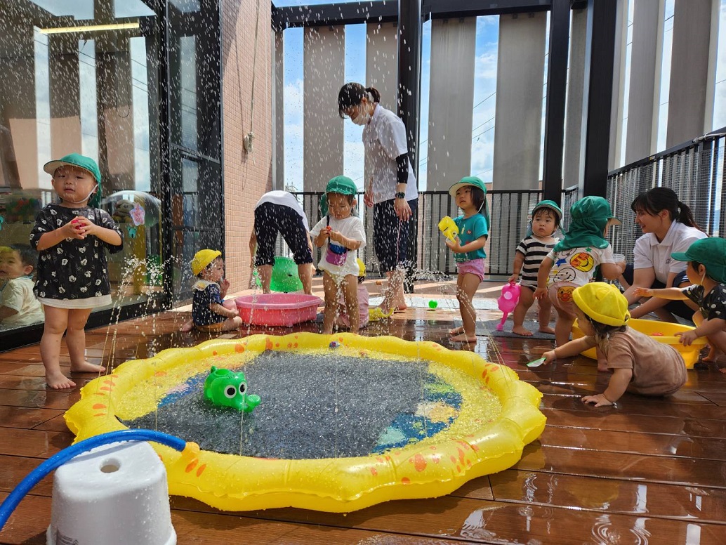 お天気も良く、初めは「つめたい!」と言っていた子どもたちも「きゃはは♬」と声を出しながら遊んでいました!夏ならではの楽しい遊びをたくさんしていきたいと思います!