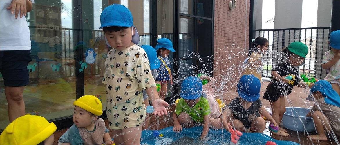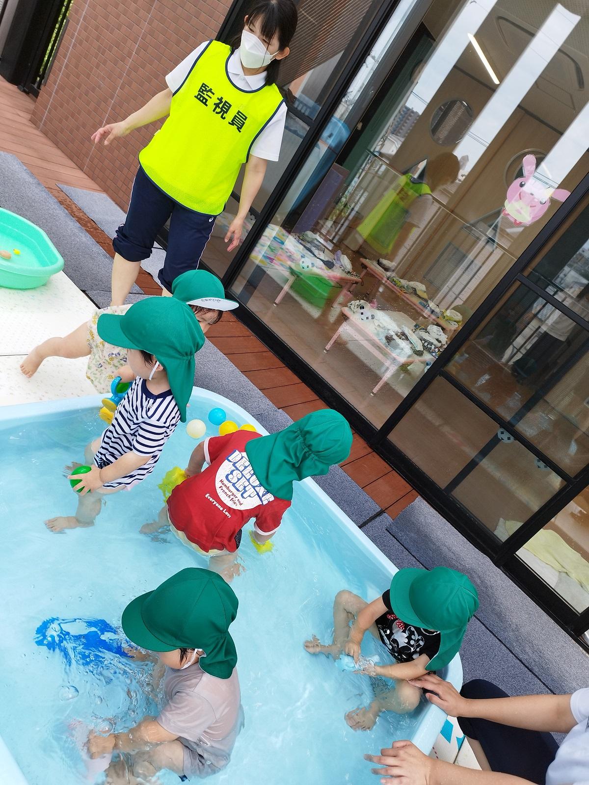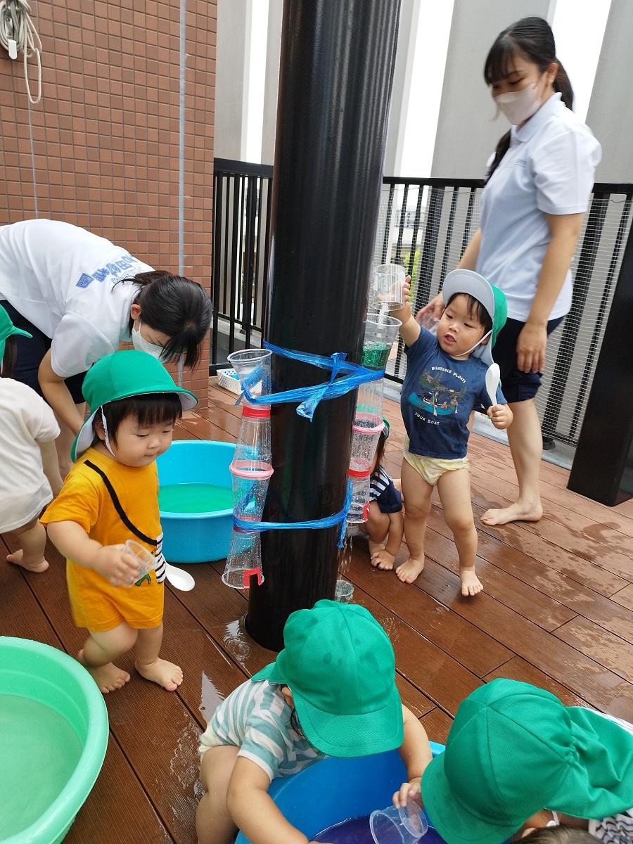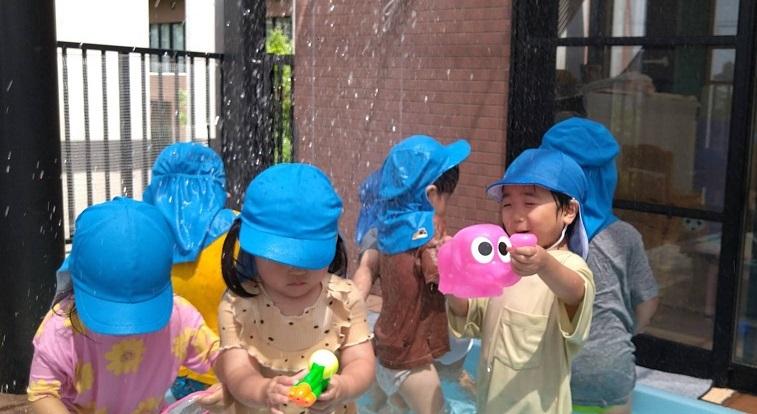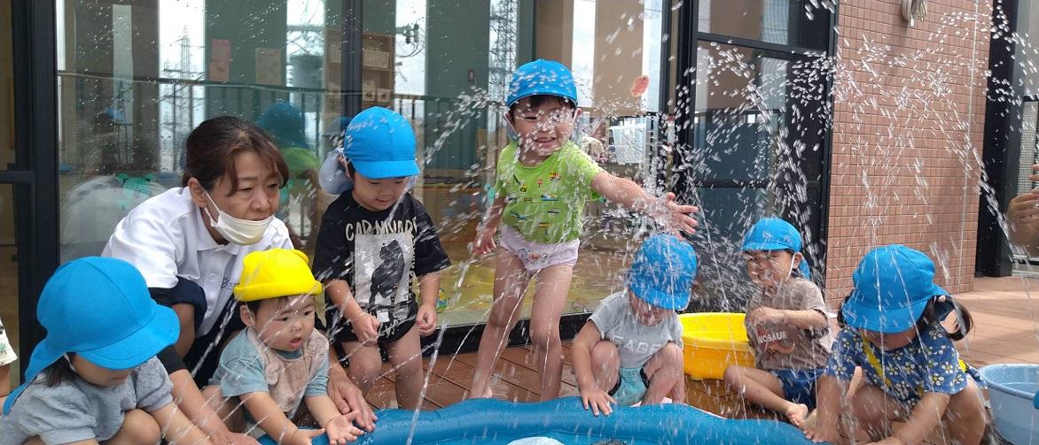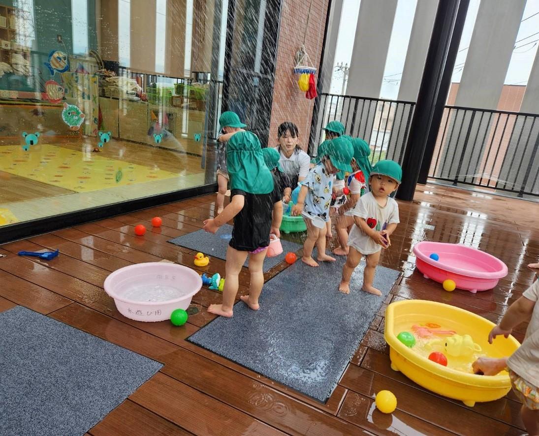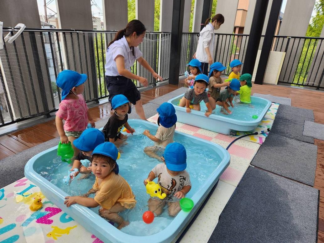 お天気も良く、初めは「つめたい!」と言っていた子どもたちも「きゃはは♬」と声を出しながら遊んでいました!夏ならではの楽しい遊びをたくさんしていきたいと思います!