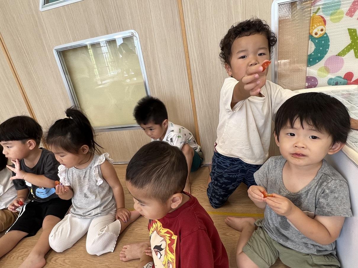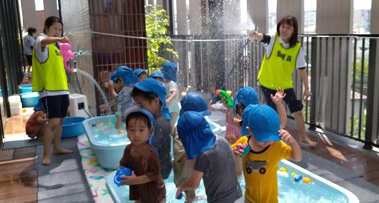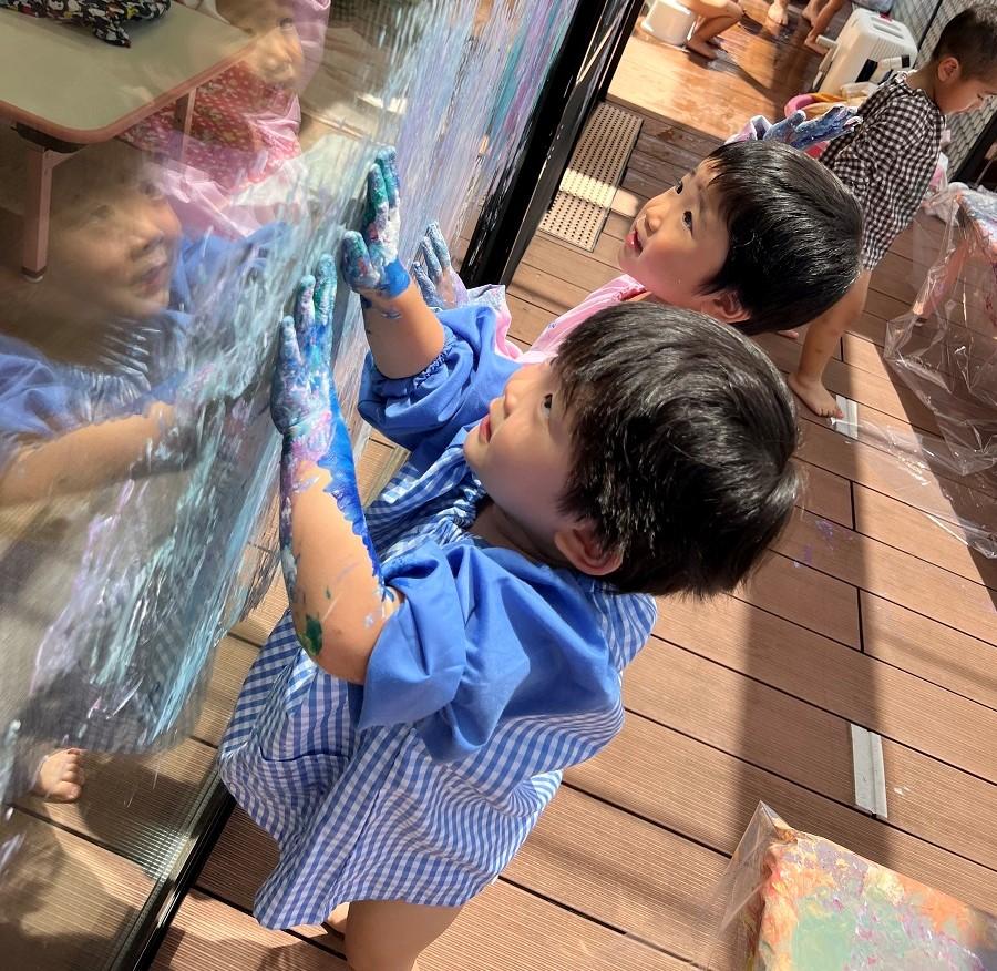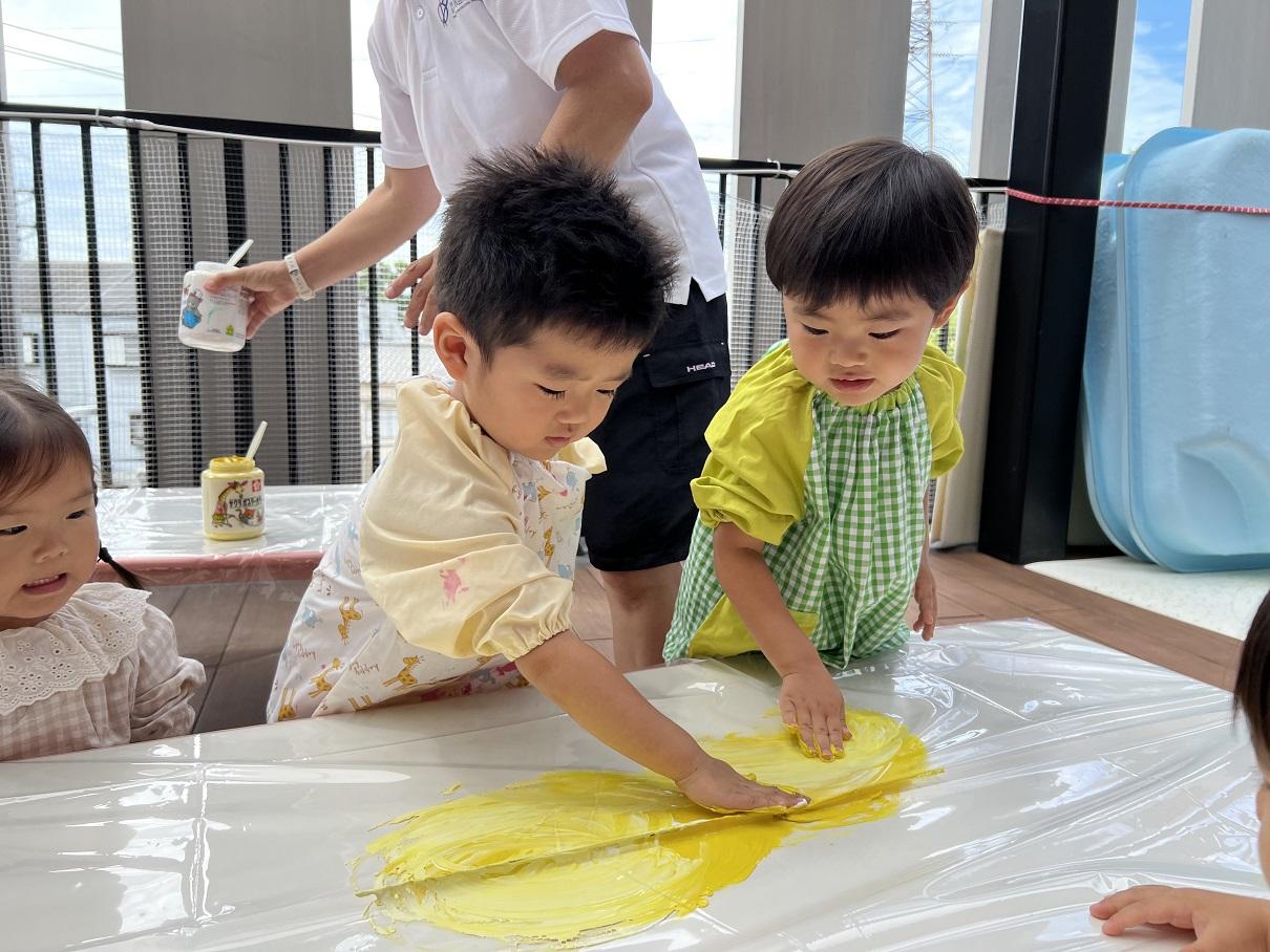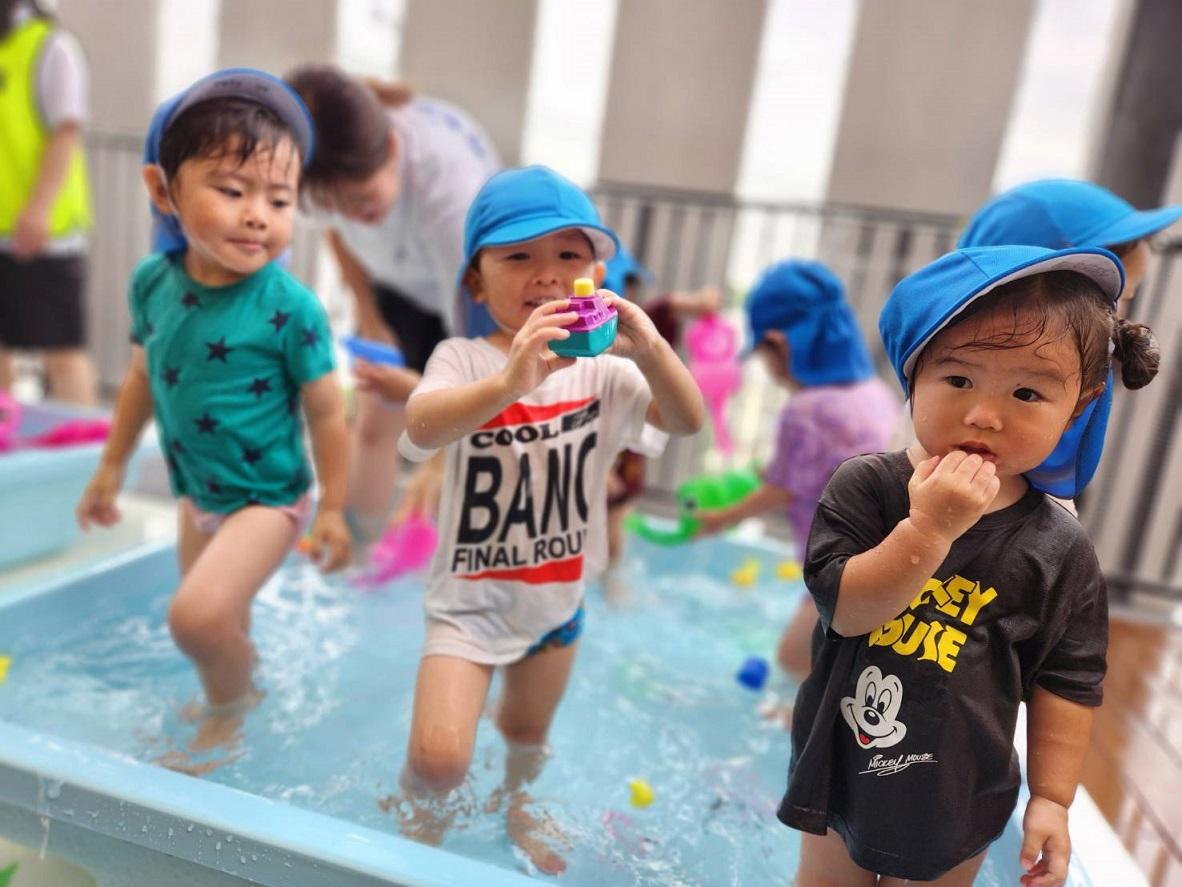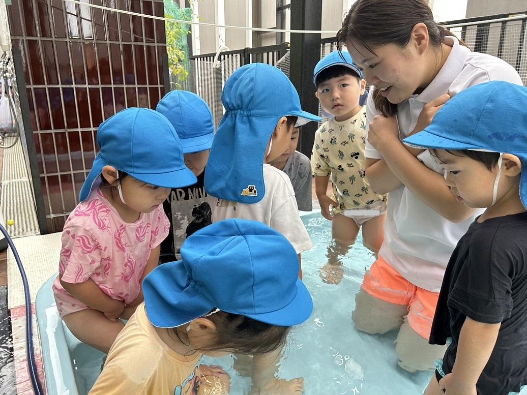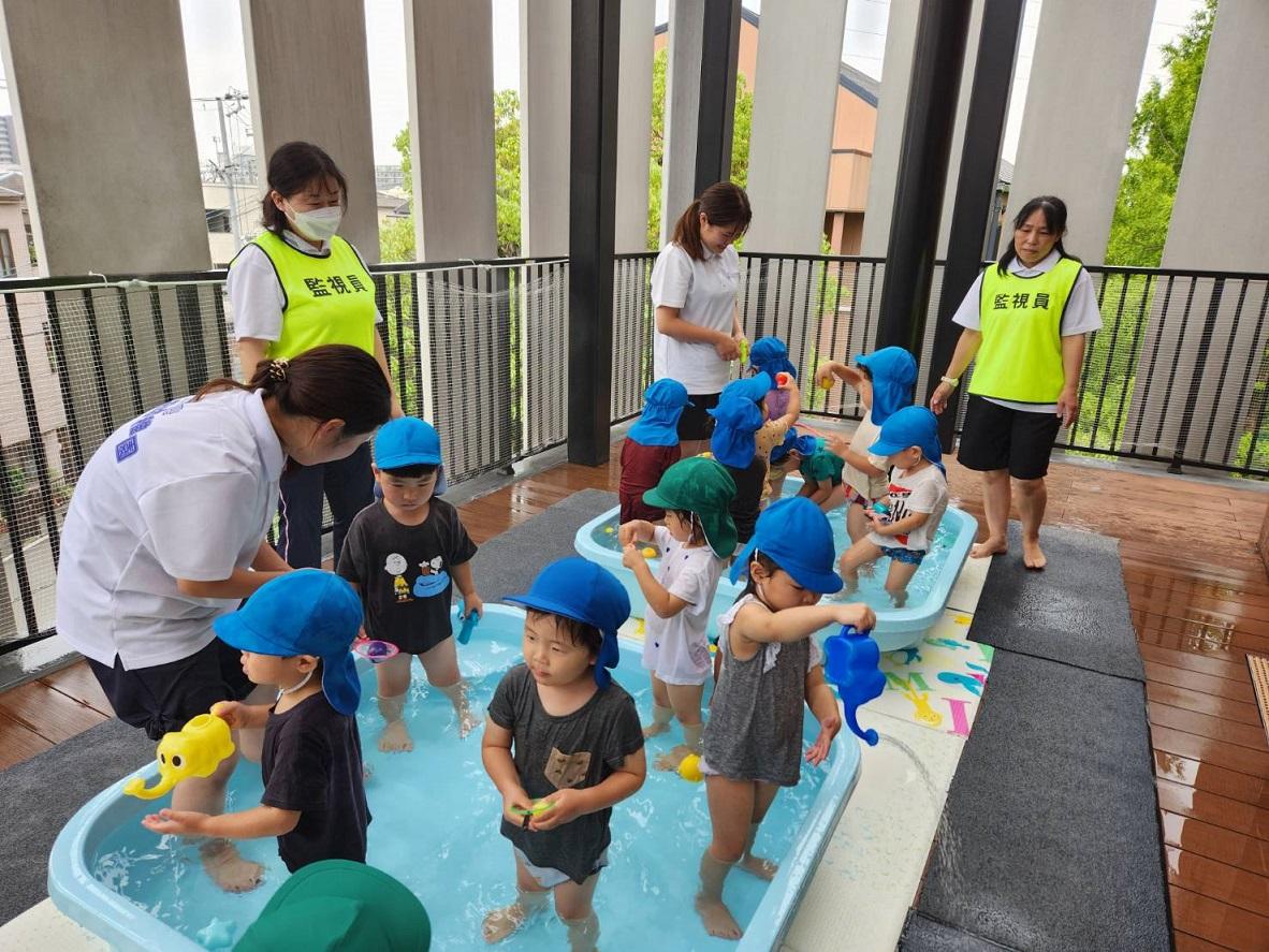 お天気も良く、初めは「つめたい!」と言っていた子どもたちも「きゃはは♬」と声を出しながら遊んでいました!夏ならではの楽しい遊びをたくさんしていきたいと思います!
