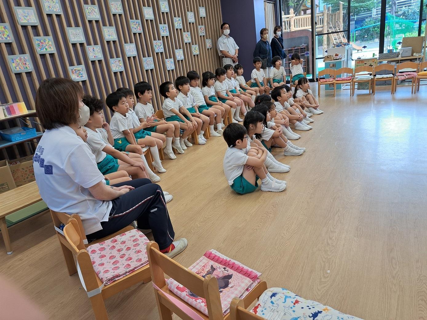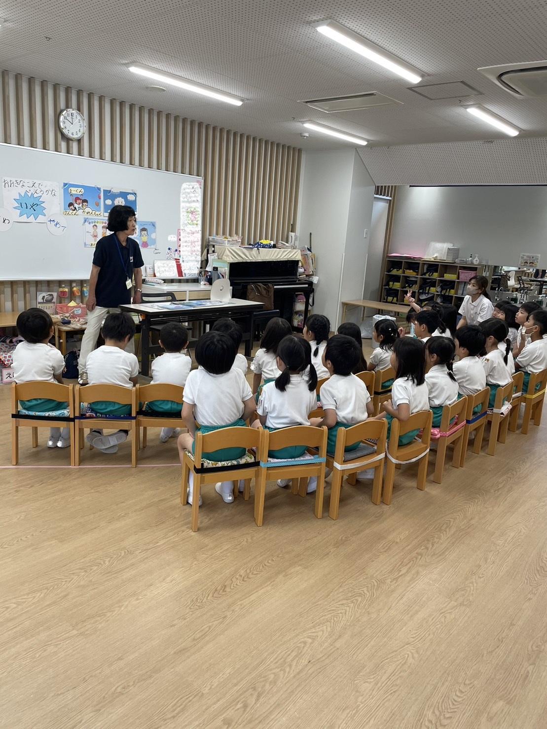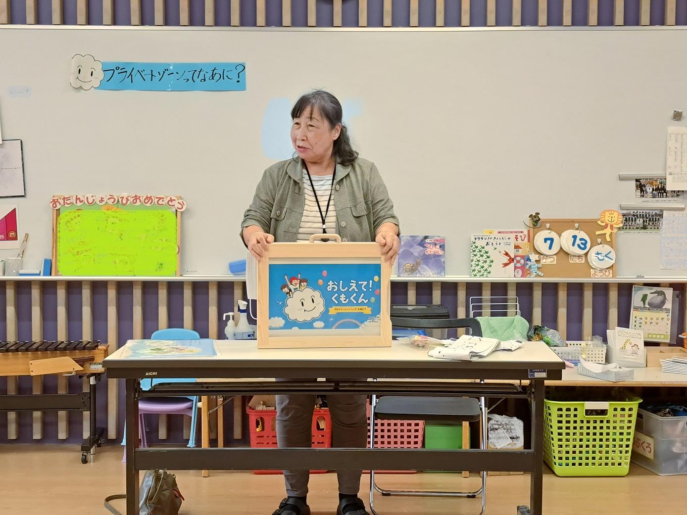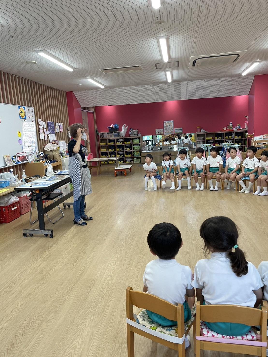 7月13日 大阪第二人権擁護委員協議会の4名の方が来られ、年長組の子どもたちを対象に、「プライベートゾーン」のお話を聞きました。