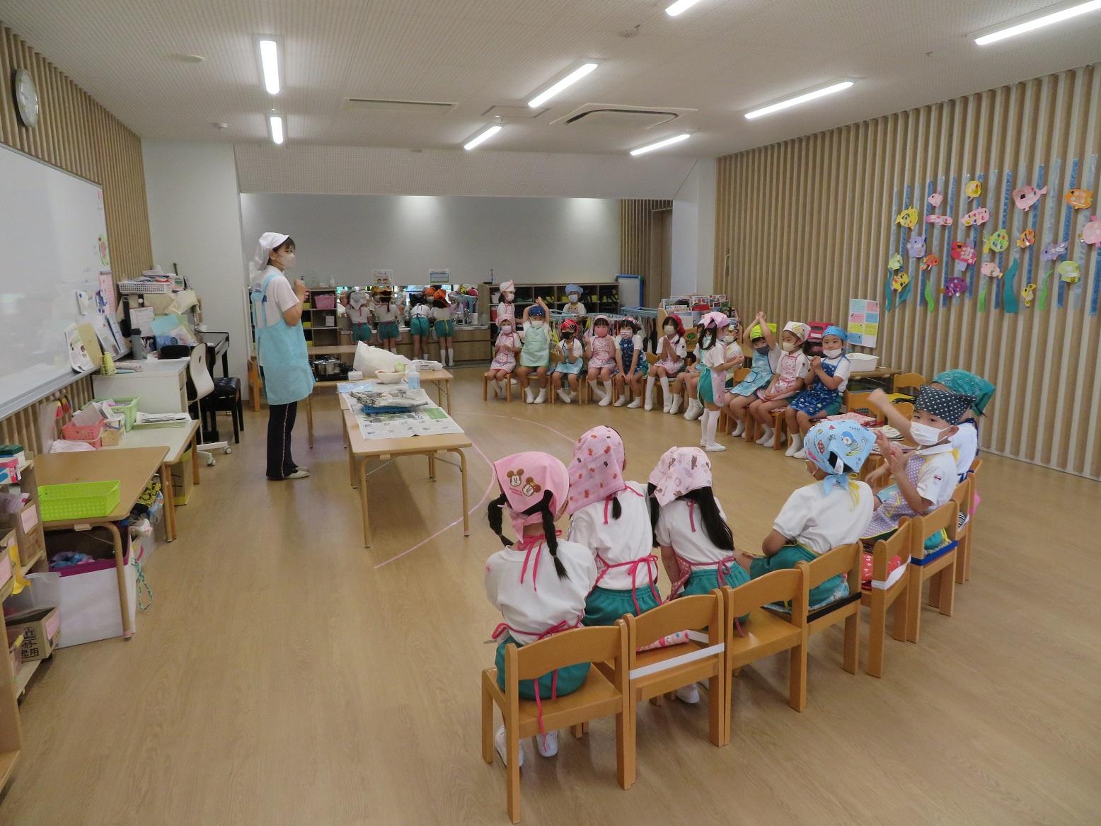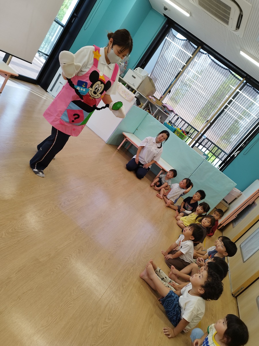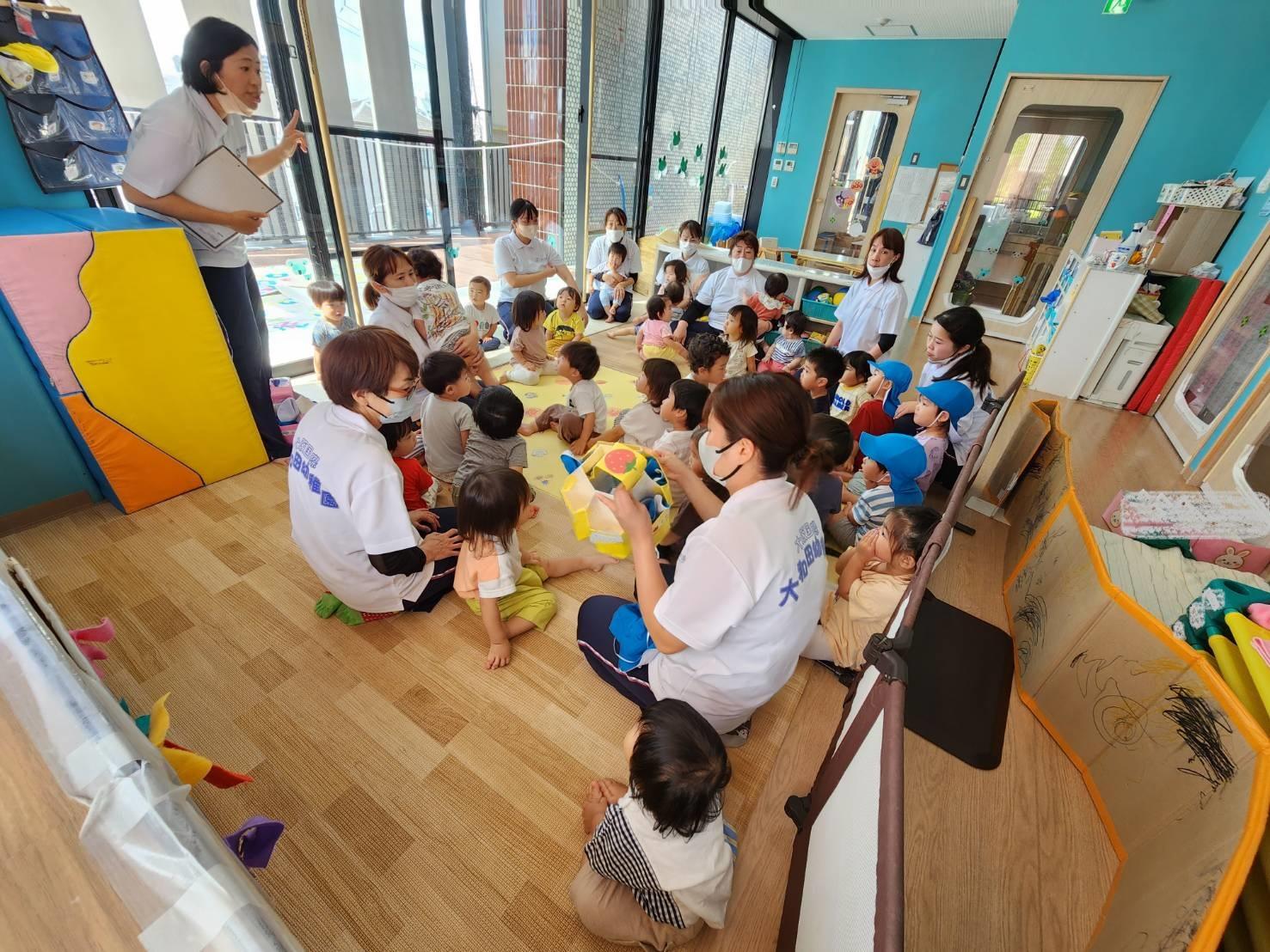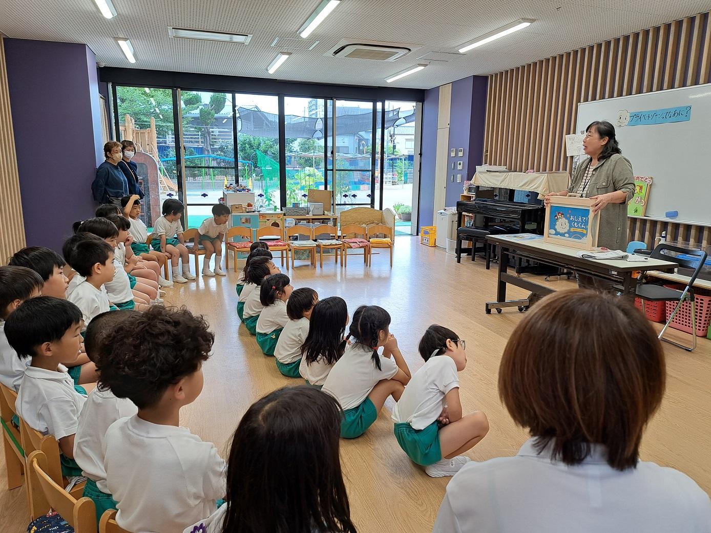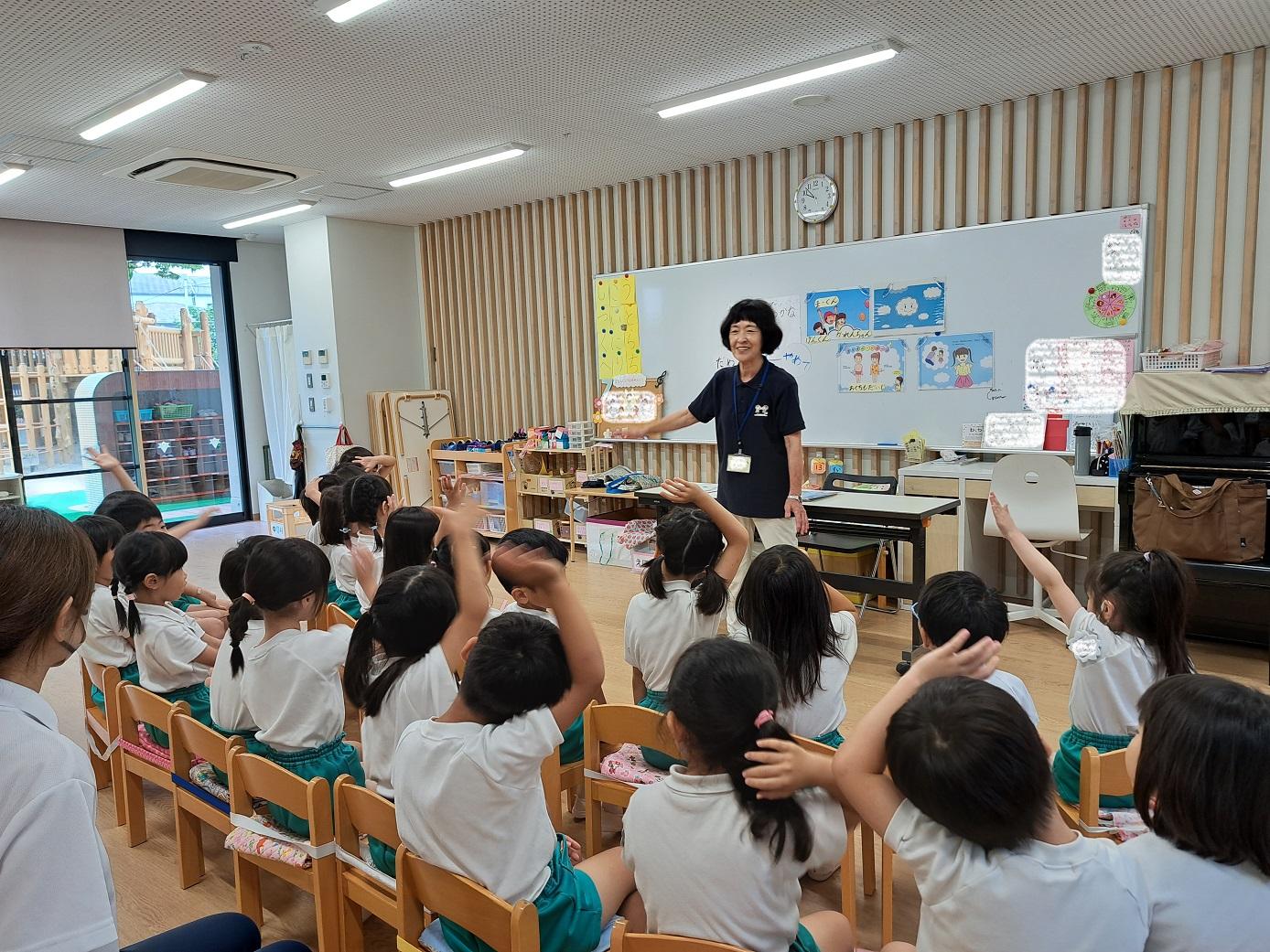 7月13日 大阪第二人権擁護委員協議会の4名の方が来られ、年長組の子どもたちを対象に、「プライベートゾーン」のお話を聞きました。