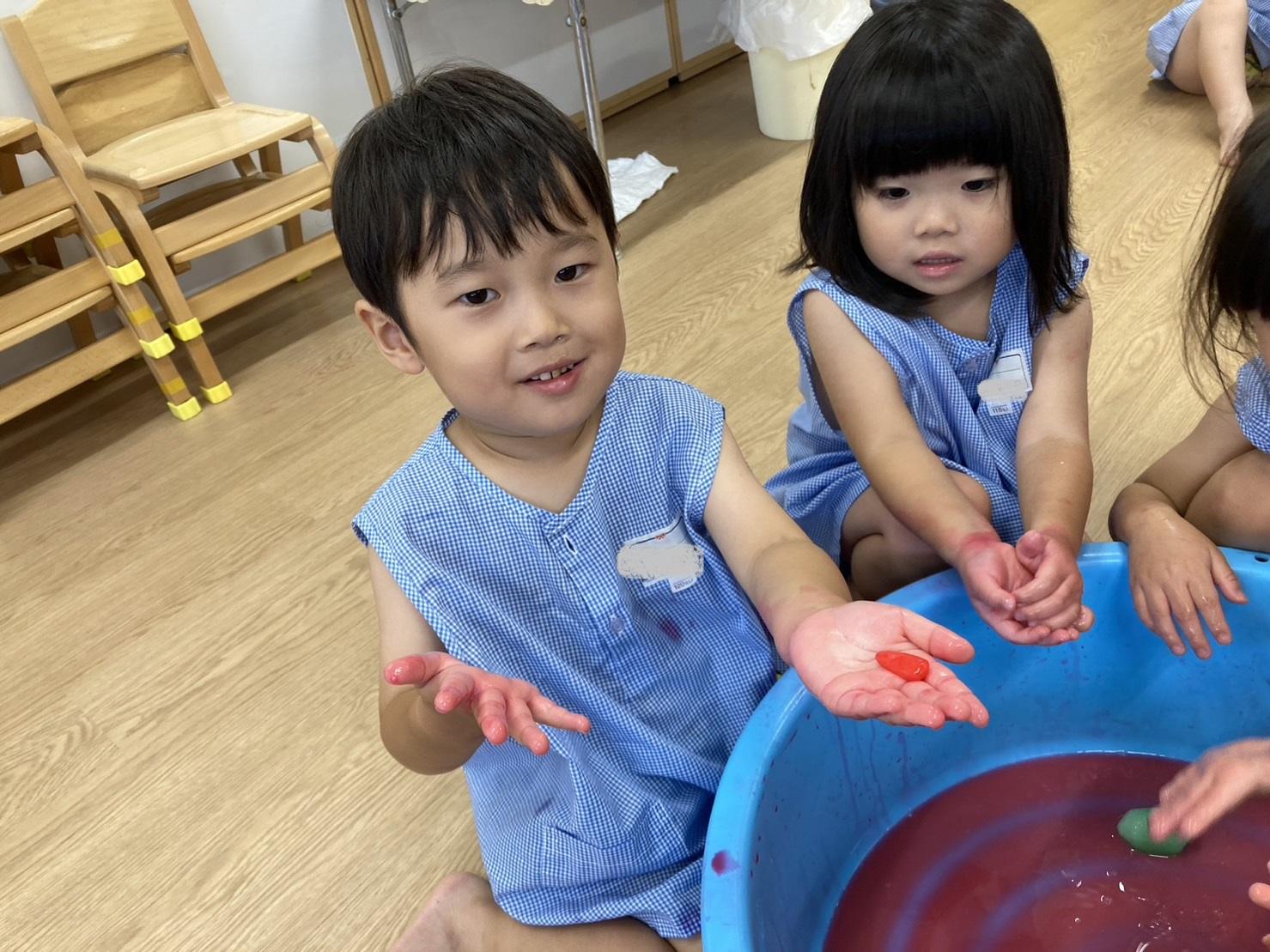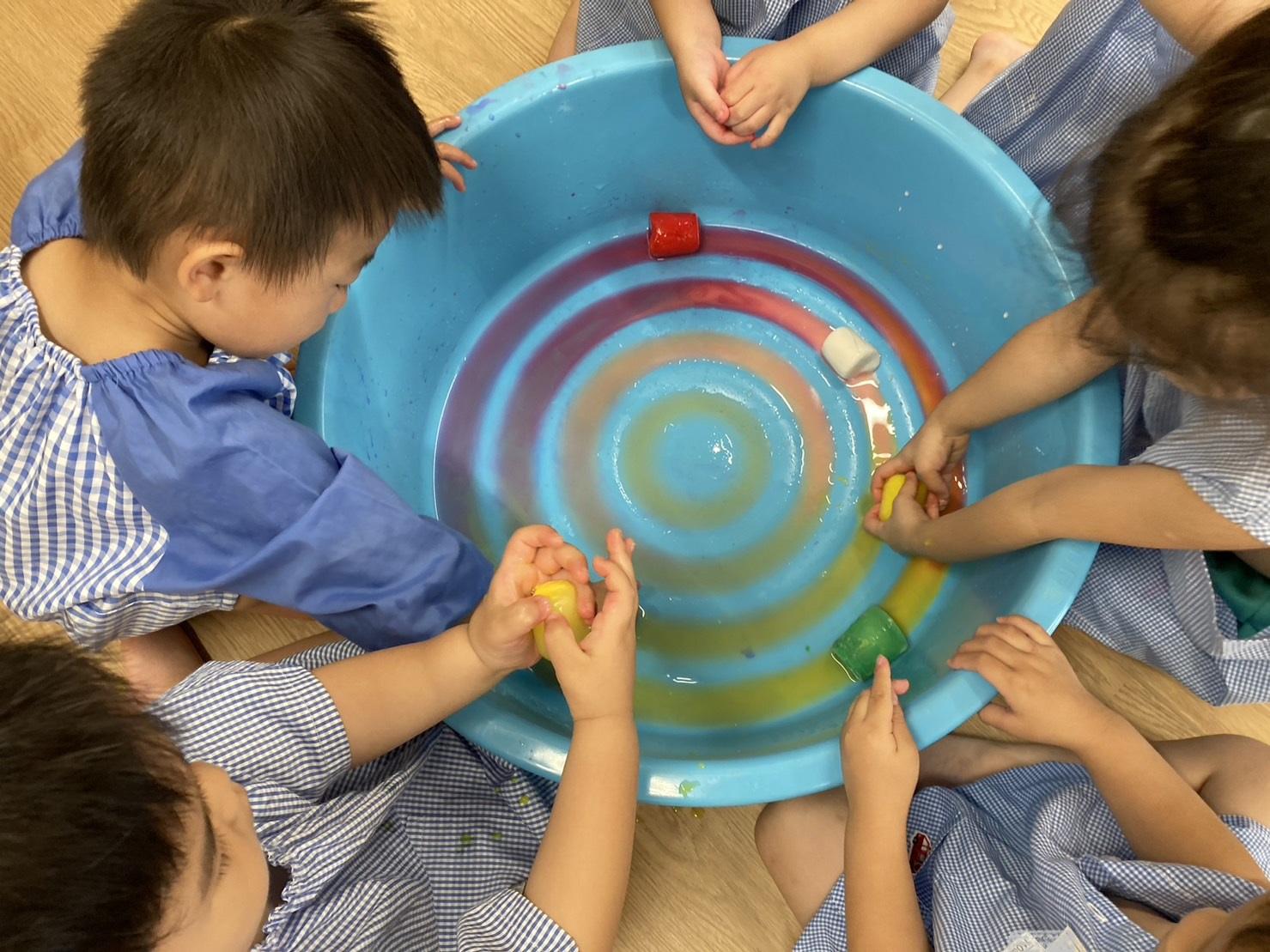 溶けてくると、色が混ざったりして、「違ういろになった!」と、色の変化に気づいた子どももいました!