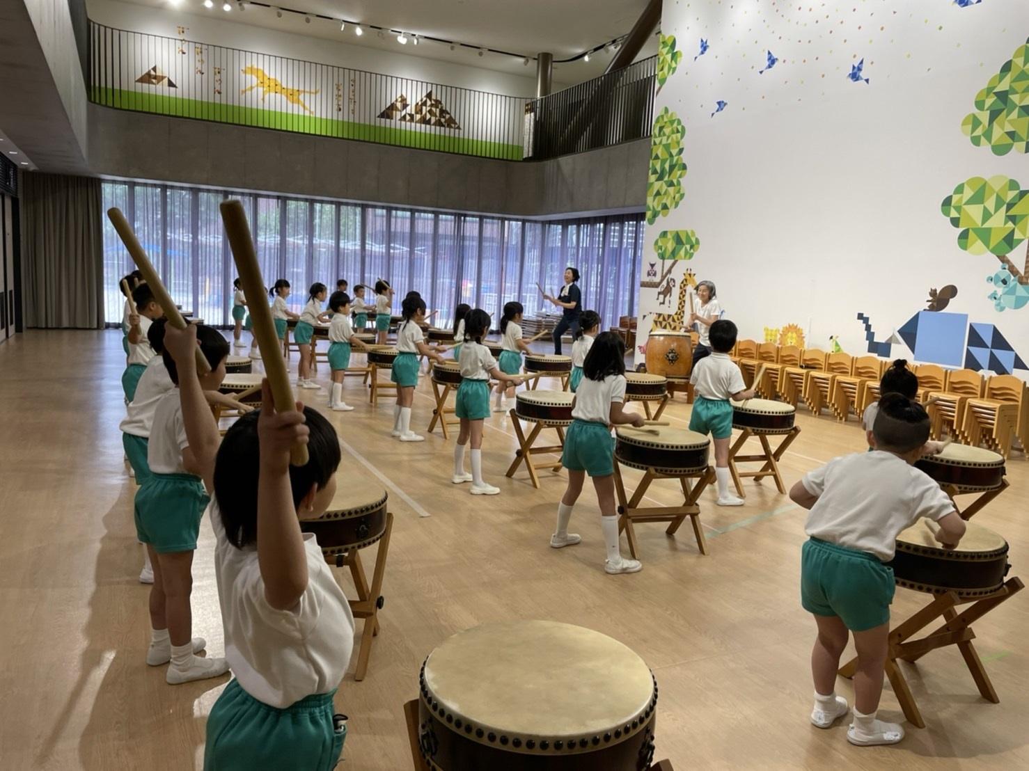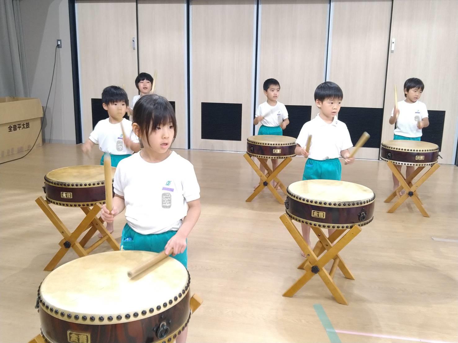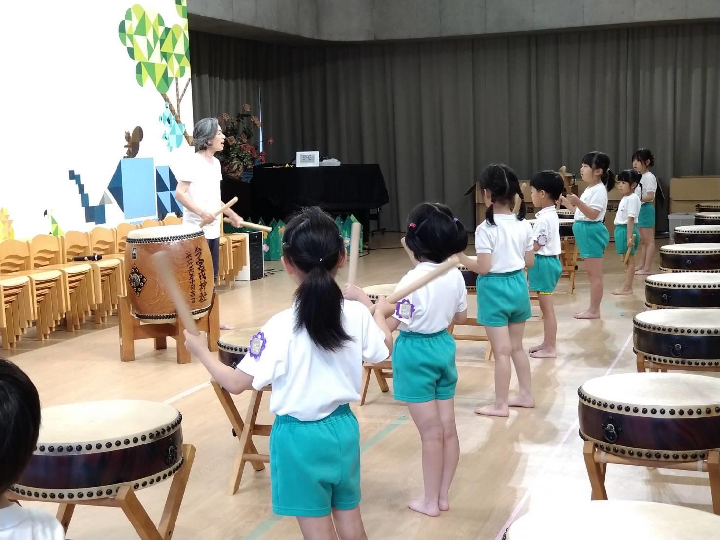 年長組 太鼓指導が始まりました。今年度も指導してくださるのは、笠松先生です。