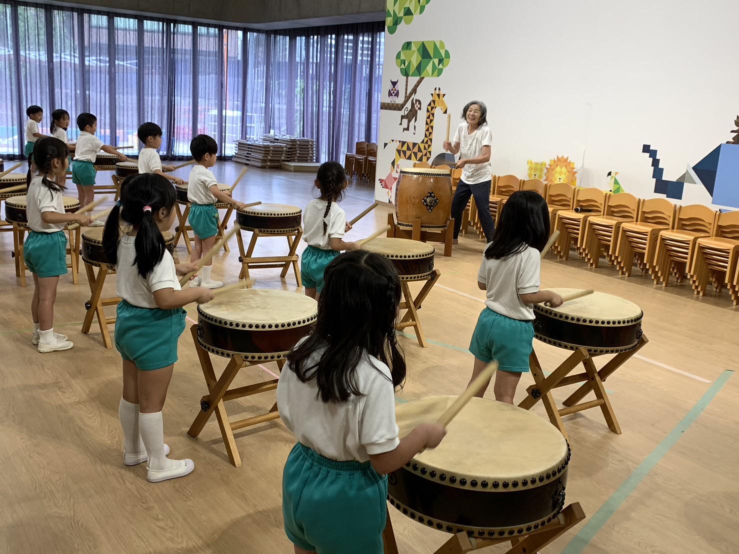 今日は、バチの持ち方、太鼓の打ち方などを学びました。