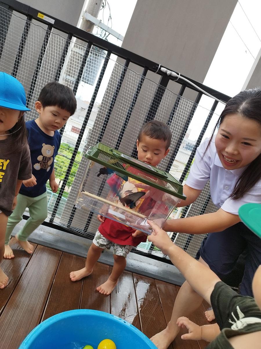 みんなで、「またね!」」と元気にお空に飛んでいくちょうちょうを見送りました。