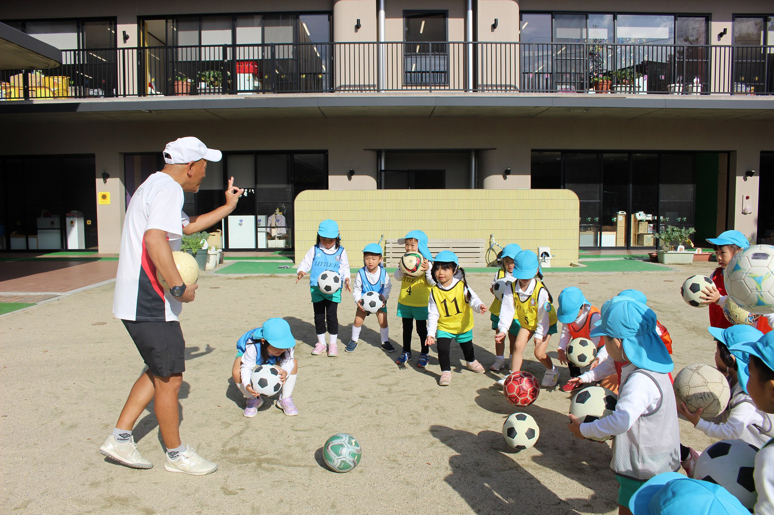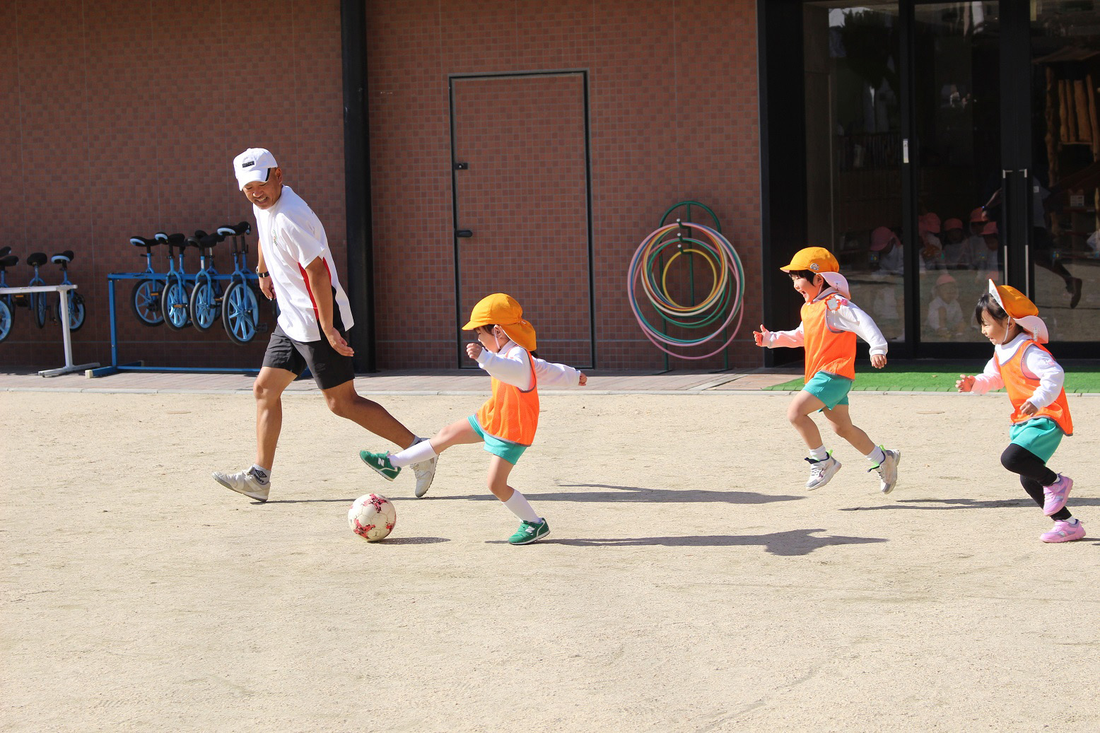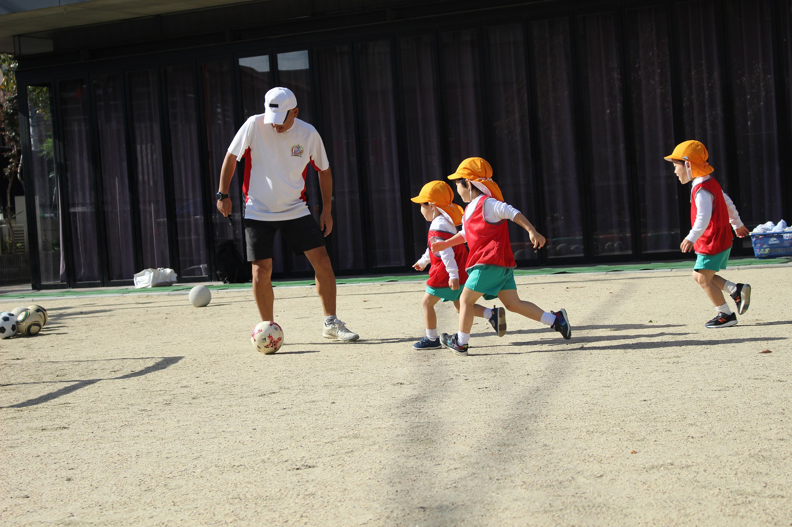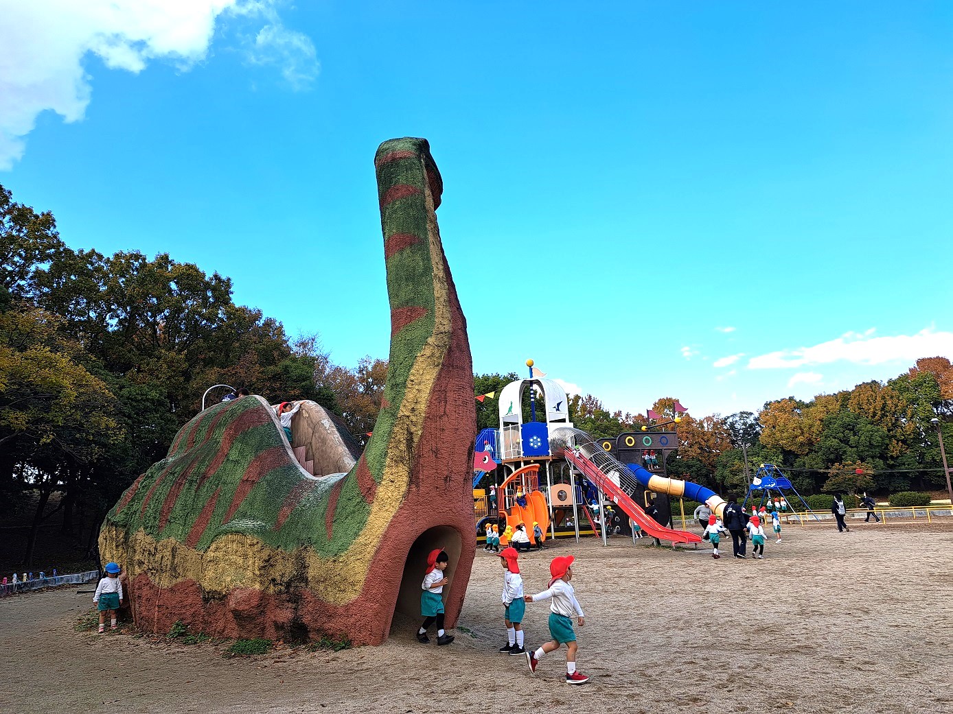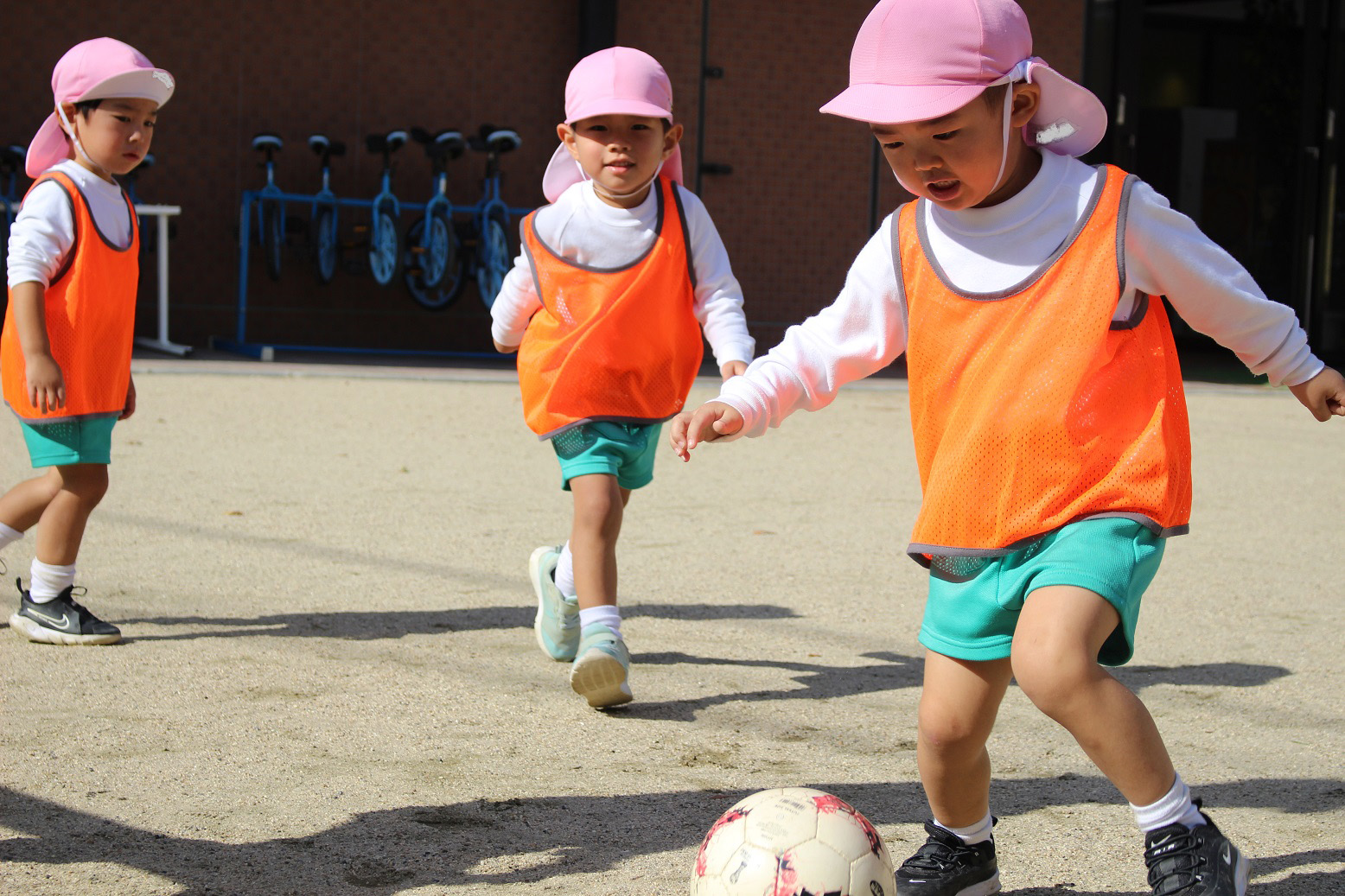 大学グラウンドへお散歩♪いろいろな色や形の葉っぱを嬉しそうにひろう子どもたちでした。"よいしょ よいしょ"と保育者と一緒に、散歩車を押してくれてありがとう♡