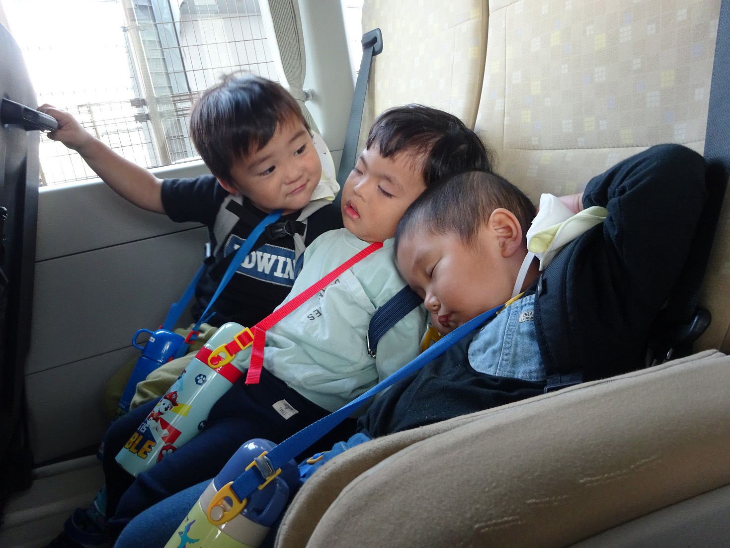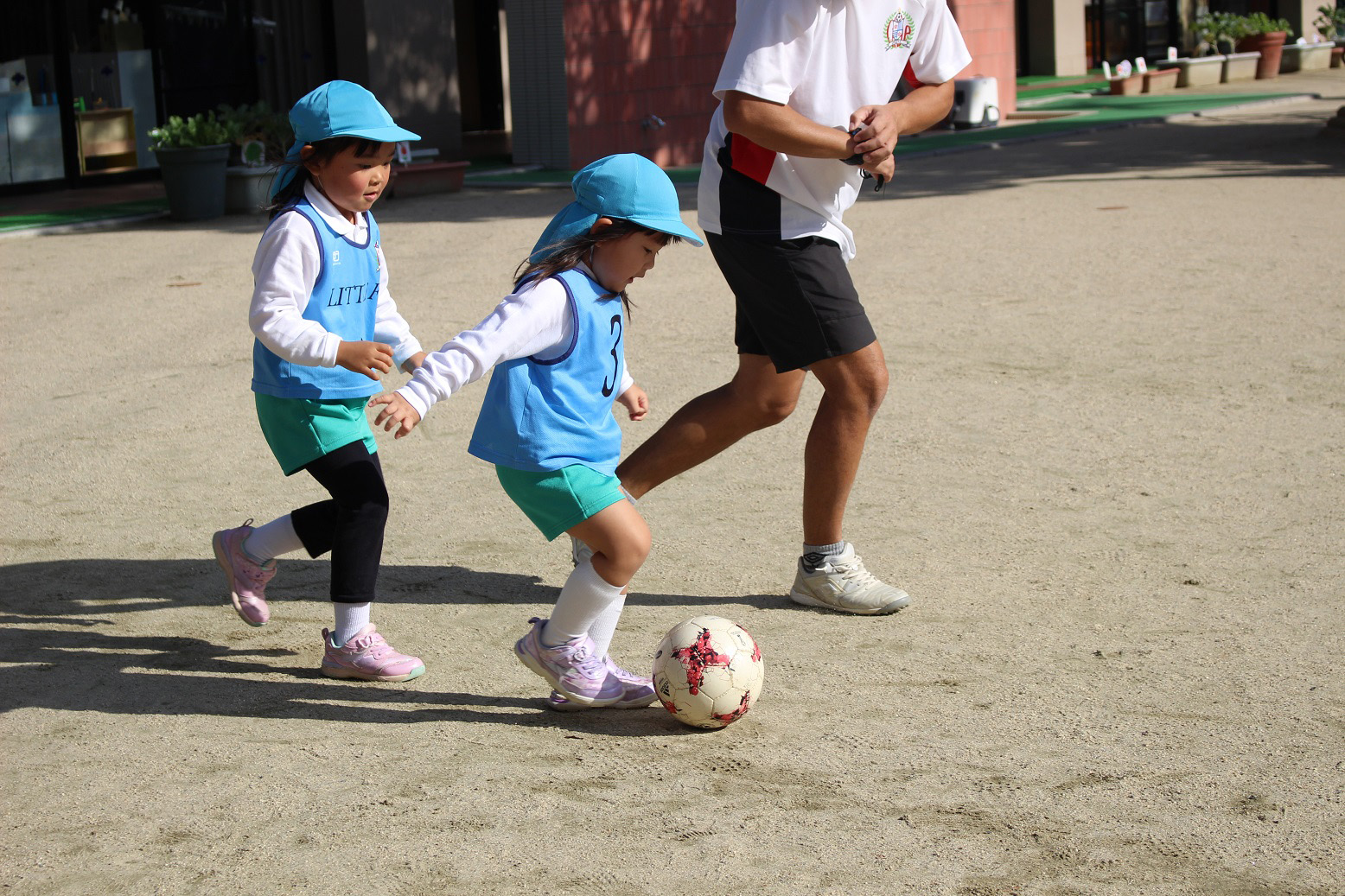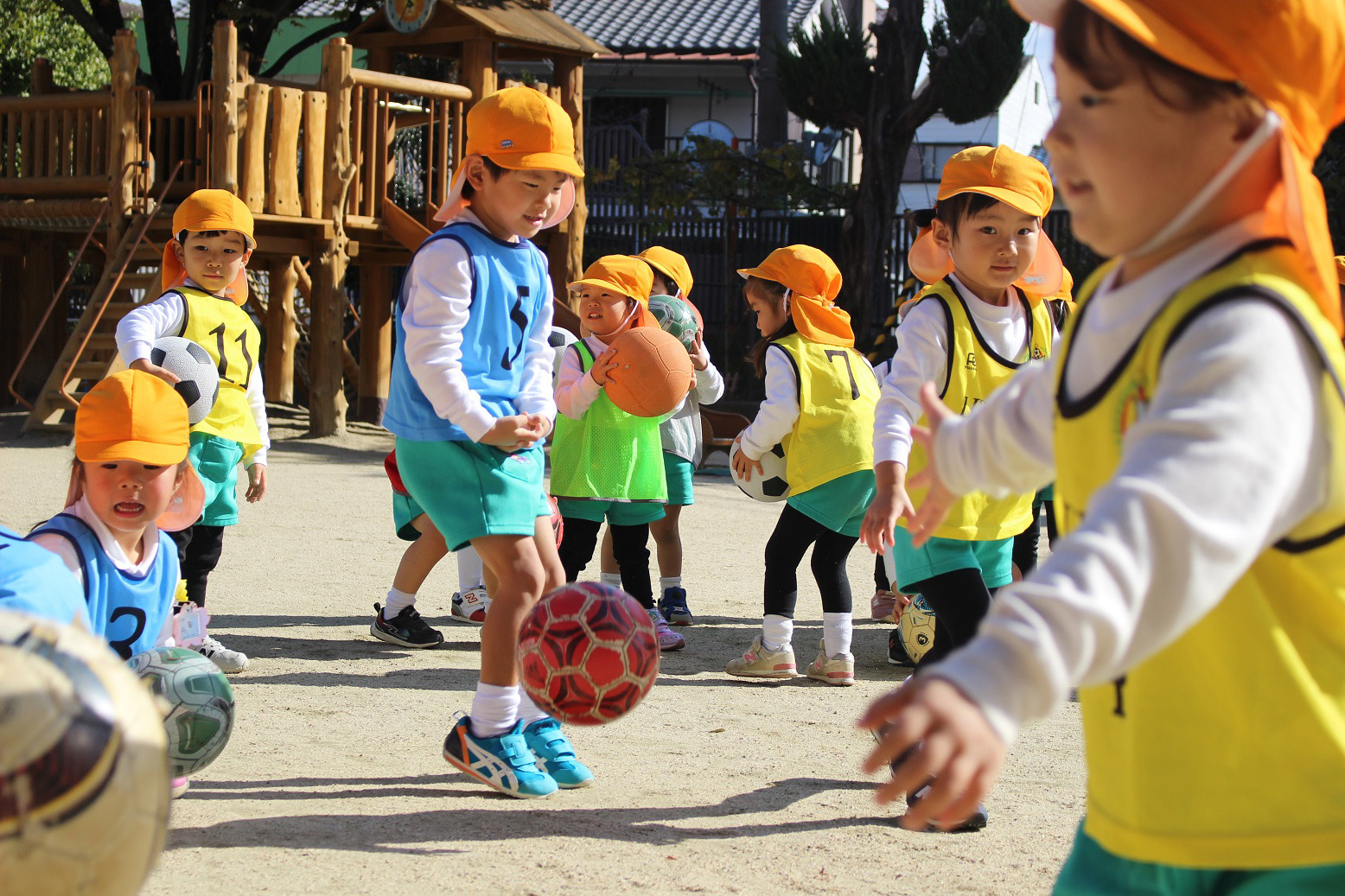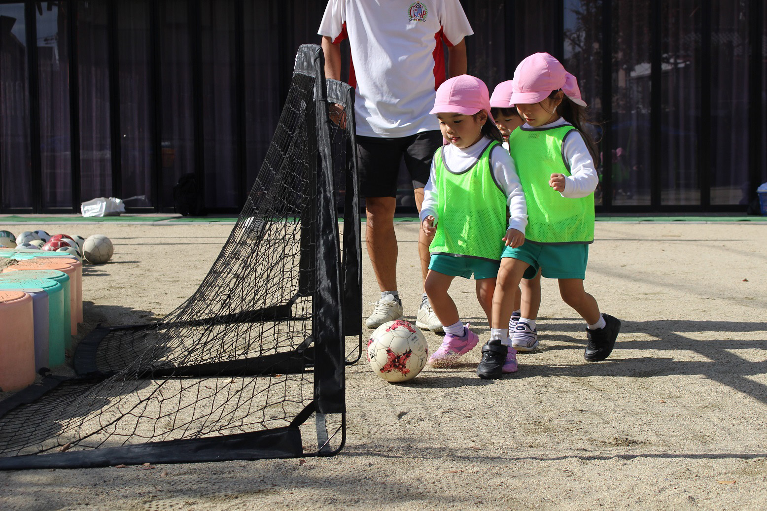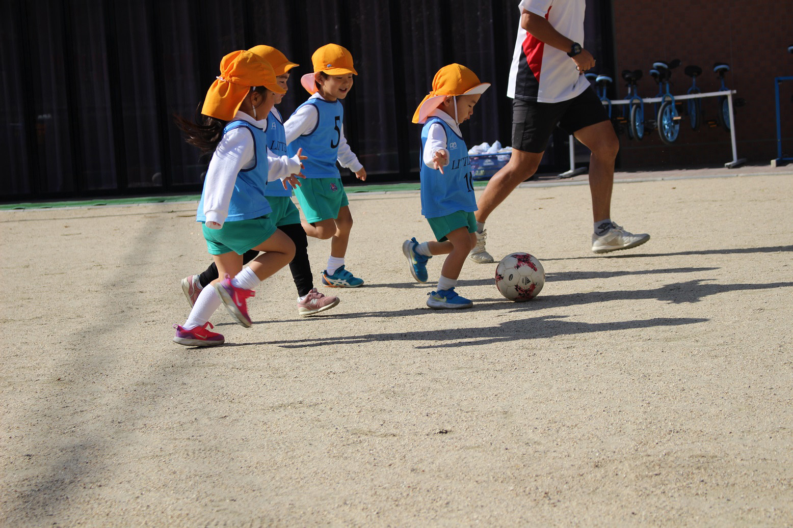 大学グラウンドへお散歩♪いろいろな色や形の葉っぱを嬉しそうにひろう子どもたちでした。"よいしょ よいしょ"と保育者と一緒に、散歩車を押してくれてありがとう♡