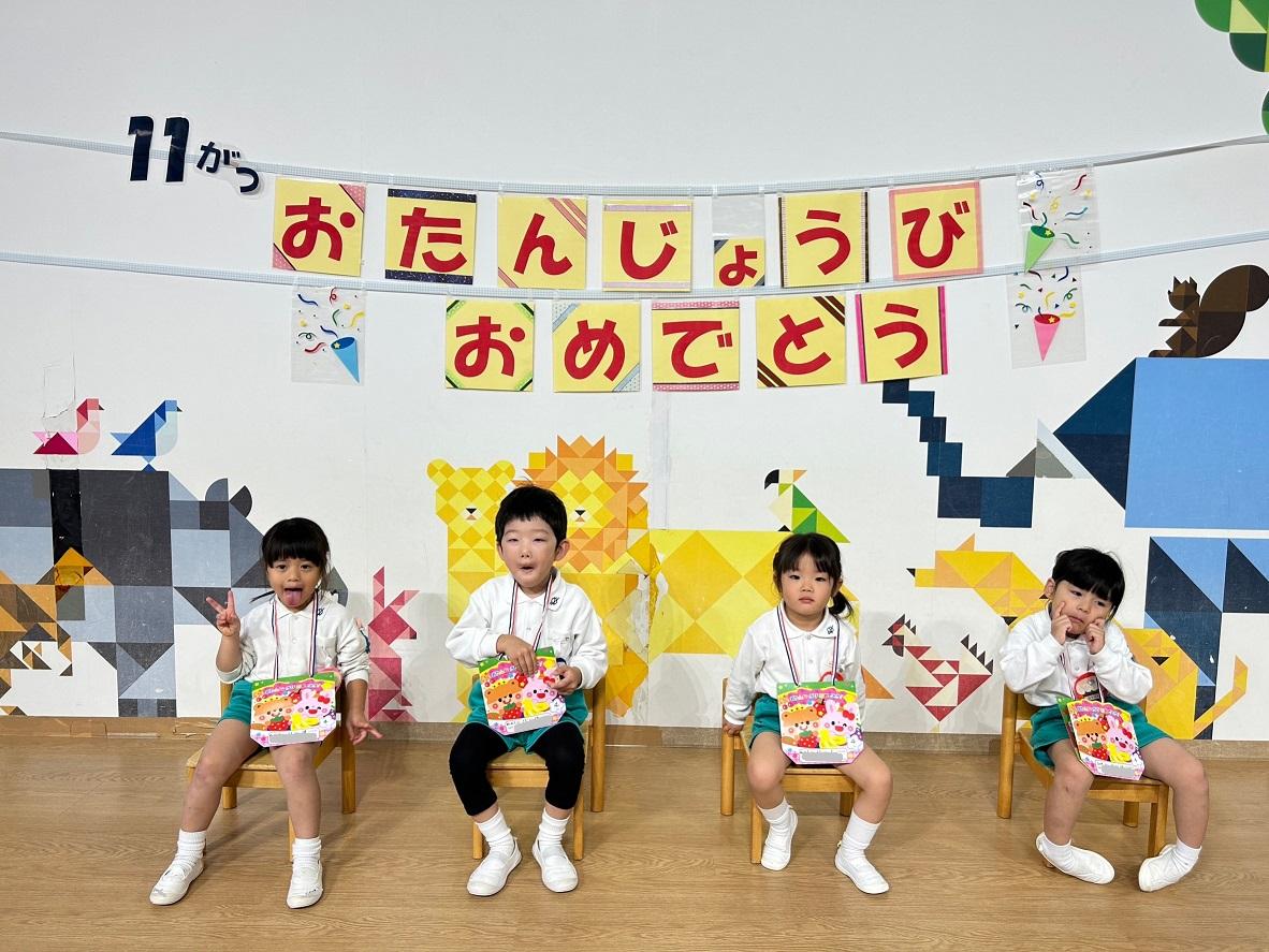 11月生まれのお友だち!!お誕生日おめでとうございます♪みんなにたくさんお祝いしてもらい、とっても嬉しそうでした。