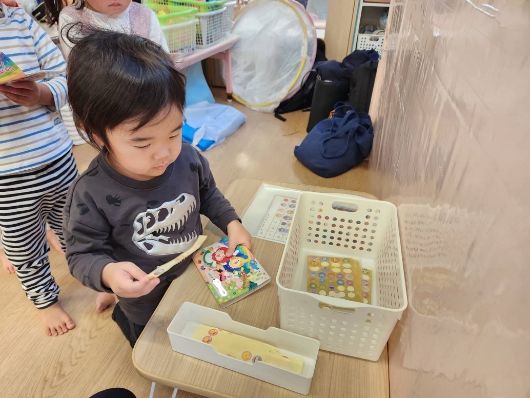 朝の準備など一人で出来る事が増えてきました♪なんでも自分でやってみようという気持ちを大事にしながら、排泄面や食事面など自立していけるように保護者の皆様と協力しながら頑張っていきます♪