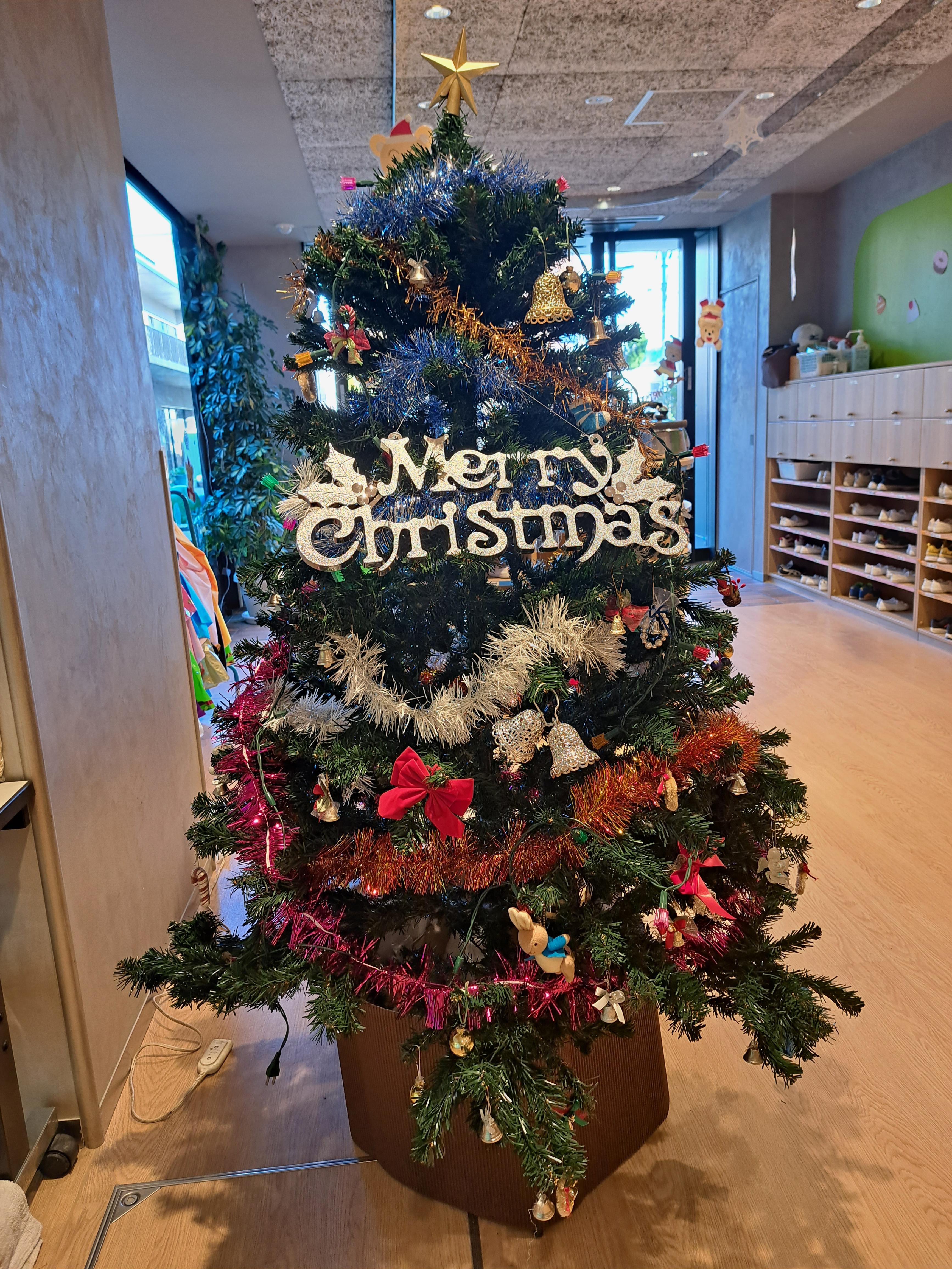 幼稚園ではいろいろなところにクリスマスツリーを飾っています!!