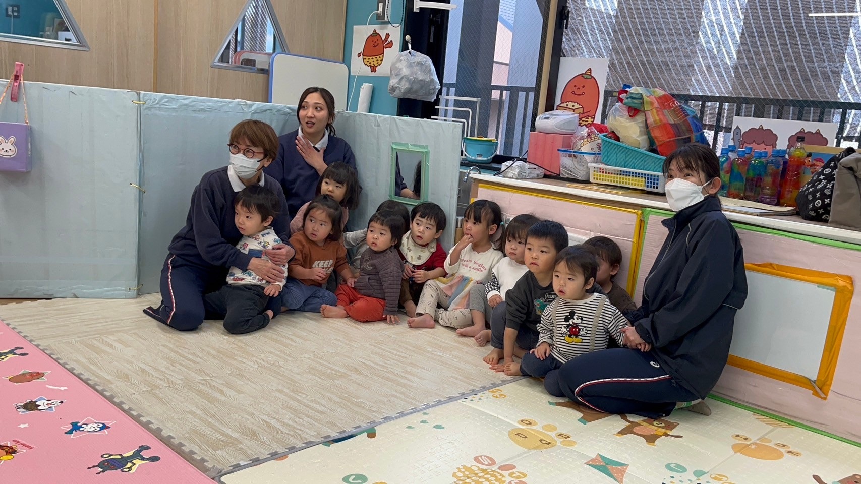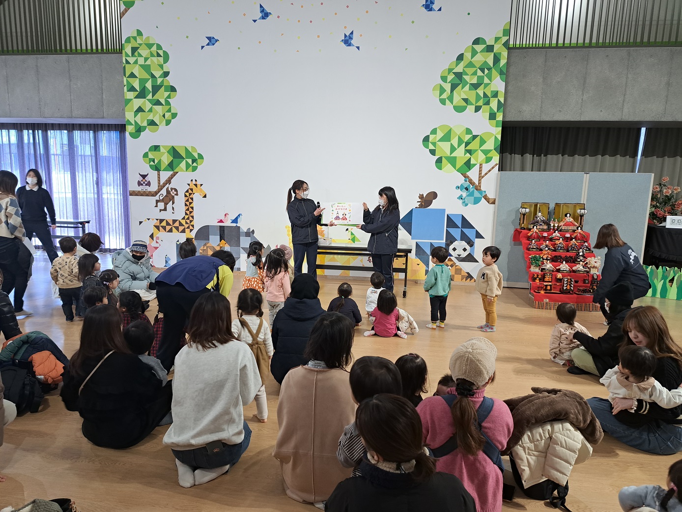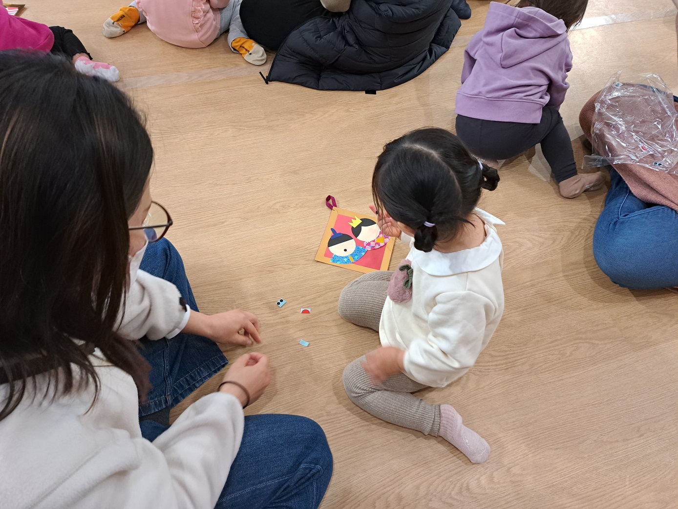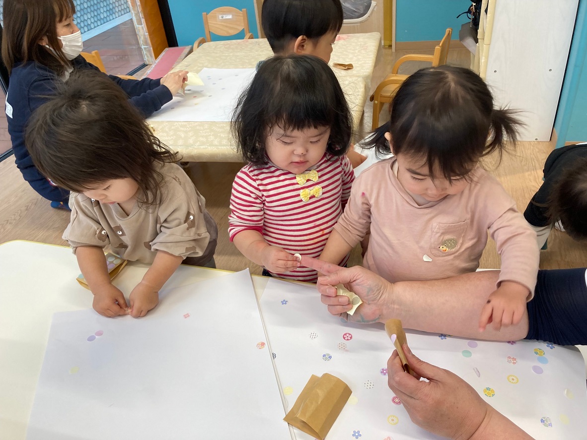 今回のトドラーデーは、ひなまつりの紙芝居を見たり、制作をしたりしました!