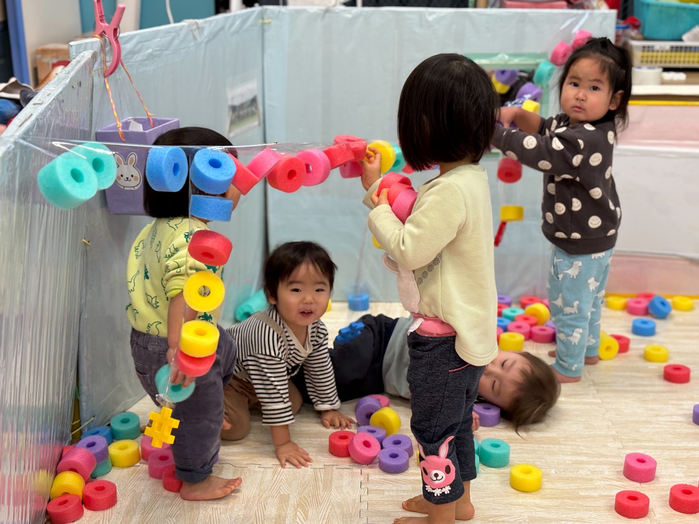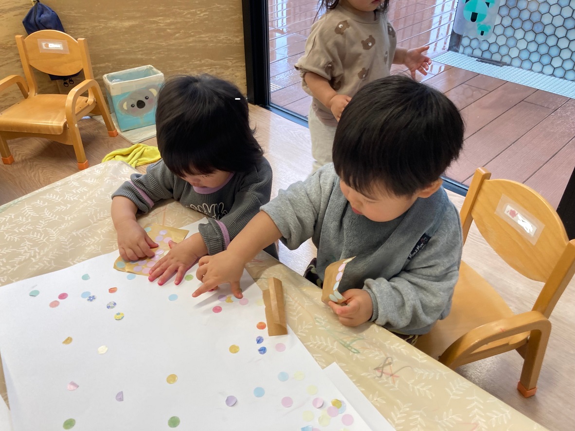 楽しそうに遊んでいました!シールもペタペタっと夢中で貼っていました♪