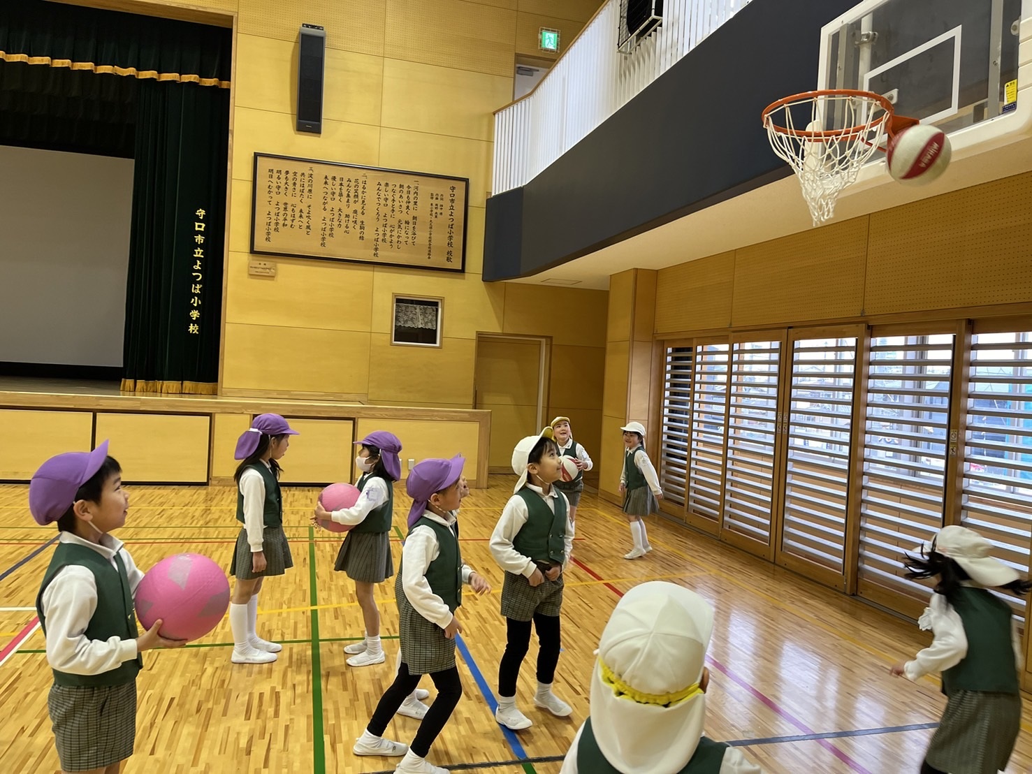 授業が終わった後、体育館でボール遊び♪