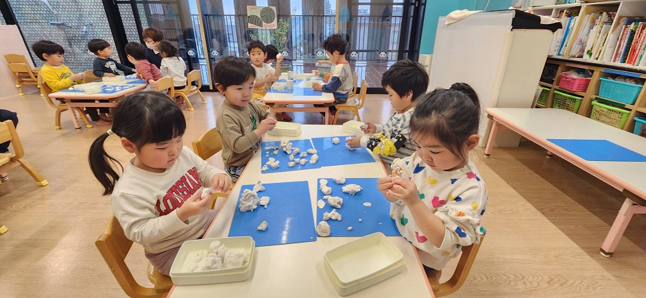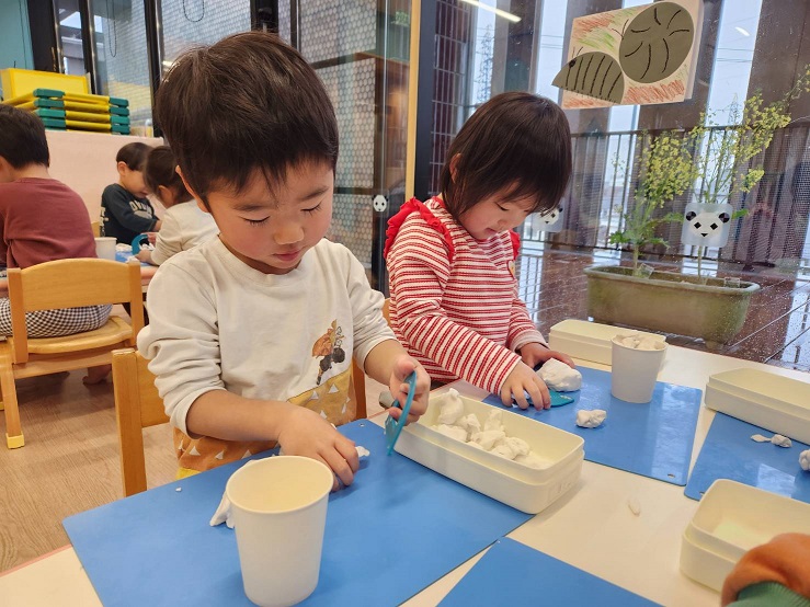 粘土遊びをしました♪手の平でコロコロと丸めたり、粘土ベラを使って好きな形に切ったりとみんなとっても楽しそうでした!