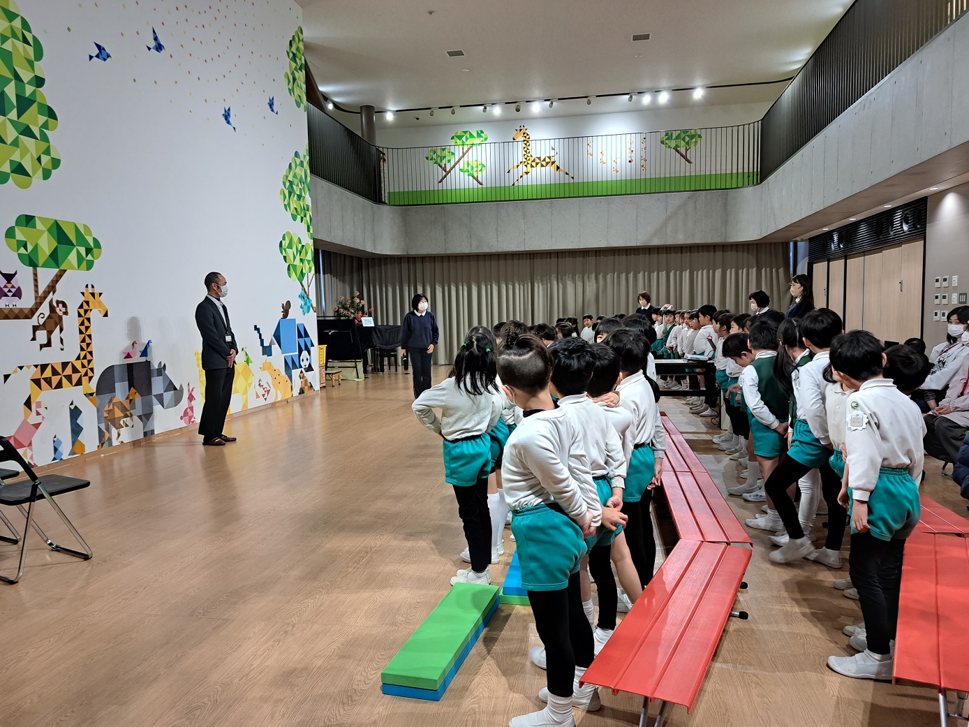 ホールで歌の練習をしようと思っていた年長さんのもとへ、もう1体!?