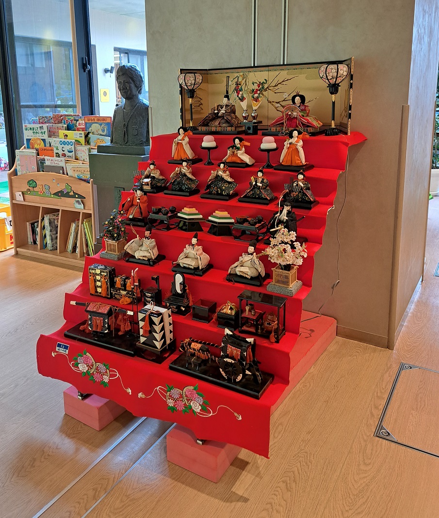 ↑幼稚園の玄関と、ホールにひな人形を飾っています!