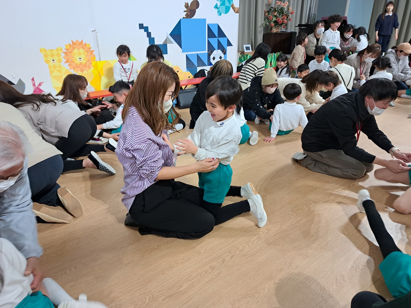 一緒に幼稚園ホールで遊びました!