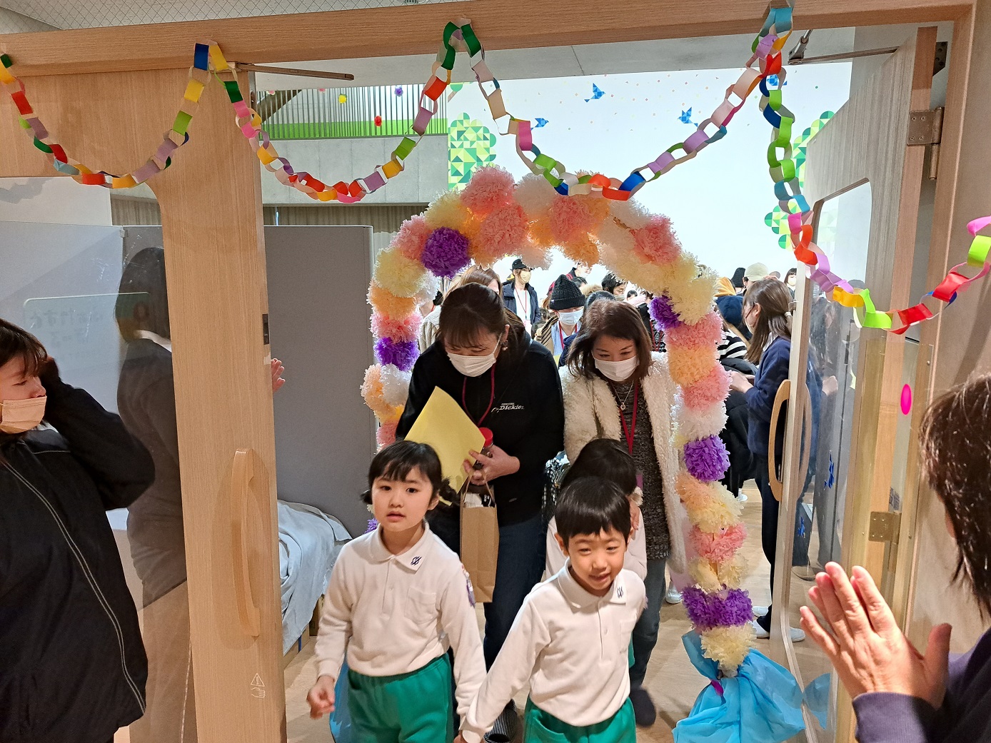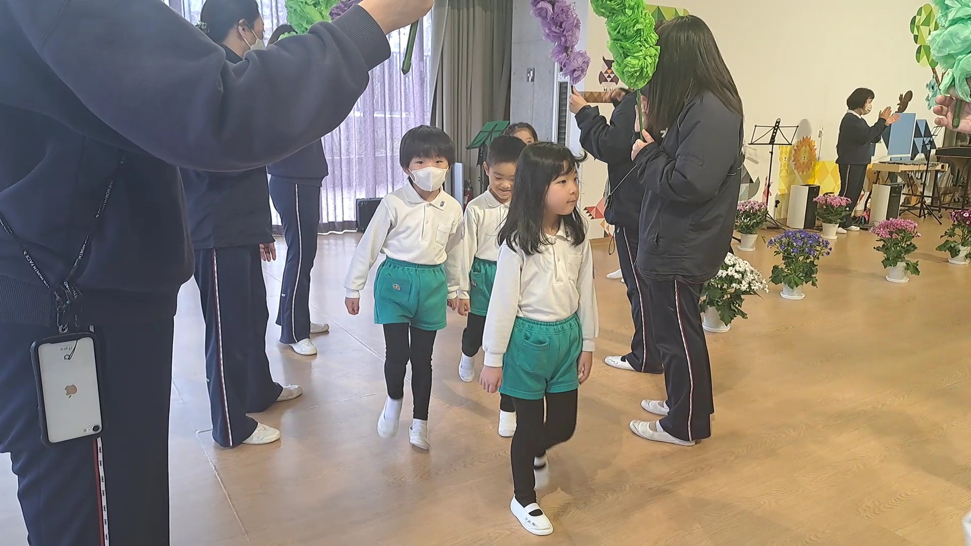 せんせいたちが子どもたちの前に並び、「遊んでくれてありがとうございました!」と、子どもたちが感謝の気持ちを言ってくれました!