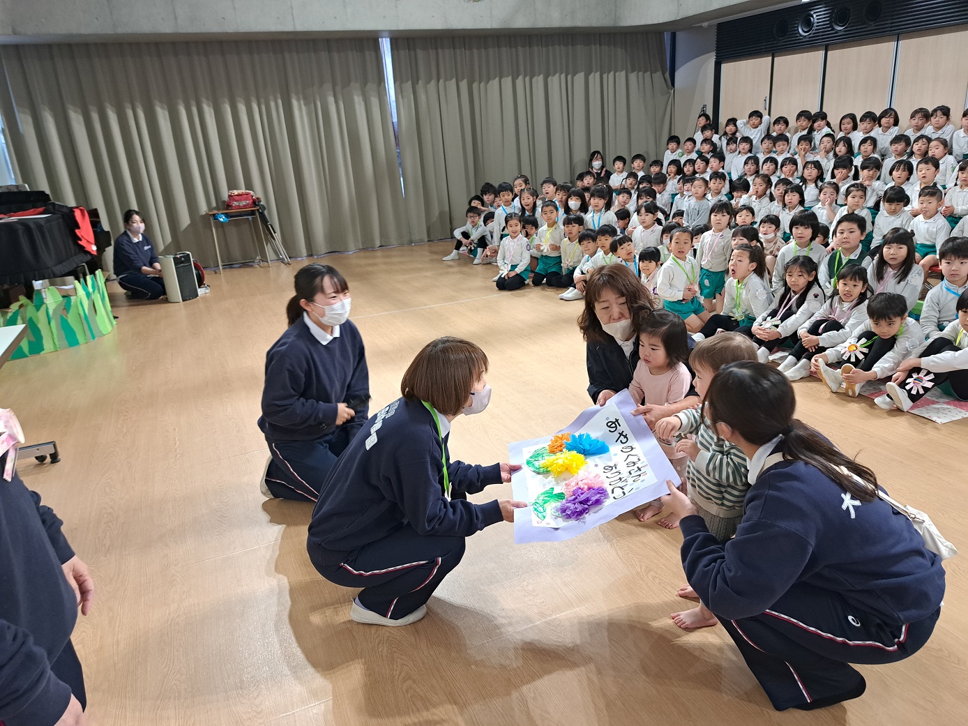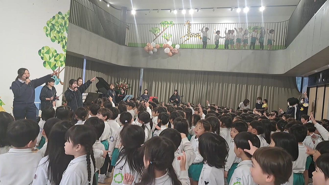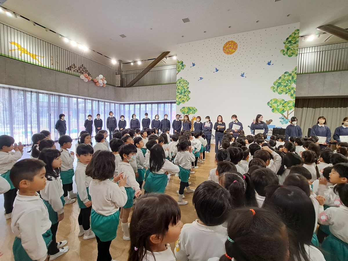 修了式の練習をがんばっている年長組さんに、先生たちからの歌のプレゼントです!