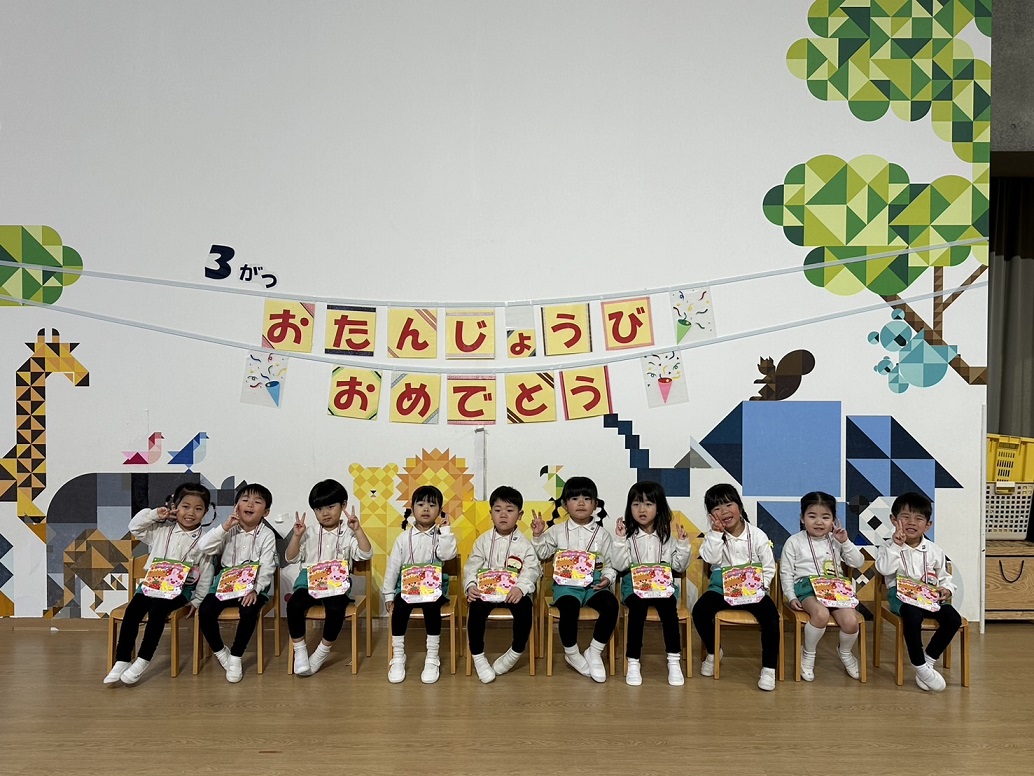 3月のお誕生児さんは待ちに待ったお誕生日会でした♪今までたくさんのお友だちをお祝いしてくれましたね♪今日はやっと自分たちのお誕生日会です!みんなからお祝いしてもらいとっても嬉しそうでした!お誕生日おめでとうございます!!