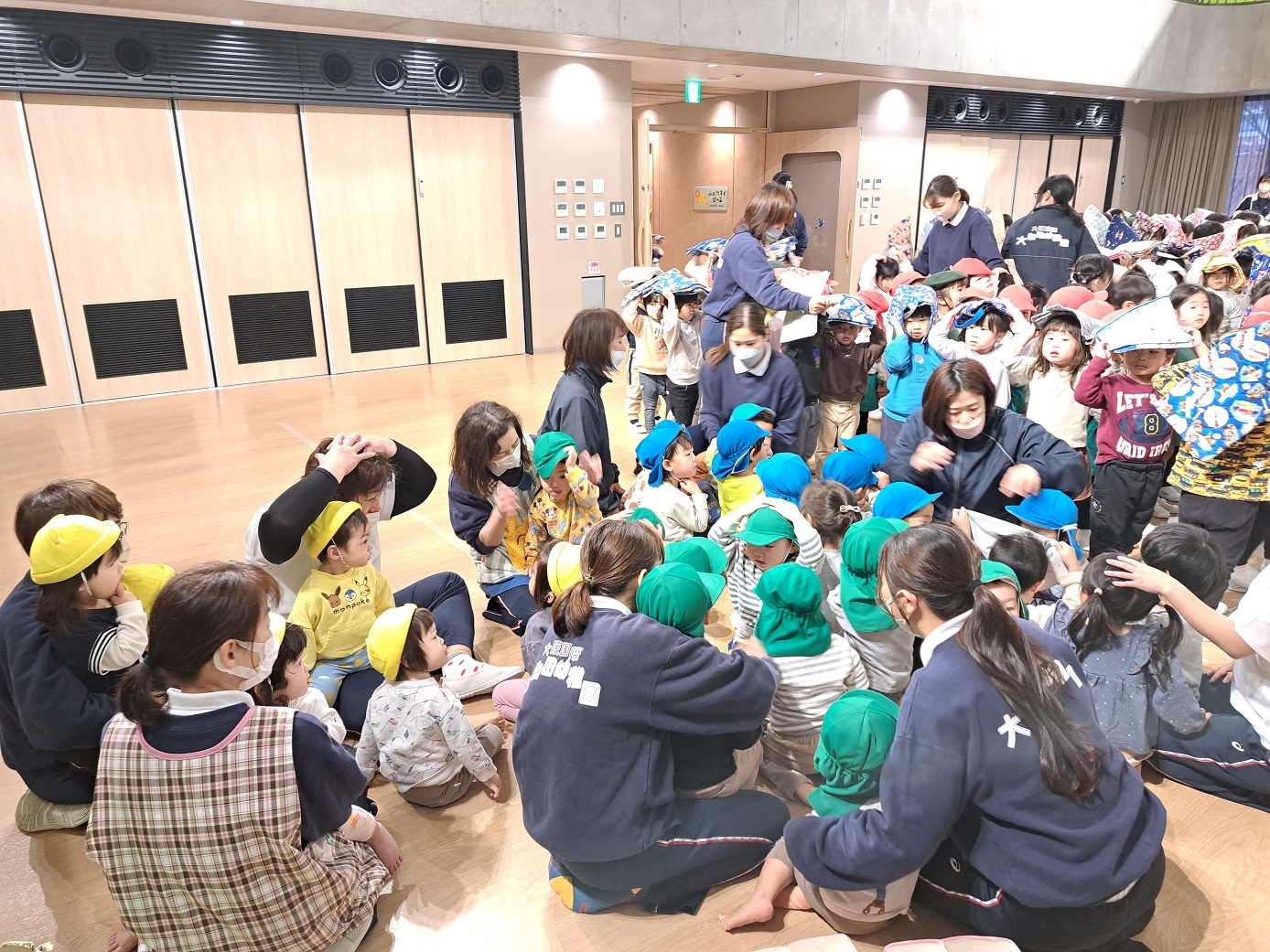 (今回の避難訓練は、園長先生以外誰も知らず、抜き打ちです。)