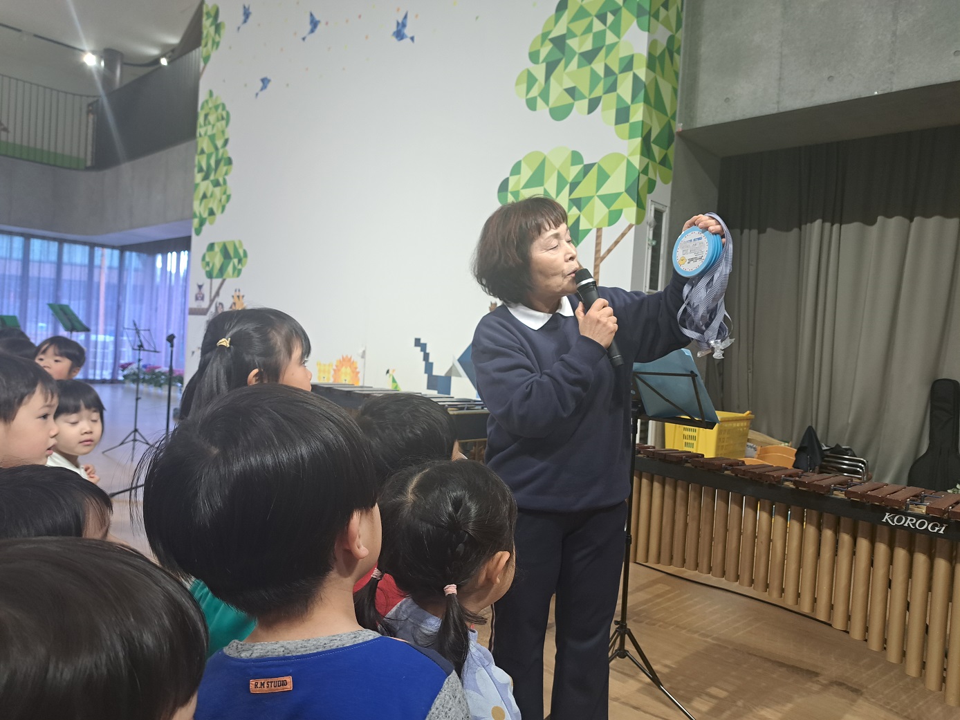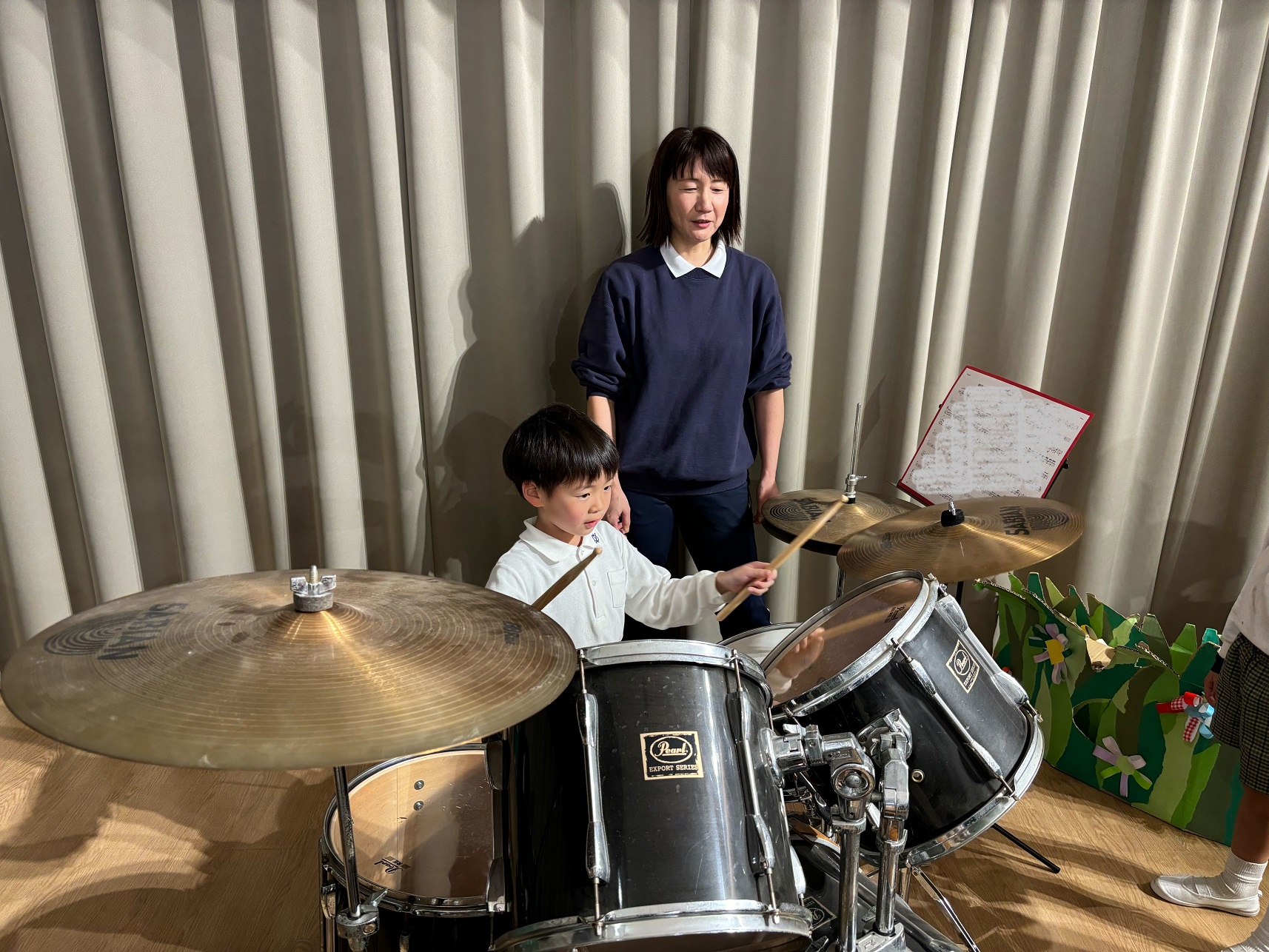 演奏が終わったあと、あやめ組の子どもたちが少しドラムを触りました!
